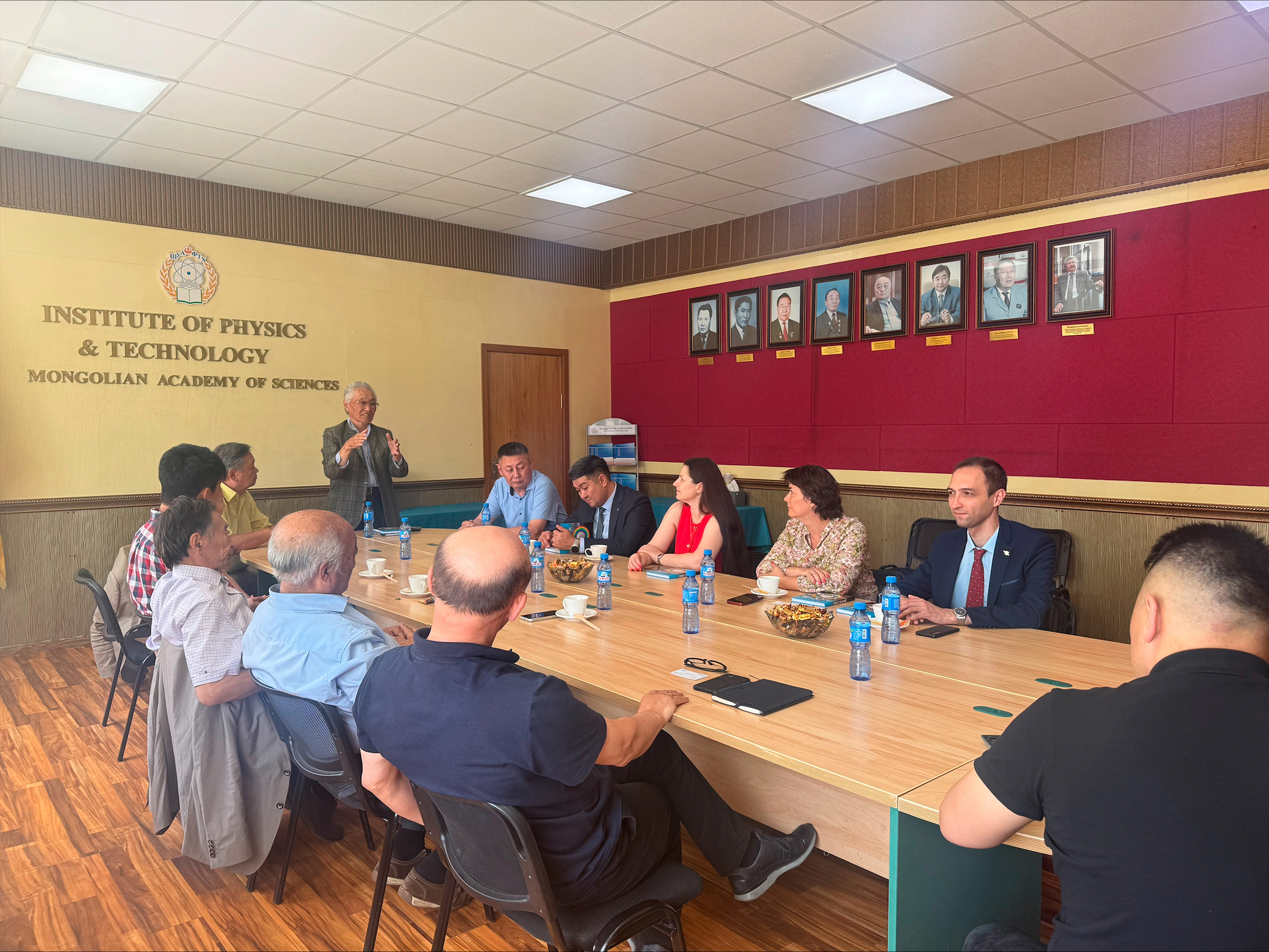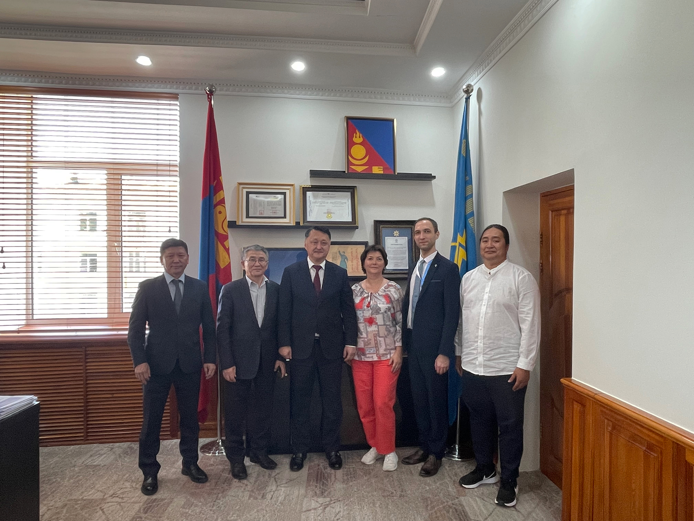 The Institute’s scientists held an official meeting with the leadership of the National University of Mongolia, headed by Rector Bayanjargal Ochirkhuyag. President of the Mongolian Academy of Sciences Sodnomsambuu Demberel welcomed the delegation as well. Former JINR employees, Academicians Sodnom Enkhbat, Khavtgai Namsrai, and Deleg Sangaa attended the meeting. The JINR delegation visited the Institute of Physics and Technology and the Institute of Mathematics and Digital Technology of the Mongolian Academy of Sciences.