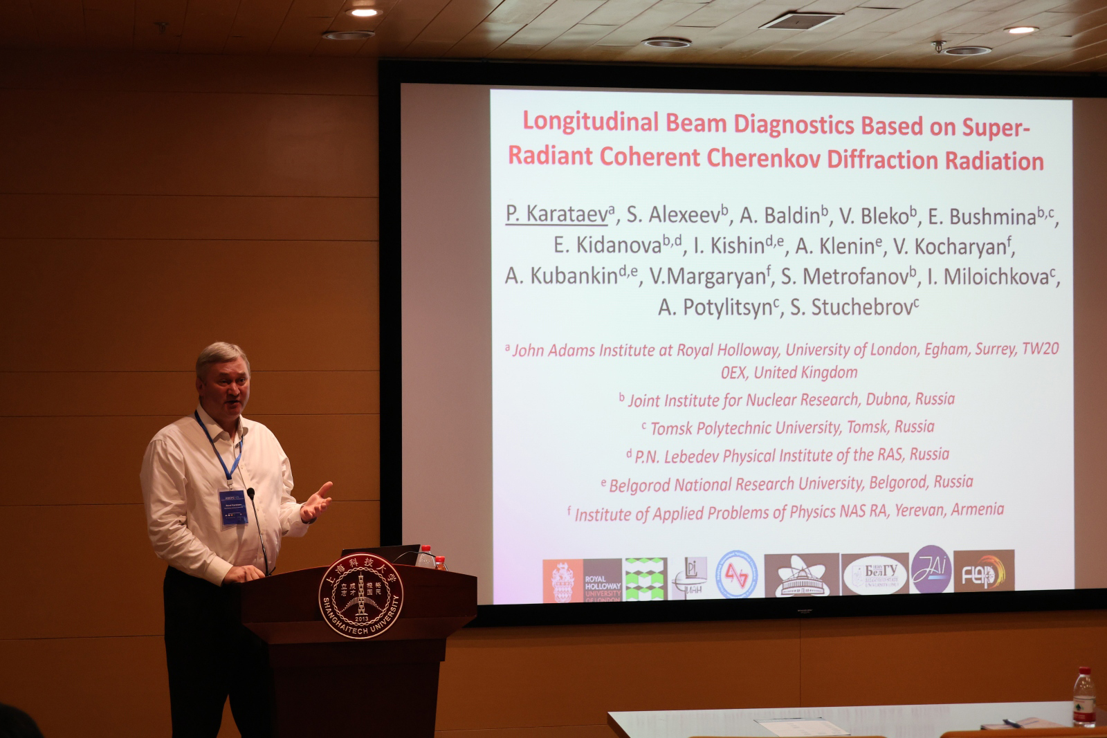 С двумя пленарными докладами на симпозиуме выступил споуксмен коллаборации FLAP, сотрудник Института ускорительной физики им. Джона Адамса (JAI) Павел Каратаев. Его первый доклад «Экспериментальное исследование поляризационных и пространственных свойств когерентного Черенковского дифракционного излучения (ЧДИ)» был посвящен изучению ЧДИ-излучения, возникающего при движении быстрых заряженных частиц вблизи диэлектрических границ раздела сред. Второй доклад «Диагностика продольного пучка на основе сверхизлучающего когерентного Черенковского дифракционного излучения» представил новые методы диагностики для современных ускорительных установок.