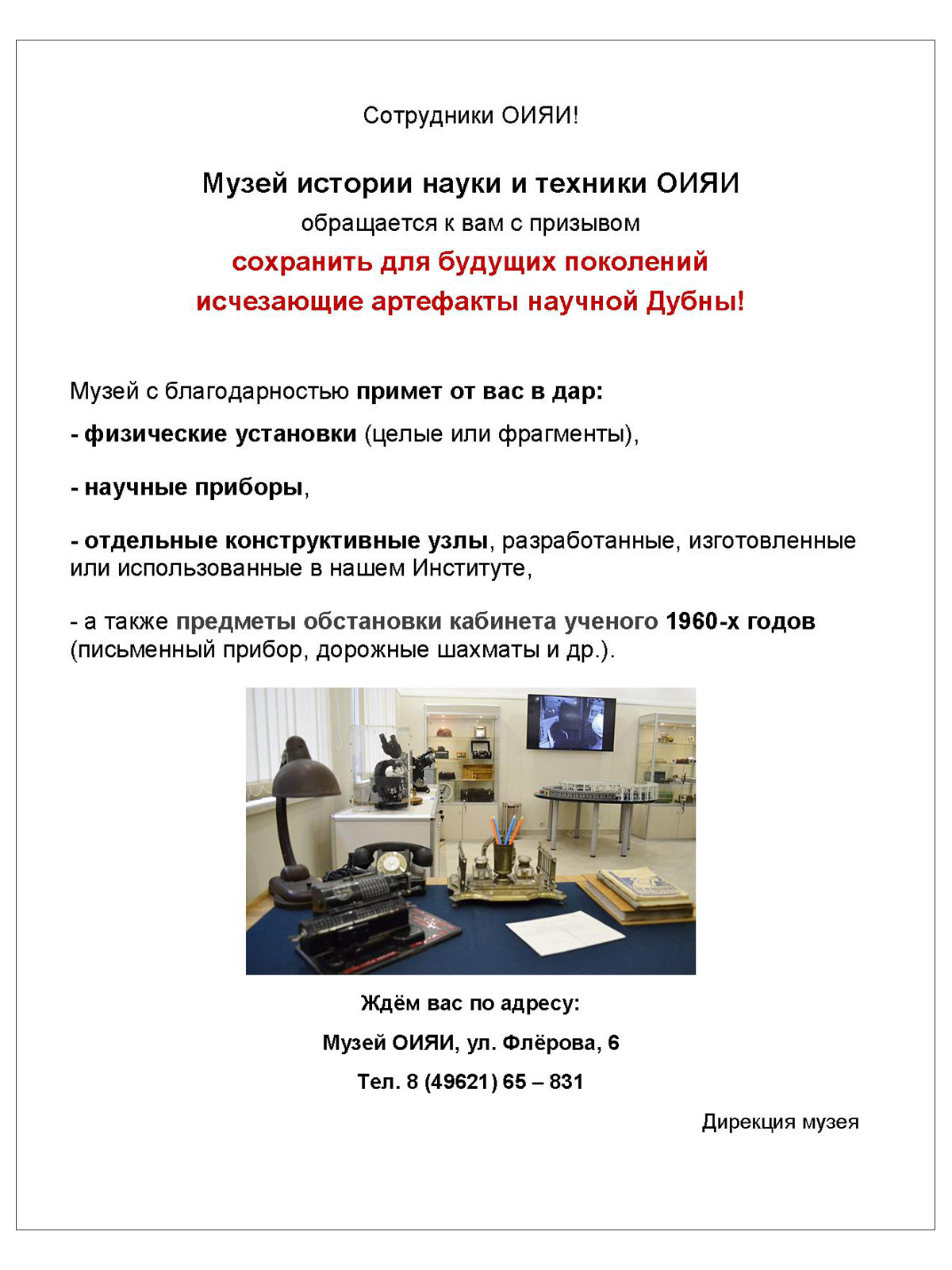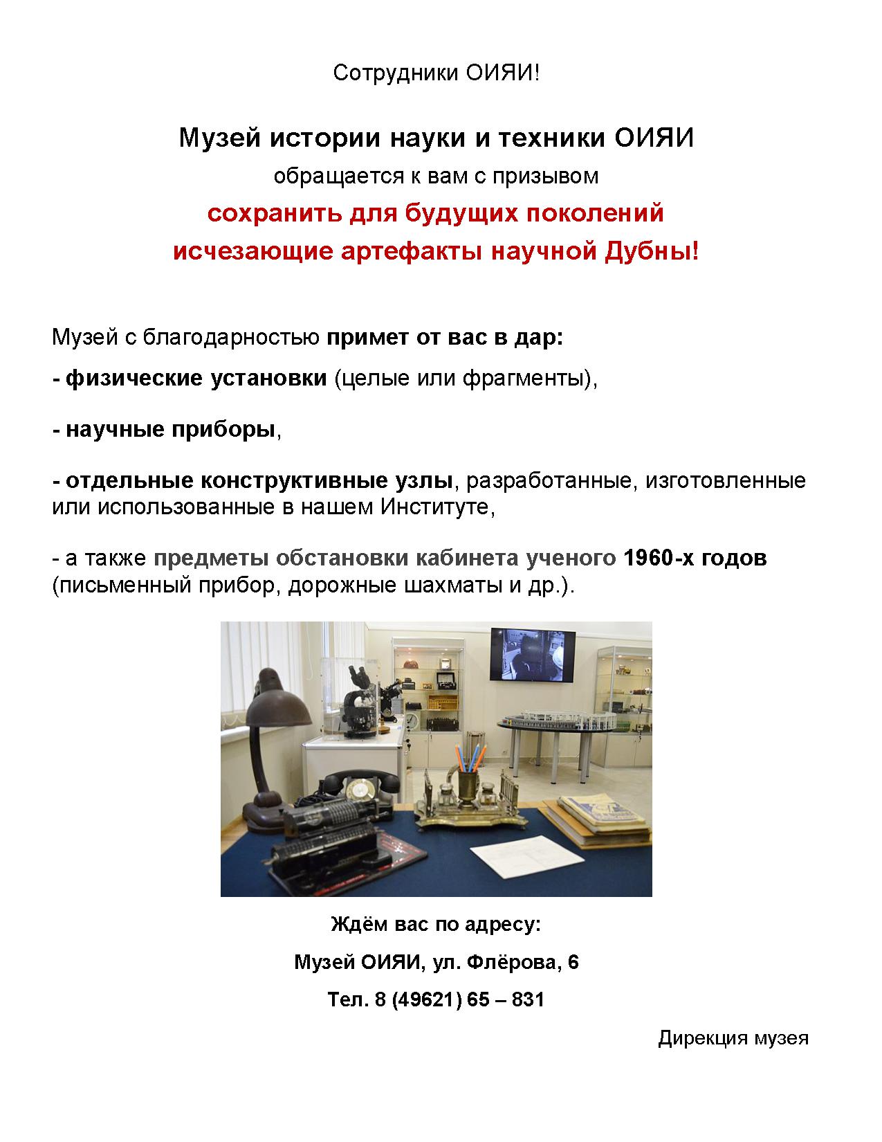 Обращение Музея ОИЯИ к сотрудникам