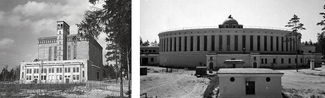 Здания синхроциклотрона (слева) и синхрофазотрона (справа) ОИЯИ