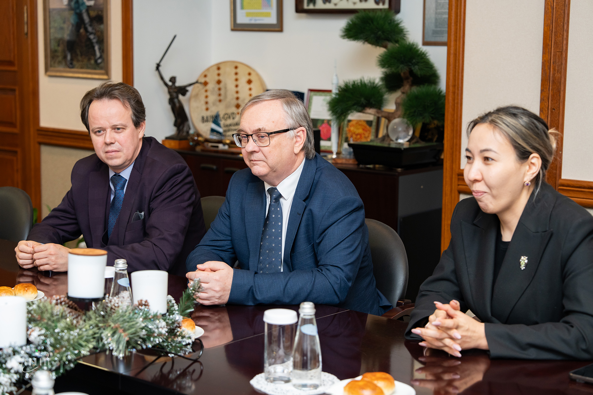Программа визита началась со встречи ректора СГУ профессора Алексея Чумаченко с директором ОИЯИ академиком РАН Григорием Трубниковым, в которой также приняли участие проректор по научной работе и цифровому развитию Алексей Короновский, заместитель директора Института физики СГУ Асель Адилова и главный ученый секретарь ОИЯИ Сергей Неделько. На встрече было отмечено, что Объединенный институт и СГУ связывает несколько десятилетий плодотворного сотрудничества в научных исследованиях и подготовке высококвалифицированных кадров.