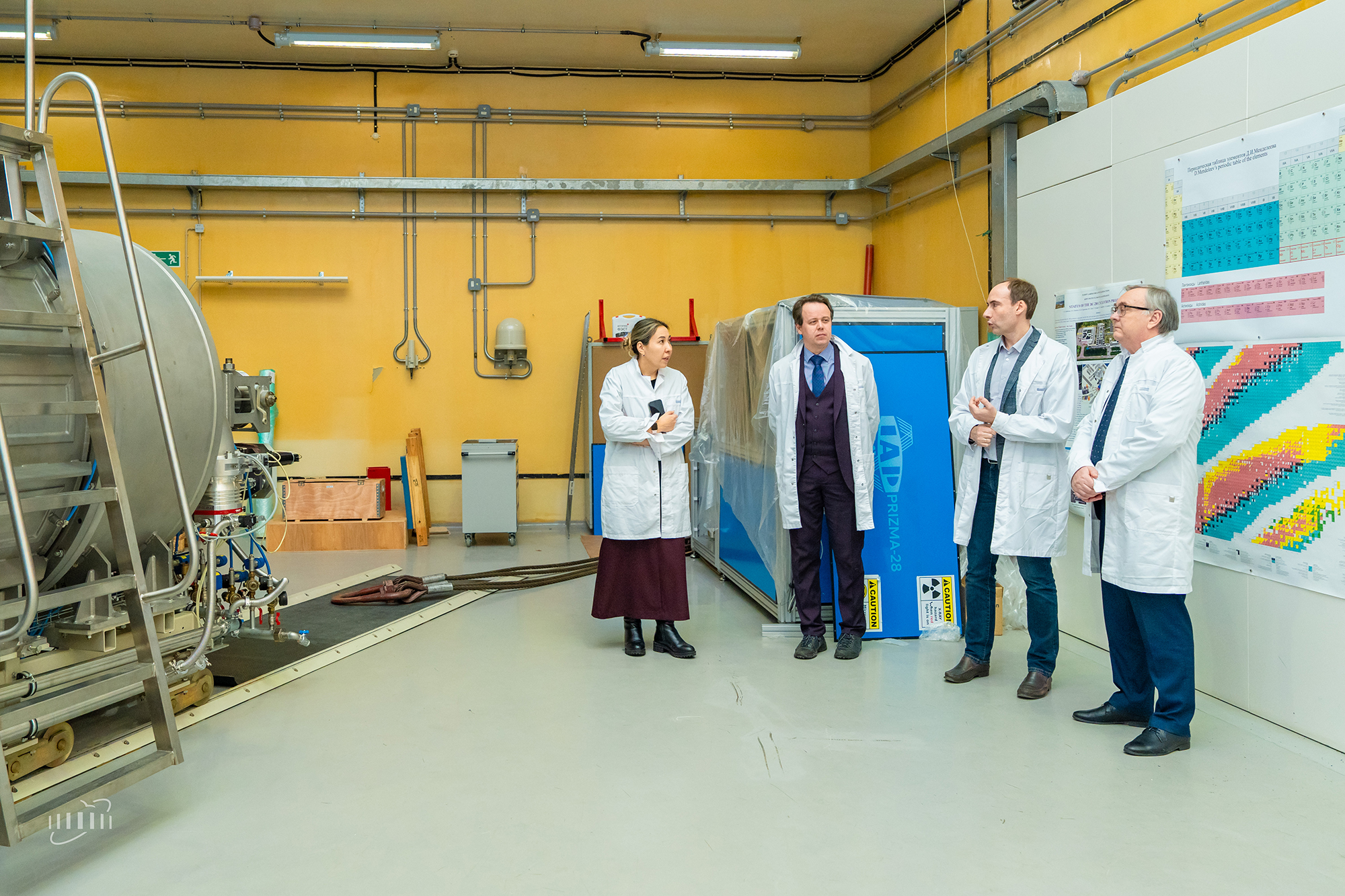 В течение дня делегация Саратовского государственного университета посетила лаборатории ОИЯИ и приняла участие в ряде тематических встреч. В Лаборатории ядерных реакций представители СГУ ознакомились с работой циклотронного комплекса ДЦ-280 и наноцентра. Перспективы развития сотрудничества в области радиобиологии и медицинской физики детально обсуждались во время визита в Лабораторию радиационной биологии. В Лаборатории физики высоких энергий представители СГУ познакомились с ускорительным комплексом NICA. Заместитель директора ЛНФ Норберт Кучерка рассказал о тематике исследований и пользовательской программе на базе реактора ИБР-2.