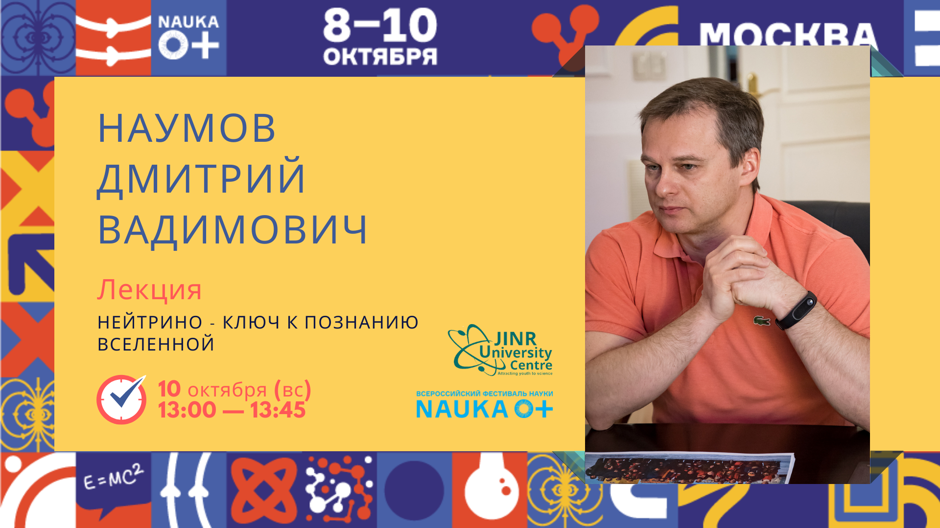 10 октября 2021 в 13:00 из лекции доктора физико-математических наук Дмитрия Наумова, заместителя директора Лаборатории ядерных проблем им. В. П. Джелепова ОИЯИ, слушатели узнают, почему «Нейтрино – ключ к познанию вселенной».