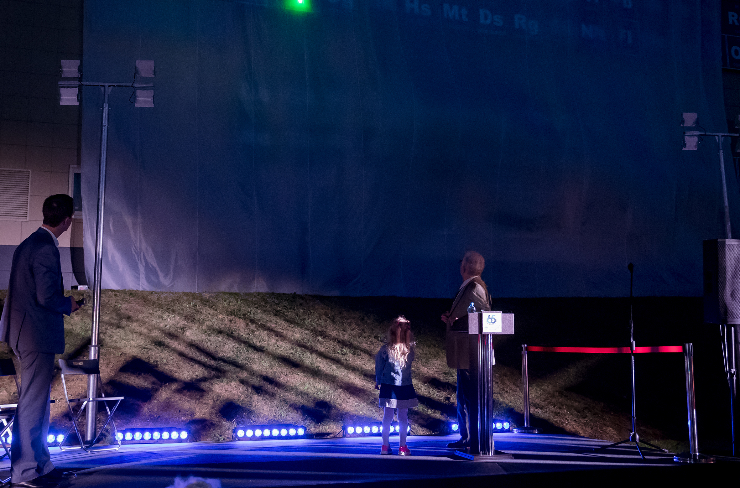 Торжественное открытие нового артсайнс-объекта проводил директор ОИЯИ, академик РАН Григорий Трубников. «Мы знаем, что наша Дубна – это город, который причастен к современному виду таблицы Менделеева, – сказал он. – Именно здесь, в ОИЯИ, в Дубне, открыты 10 новых элементов, которые обрели свое место в Периодической таблице. Главная черта, которая движет ученым – быть первым. Быть первым там, где никто до него никогда не был. Идеи Дмитрия Ивановича Менделеева опередили свое время и открыли дорогу в будущее.