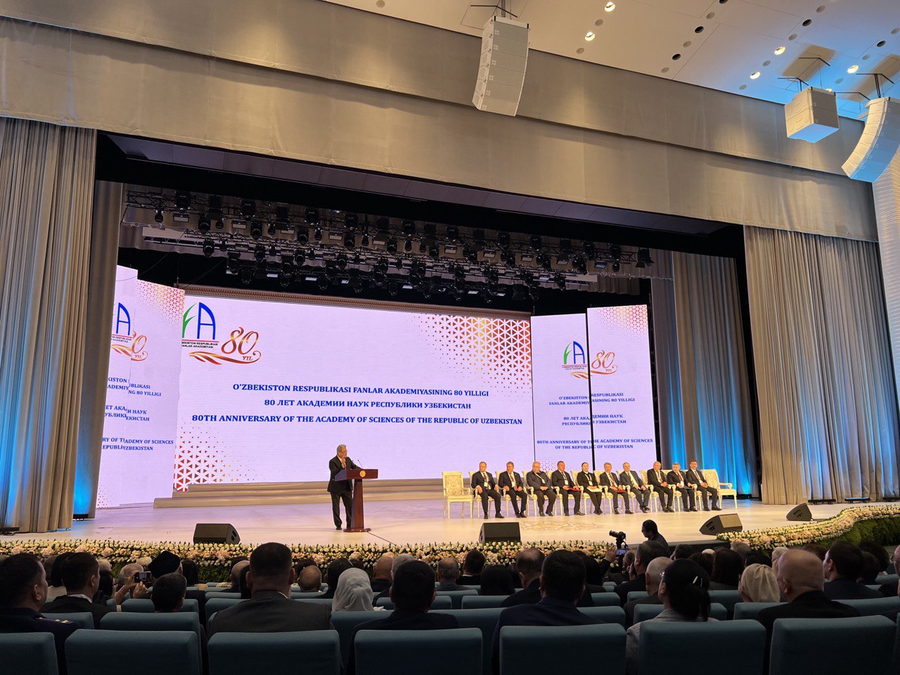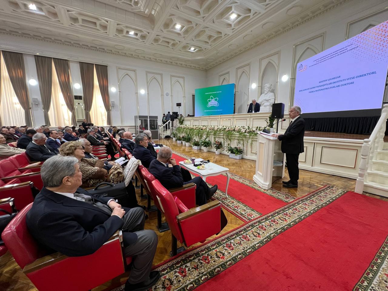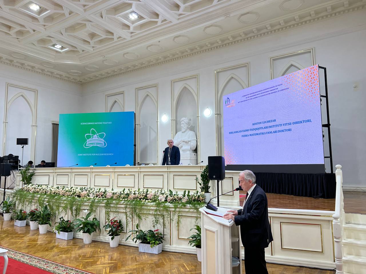 Поздравляя АН РУз от имени многонационального коллектива Объединенного института, глава делегации ОИЯИ, вице-директор Лъчезар Костов, отметил, что Узбекистан является государством, на территории которого еще в средние века происходил расцвет науки и культуры. «Сегодня ученые Узбекистана продолжают принимать активное участие в реализации научной программы ОИЯИ и вносят достойный вклад в ее научные достижения мирового уровня. Мы гордимся тем, что Узбекистан является государством-членом нашей международной межправительственной организации, и высоко ценим участие Республики в ОИЯИ. Для Объединенного института Узбекистан является одним из стратегических партнеров. Академия наук Узбекистана по праву может гордиться своим вкладом в мировую науку. В юбилейный год мы не только оглядываемся на славную историю Академии наук Узбекистана, но и вместе строим амбициозные планы на будущее», — подчеркнул он.