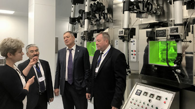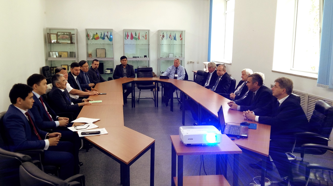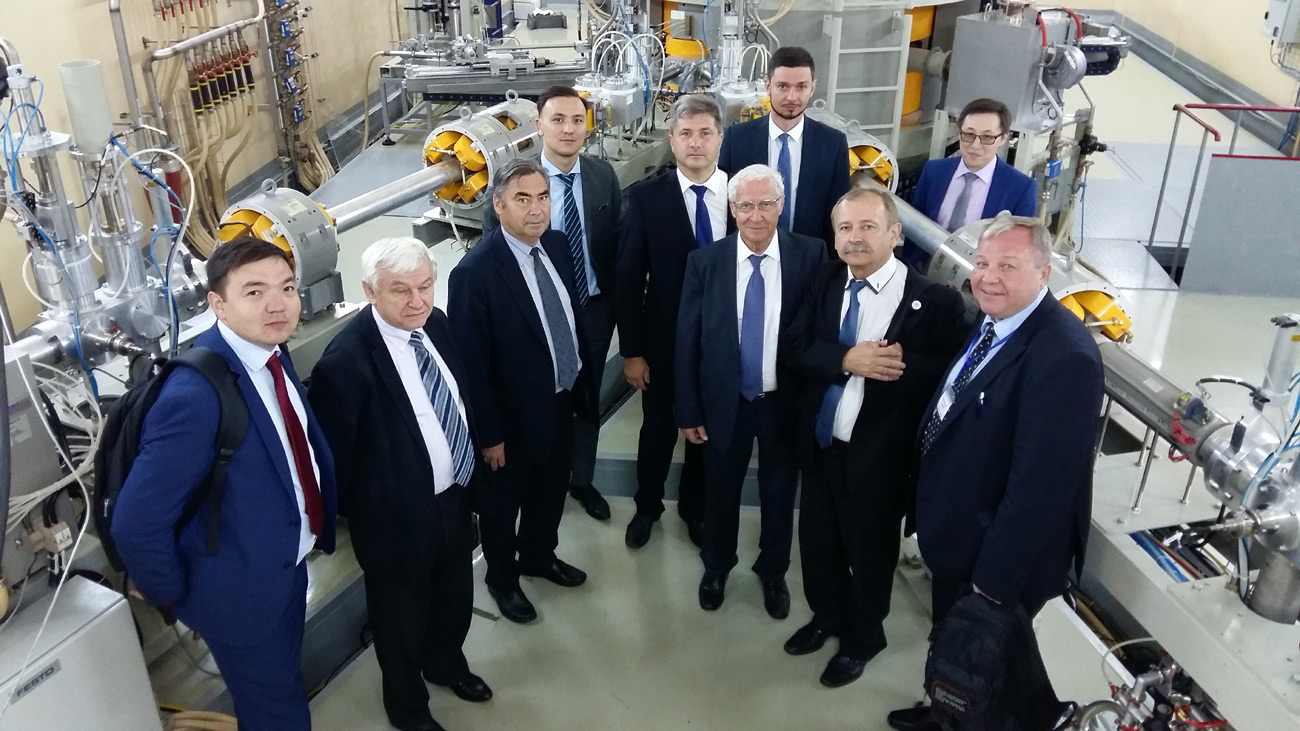 Еще одной знаменательной дате – 25-летию участия Республики Казахстан в ОИЯИ в качестве независимого государства – была посвящена деловая программа работы Дубненской делегации на площадке ИЯФ. Гостей ознакомили с деятельностью недавно открытого Учебного центра по ядерной безопасности, делегация осмотрела экспериментальный зал реактора ВВР-К, а также новую инфраструктуру: зал укорителя Циклон-30 и установку радиационной стерилизации материалов на базе электронного ускорителя ИЛУ-10. В круглом столе, посвященном стратегическому планированию сотрудничества ИЯФ и ОИЯИ, с делегацией ОИЯИ встретились: генеральный директор ИЯФ, Полномочный представитель РК в ОИЯИ, Е.А. Кенжин, руководители ядерной науки Казахстана и молодые казахстанские ученые. Деловую программу дубненской делегации завершила встреча руководства ИЯФ и ОИЯИ с Президентом ядерного общества Казахстана, внештатным советником Президента Республики Казахстан В.С. Школьником.