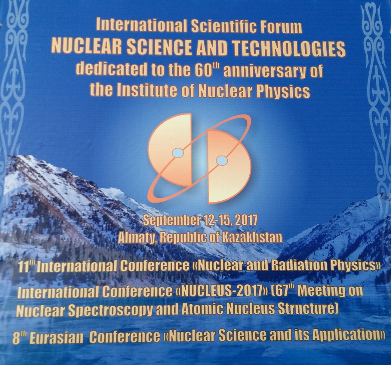 12 сентября 2017 г. делегация руководства ОИЯИ прибыла в г. Алматы для участия в Международном научном форуме «Ядерная наука и технологии», посвященному 60-летию Института ядерной физики Министерства энергетики Республики Казахстан.