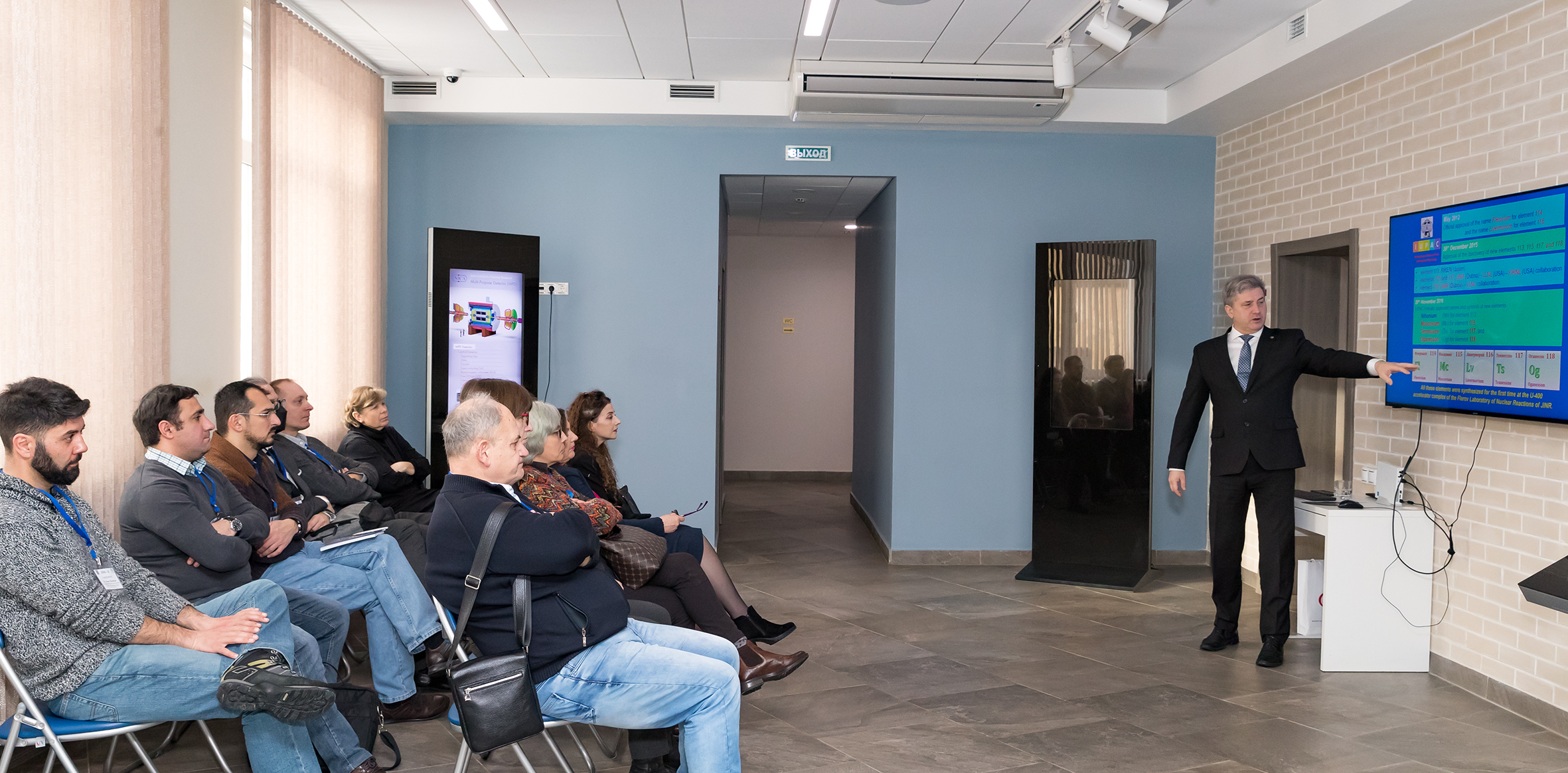 Первый день стажировки традиционно посвящен крупным ускорительным проектам ОИЯИ в ЛЯР и ЛФВЭ. Участники посетили Фабрику сверхтяжелых элементов, ускорительный комплекс NICA и фабрику сверхпроводящих магнитов.