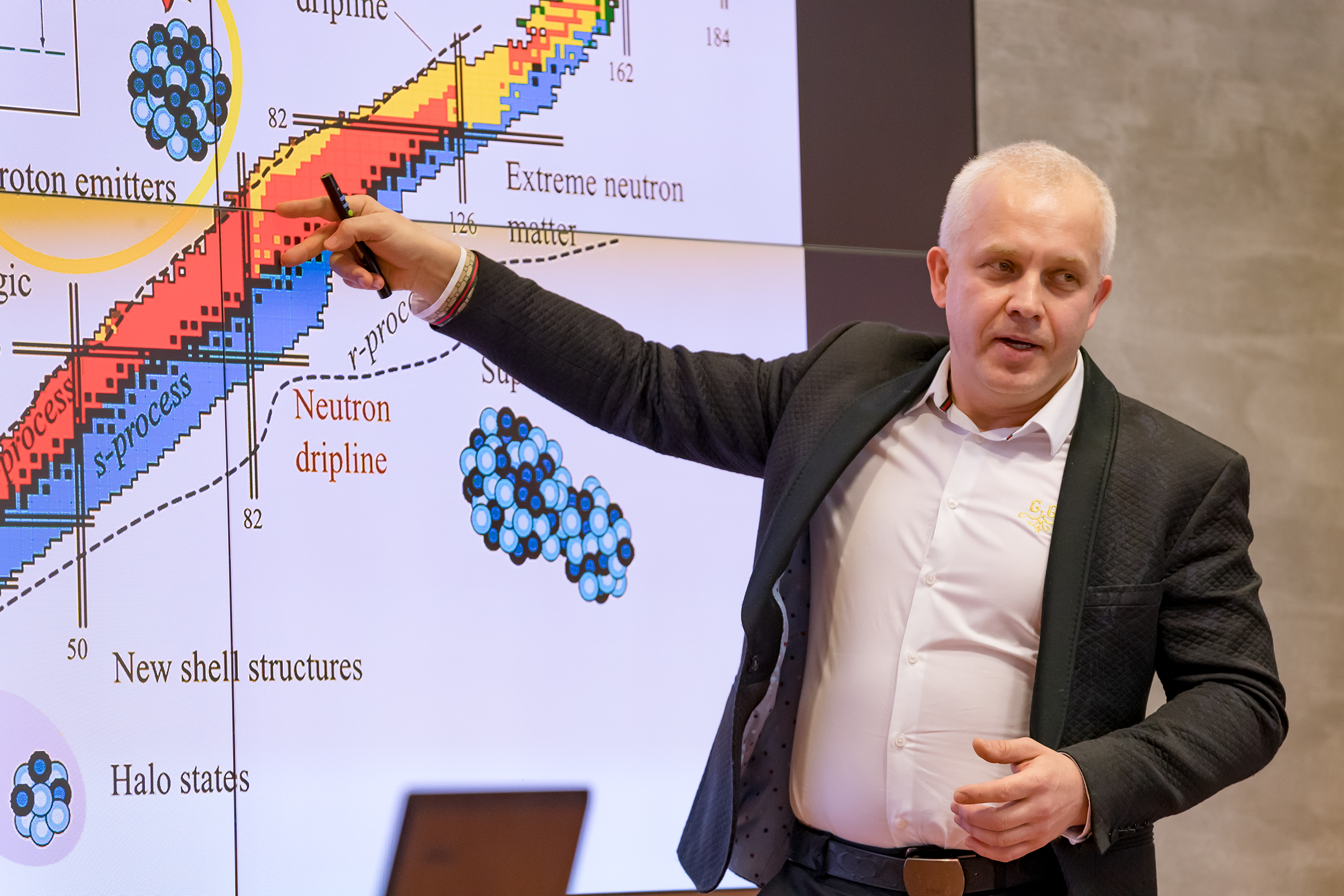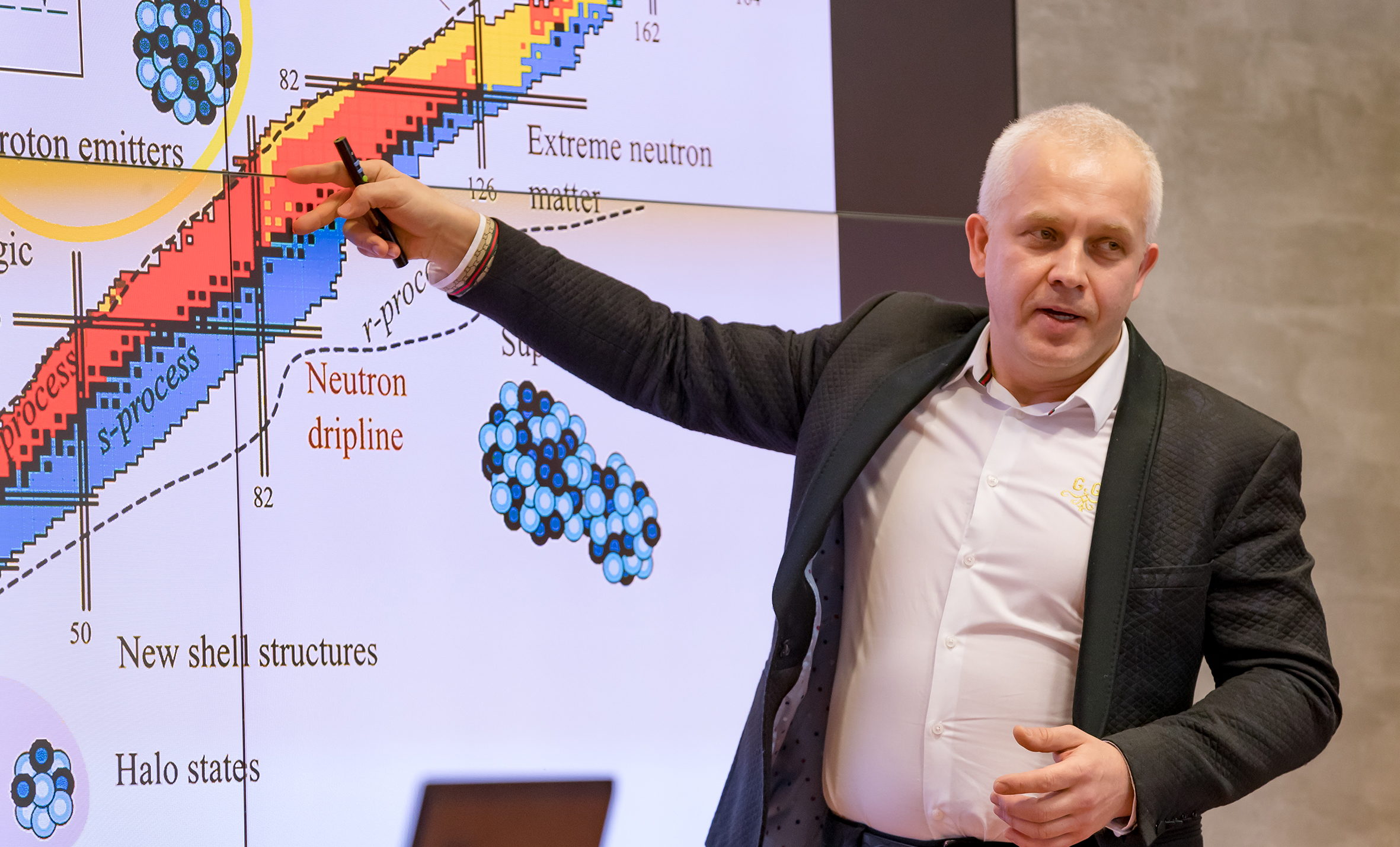 Программу стажировки JEMS открыла ознакомительная лекция об ОИЯИ, которую для участников программы в Визит-центре ОИЯИ прочел руководитель Департамента международных связей Дмитрий Каманин.