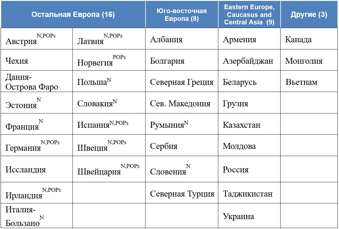 В пробоотборе 2015-2016 гг приняли участие следующие страны: