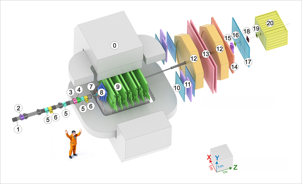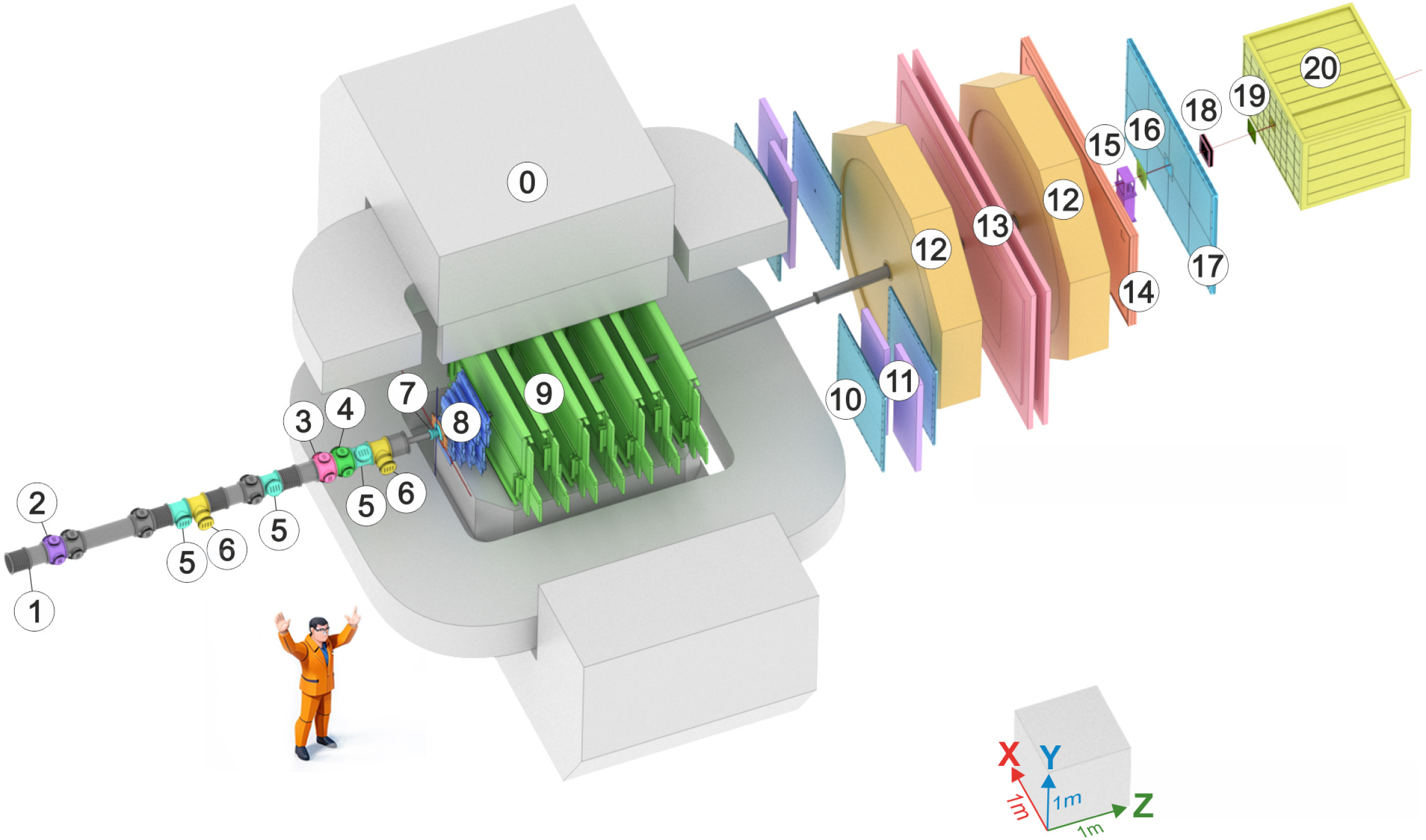Схематический вид установки BM@N в первом физическом эксперименте в 2023 году с пучком ионов ксенона