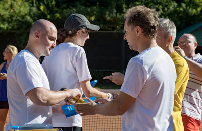 Главный судья соревнований, председатель теннисной секции Дома ученых Д.В.Пешехонов, по просьбе редакции прокомментировал ход и результаты турнира: «Во-первых, хочется поблагодарить природу за прекрасную погоду, позволившую комфортно провести соревнования в парном, смешанном и детском разрядах. Что касается победителей: в парном разряде больших сюрпризов не произошло, чемпионами стали дубненцы Егор Чубурков и Олег Козлов, опытные игроки, в прошлом профессионально занимавшиеся теннисом. В финале они убедительно переиграли своих оппонентов Андрея Колесникова и Алексея Канунникова, представляющих Дубну и Москву. Еще одна дубненская пара: Михаил Закомурный и Игорь Новиков стали третьими. Интрига присутствовала в миксте, где силы соперников были очень близки. Все призеры заслуживали победы, показав красивый теннис. Чуть удачливее оказались более опытные Мария Князюк и Олег Кощеев, переигравшие в финале Ольгу Иваньшину и Михаила Безногих. Хорошую игру показала и пара, занявшая третье место – Татьяна Любавина и Сергей Левшенков. Уже несколько лет мы включаем в программу соревнования представителей ДЮСШ Дубны. В этом году места среди юных теннисистов распределились следующим образом: 1-е место Волкова Влада / Шлыкова Саша; 2-е место Кузьмин Даня / Харламова Лиза, 3-е место Холодаева Милена / Макарова Полина. В целом турнир прошел позитивно, и мы договорились продолжать добрую традицию его проведения в нашем городе».