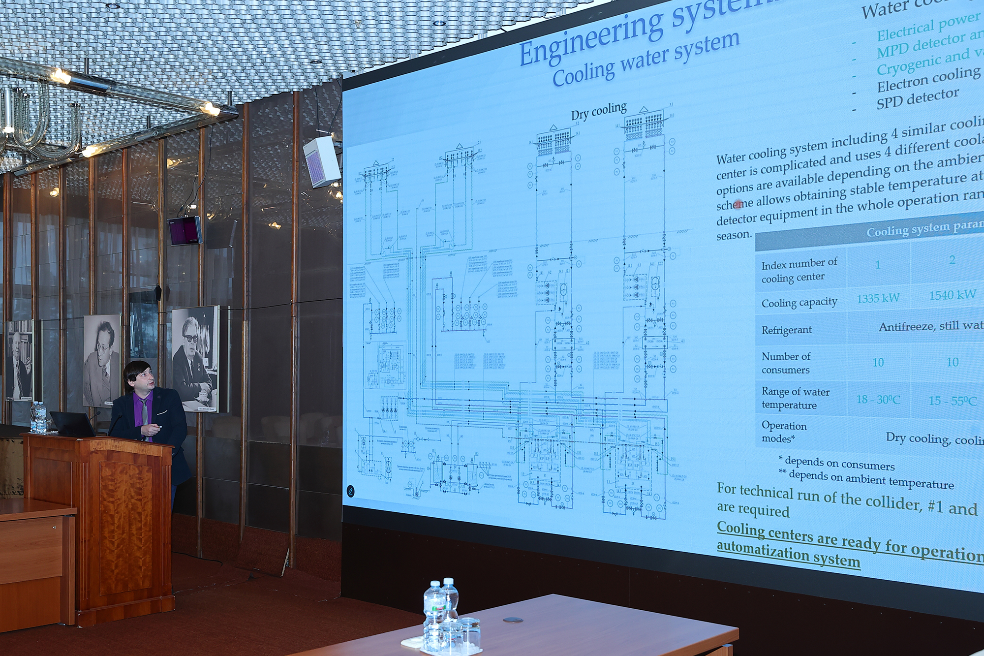DLNP JINR Deputy Chief Engineer Konstantin Mukhin delivered a talk on the readiness of the NICA engineering infrastructure. In 2024, the Institute received a new license for the construction of radiation sources, the lack of which would have made it impossible to continue building the NICA Collider, and a permission to commission the reconstructed main JINR Dubna Distribution Substation No. 1 on the VBLHEP site. Its capacity is 40,800 kV. The Joint Institute facilities will use 34,300 kV.