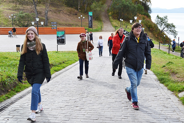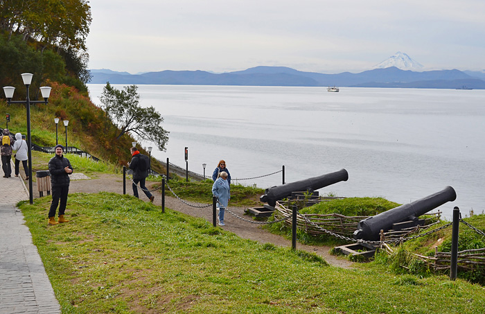 А познавательная программа была продолжена на экскурсии в Петропавловск-Камчатский. Город расположен на сопках, сбегает улицами и строениями к Авачинской бухте Тихого океана, второй по величине в мире. Как и вся Камчатка, столица края парадоксальна и неожиданна. Прямо в центре — пресноводное озеро. Названия жилым кварталам даны по удалению от центра — 7-й километр, 10-й… Дороги своеобразные — огибают возвышенности, петляют, а строились так, чтобы могли разъехаться две собачьи упряжки. Ближайшие к городу вулканы называют домашними: Козельский, Авачинская и Корякская сопки. С какой точки ни посмотри — либо кратеры вдалеке, либо линзовидные, похожие на НЛО, облака. Особым удовольствием стала возможность «прикоснуться» к Тихому океану. Тогда еще никто не предполагал, сколько соленой воды придется нам почувствовать на себе всего лишь через пару дней…