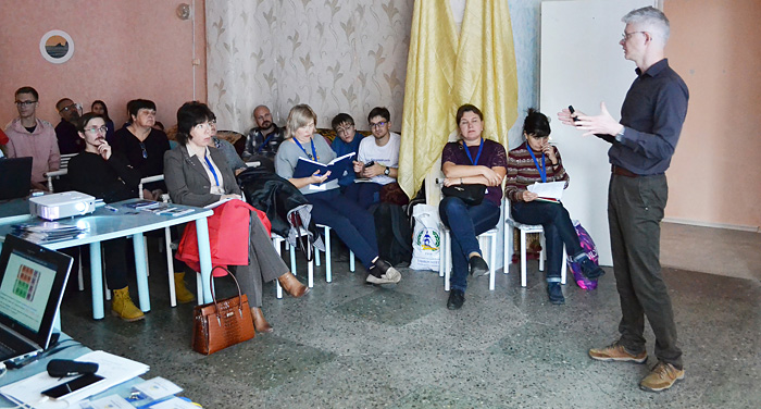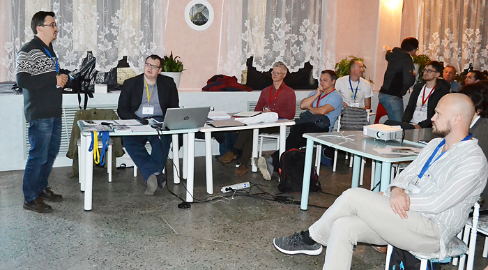 Евгений Казаков, аспирант 2-го года обучения: «Я математик, и мне сложно включиться в работу, некоторых вещей я просто не понимаю… Формат школы устраивает, довольно-таки интересно, но тематика должна меняться. Я для себя некоторые вещи отметил, чтобы в дальнейшем ознакомиться и понимать, о чем идет речь».