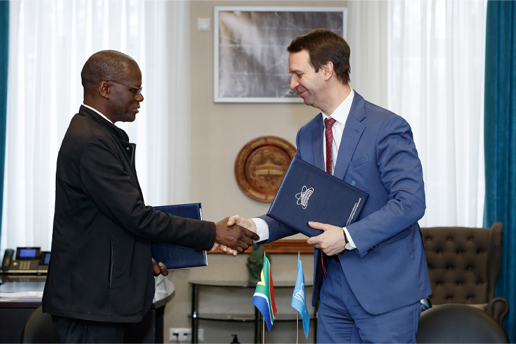 Вчера, 29 января, было подписано соглашение об организации Информационного центра ОИЯИ на базе iThemba LABS — национального ускорительного центра Южно-Африканской Республики. Документ подписали директор ОИЯИ Григорий Трубников и директор iThemba LABS Маконделеле Виктор Тшивхасе.