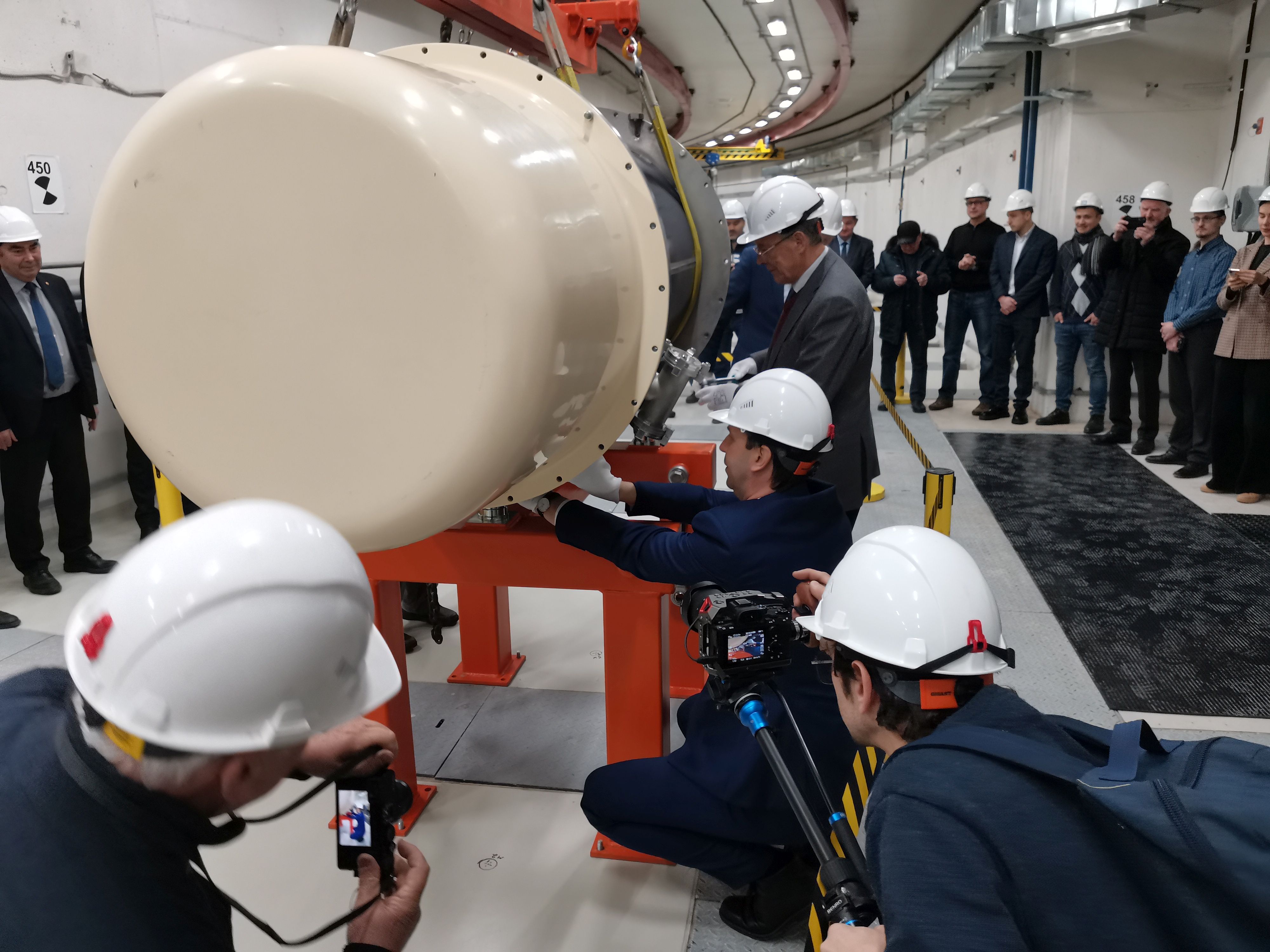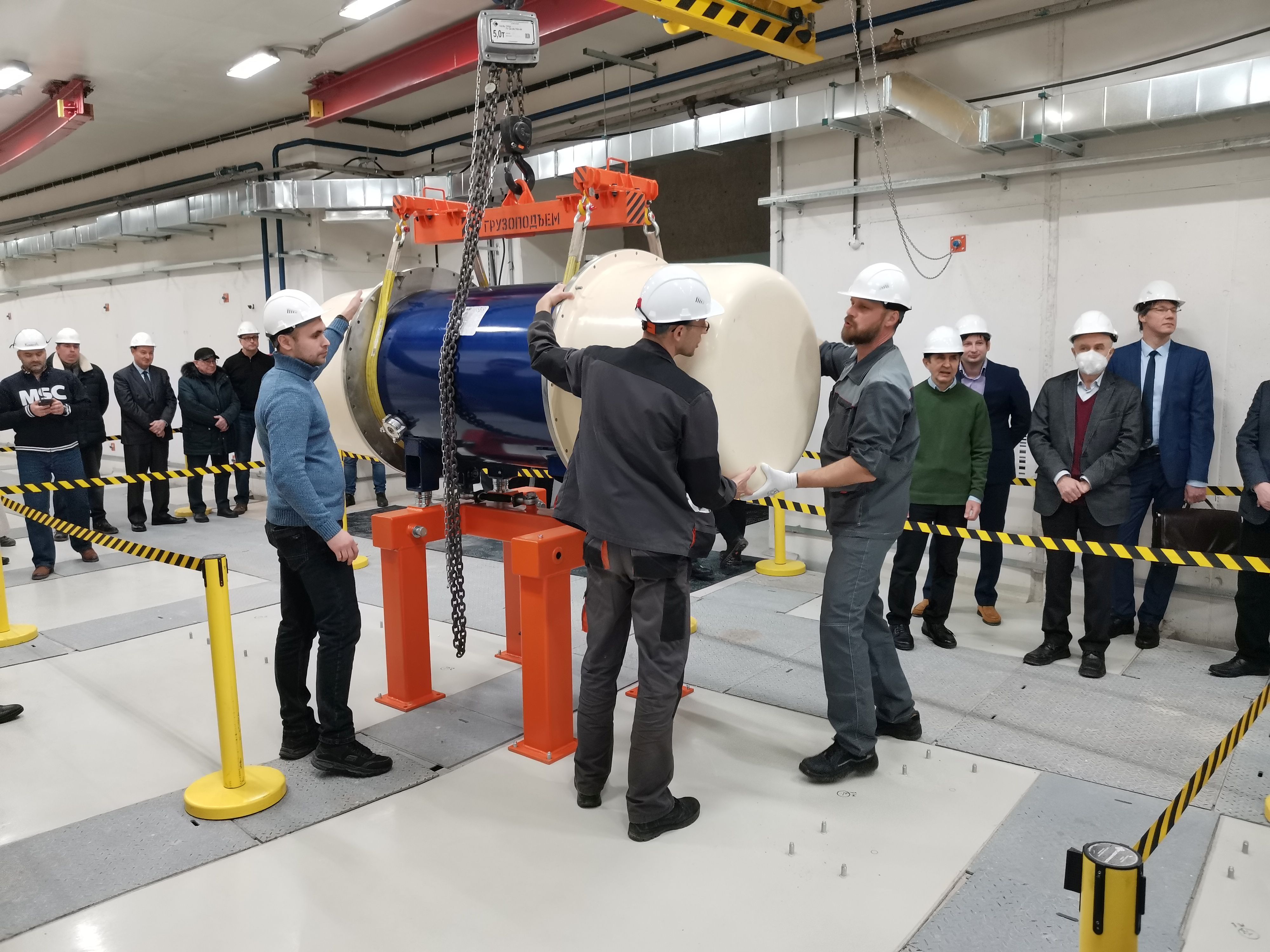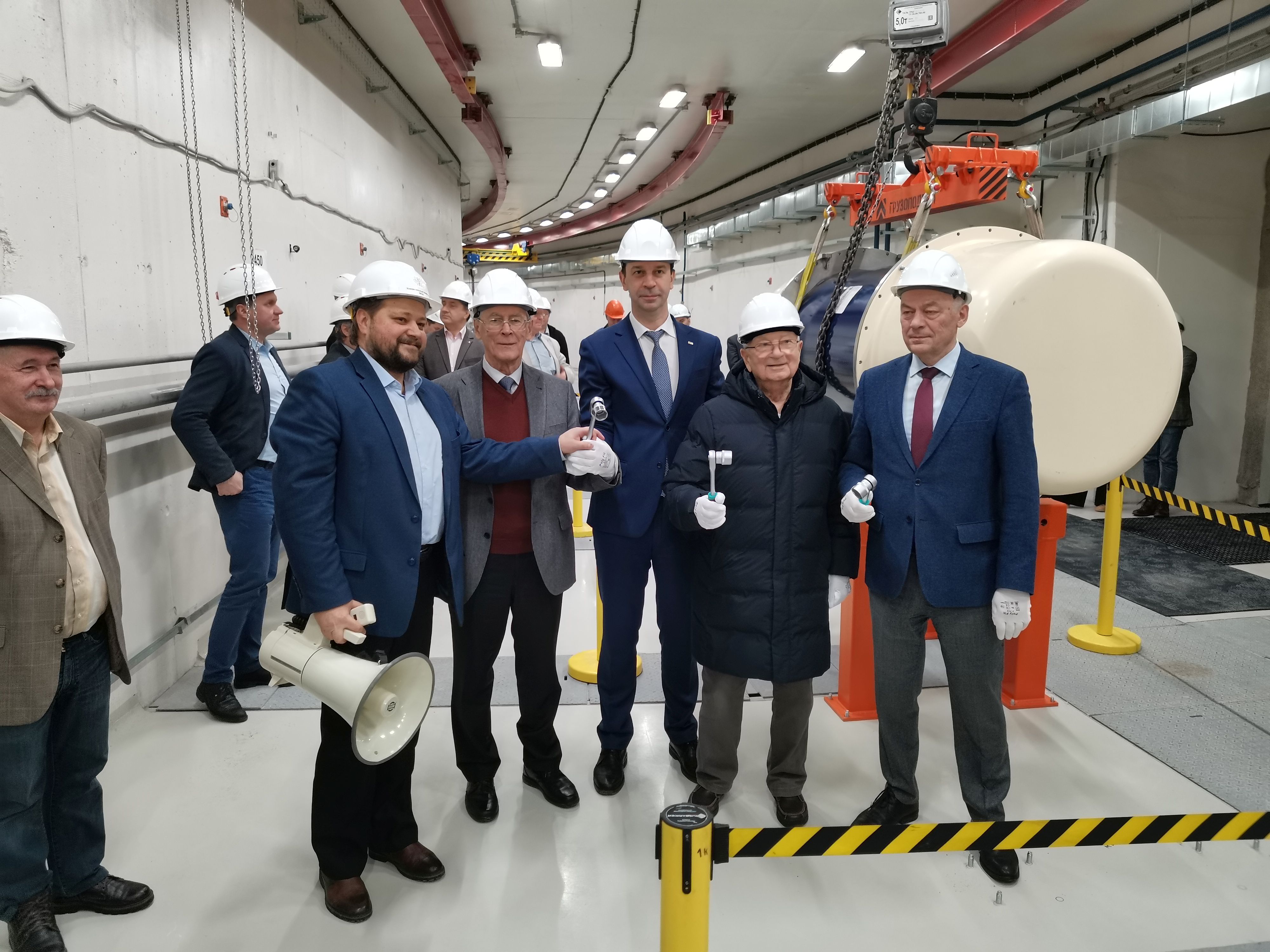 28 декабря в туннеле коллайдера ускорительного комплекса NICA был установлен первый сверхпроводящий магнит. Кроме этого, была запущена система испытания соленоида MPD. Торжественное мероприятие прошло при участии дирекции Института, руководства научных лаборатории ОИЯИ и представителей вовлеченных в строительство коллайдера организаций.