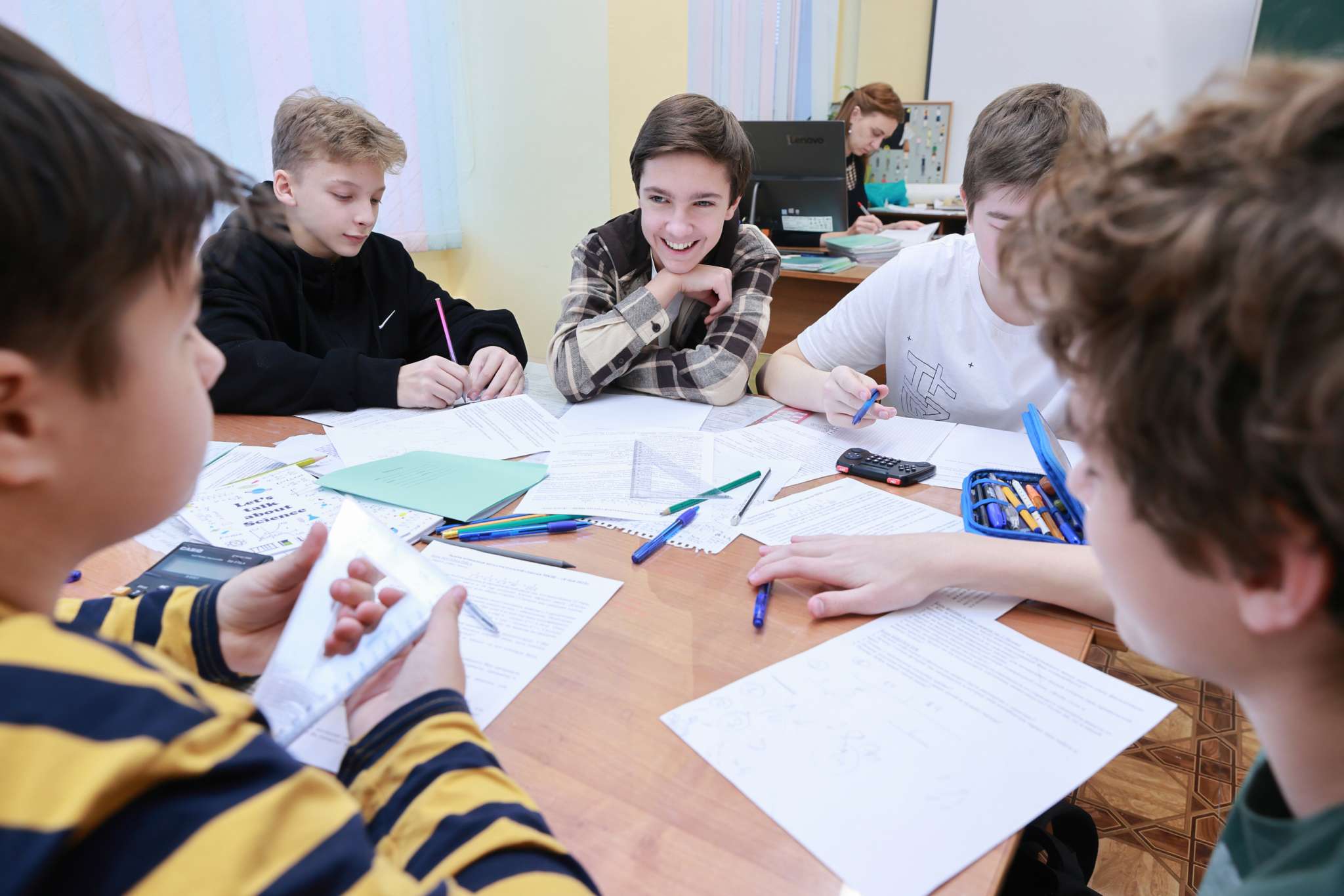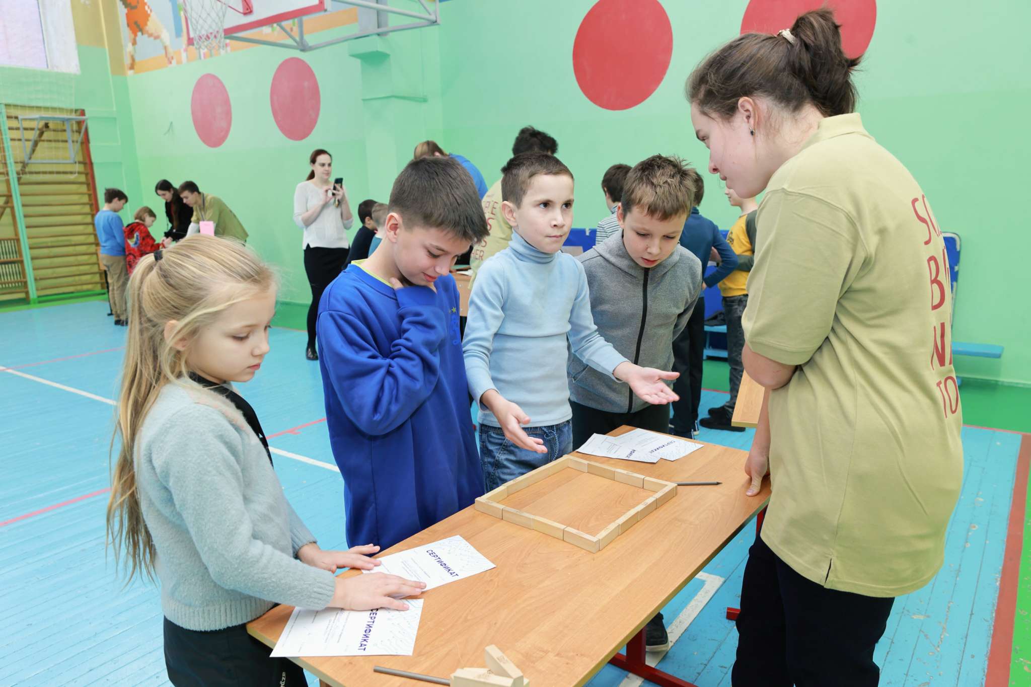 This year, the events took place at two venues, the UC building on Vavilova St. and Lyceum No. 6. The Festival programme included natural science and technical “merry-go-rounds” for students, a quiz for young physicists, and a quest. In addition, there were scientific demonstrations, an interdisciplinary team battle, and physics, biology, ecology, and robotics workshops. 15 employees of JINR and partner organizations took part in the preparation and holding of the Festival. 35 students of Dubna University and high school students of Lyceum No. 6 and the V. G. Kadyshevsky Lyceum became volunteers, mentors, and coaches at the main events. For example, teachers of the Faculty of Natural and Engineering Sciences of Dubna University organized a chemistry quiz and a minerals workshop, and college students at the university organized a robotics workshop.