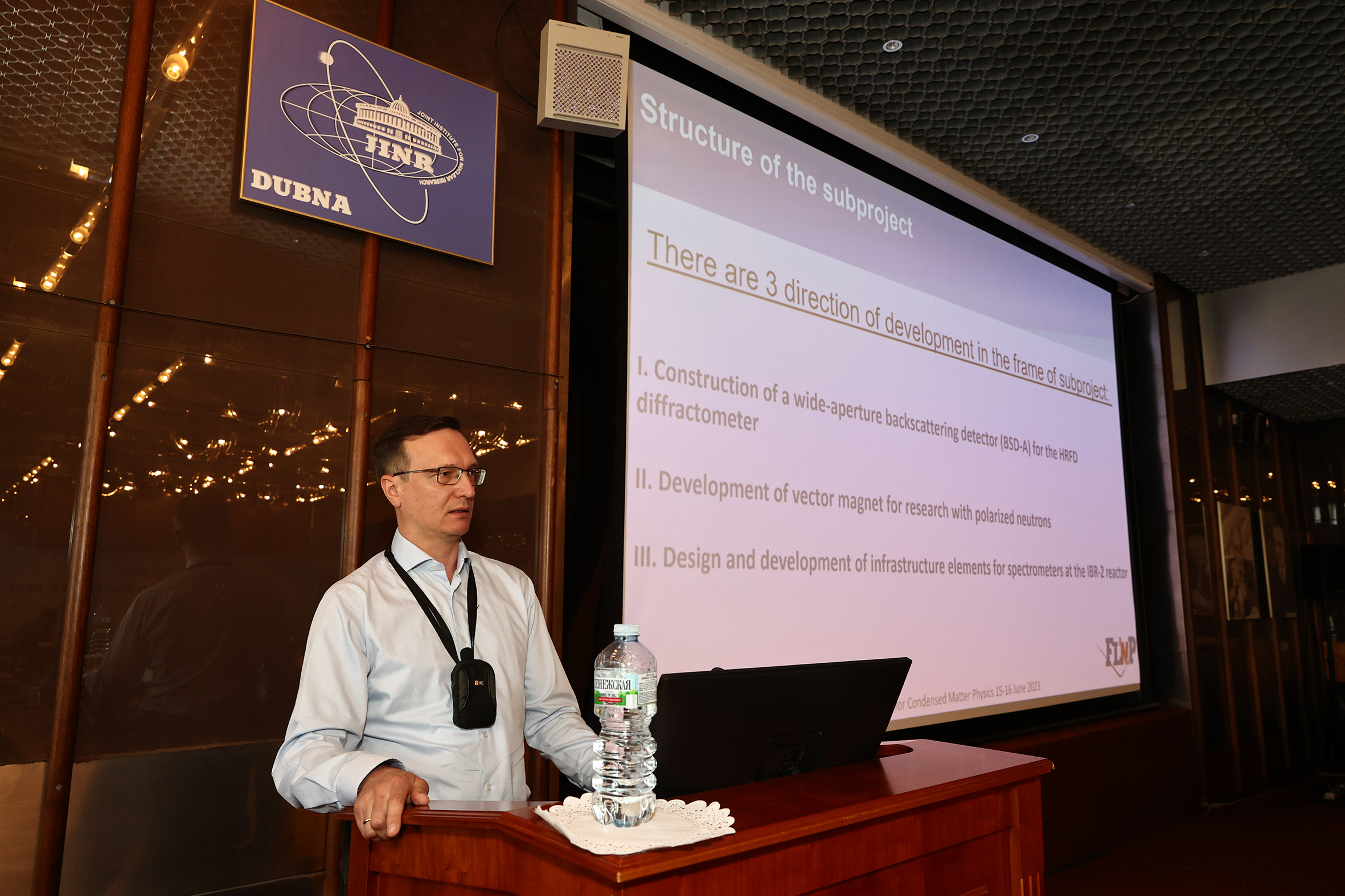 Традиционно одной из центральных тем стал статус реактора ИБР-2. Егор Лычагин в своем выступлении подчеркнул, что дата возобновления работы ИБР-2 напрямую зависит от срока получения лицензии Ростехнадзора на его эксплуатацию, чему будет предшествовать установка новых теплообменников. Команда ЛНФ планирует установить их летом 2023 года. Предварительно запуск реактора запланирован на следующий год. Помимо этого, заключено соглашение с производственным объединением «Маяк» на изготовление нового топлива для ИБР-2. Планируется, что эта работа будет завершена в 2027 году, и в 2028 году начнутся работы по его загрузке в реактор.
