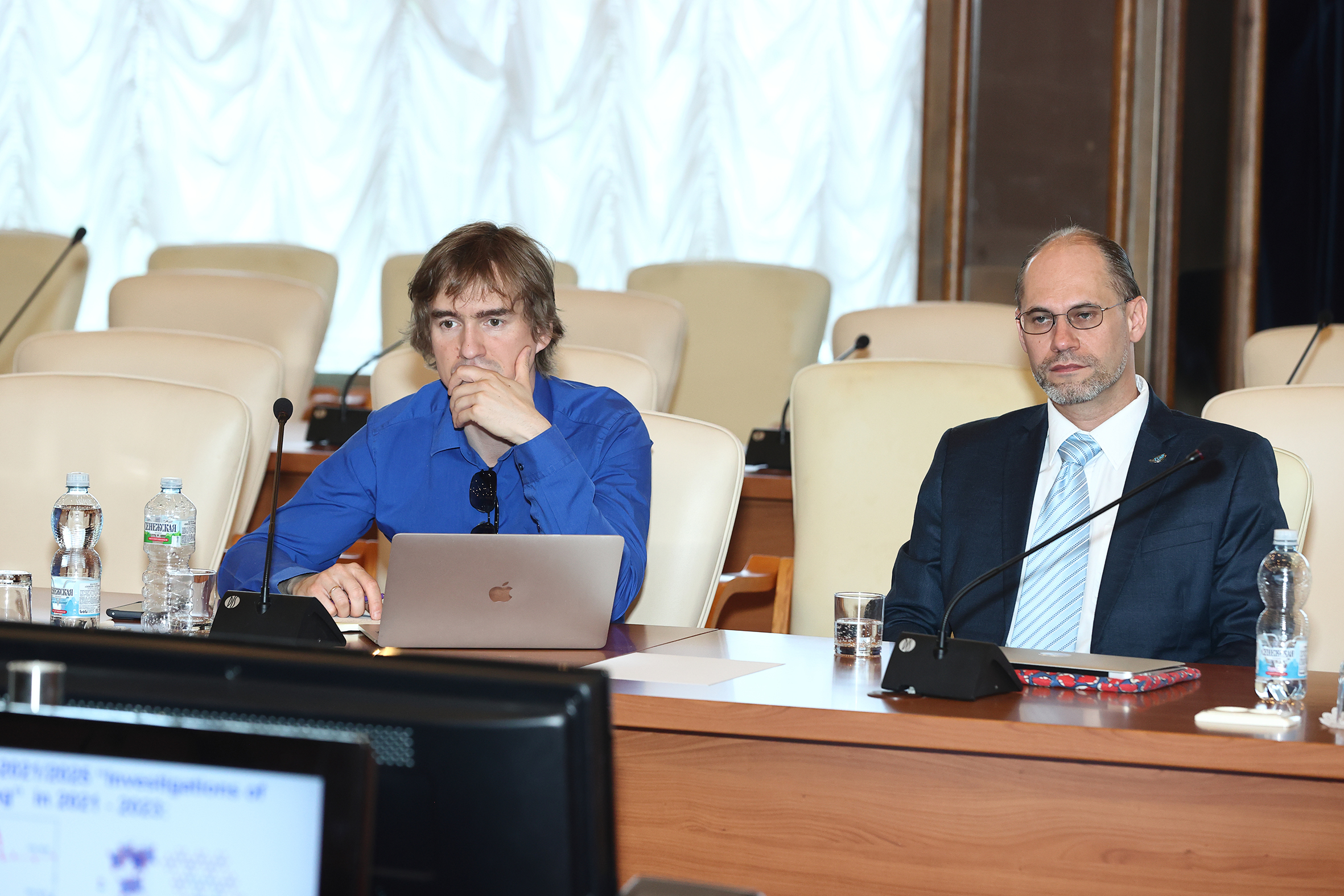 Ведущий научный сотрудник ЛЯП Георгий Шелков и замначальника Ускорительного отделения ЛФВЭ Анатолий Сидорин выступили с предложениями о продлении проектов «Новые полупроводниковые детекторы для фундаментальных и прикладных исследований» и «Развитие техники эксперимента и прикладные исследования на монохроматических пучках позитронов (PAS)».