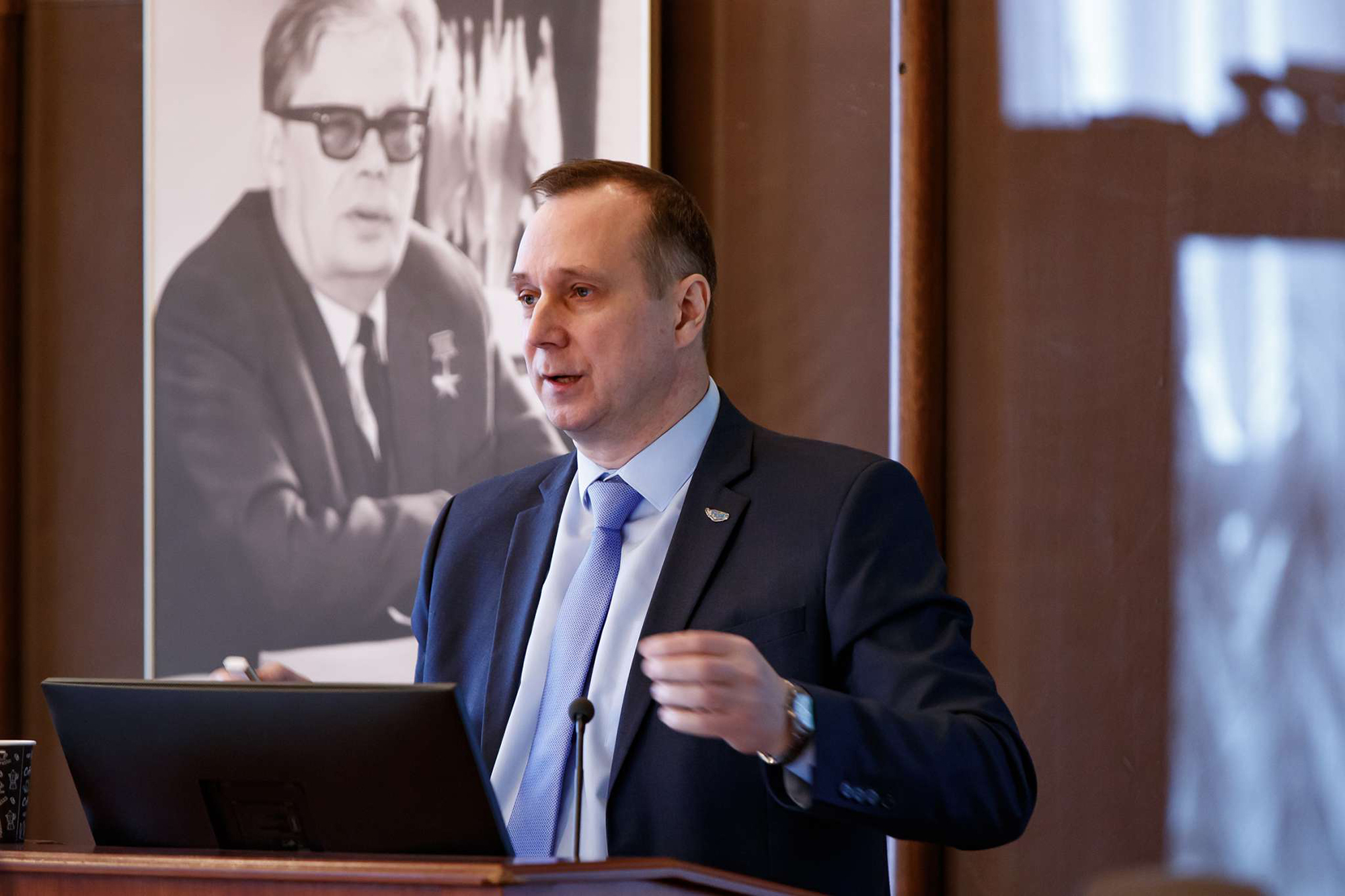 С докладом об основных темах и проектах Семилетнего плана развития ОИЯИ на 2024-2030 годы выступил главный ученый секретарь Института Сергей Неделько. Среди ключевых направлений деятельности Института в рамках новой семилетки были выделены завершение строительства научно-исследовательских комплексов в рамках проектов NICA, DRIBs-III, Baikal-GVD; модернизация и продолжение работы на действующих установках ОИЯИ – Фабрике сверхтяжелых элементов, реакторе ИБР-2, Суперкомпьютере «Говорун»; проведение исследований в области биомедицины и радиобиологии. Как отметил Сергей Неделько, основными векторами работ в рамках исследований, проводимых Лабораторией ядерных реакций ОИЯИ, являются синтез сверхтяжелых элементов на Фабрике СТЭ, исследование различных типов ядерных реакций на комплексе У-400Р, а также исследования на радиоактивных ионных пучках на ускорителе У-400M.