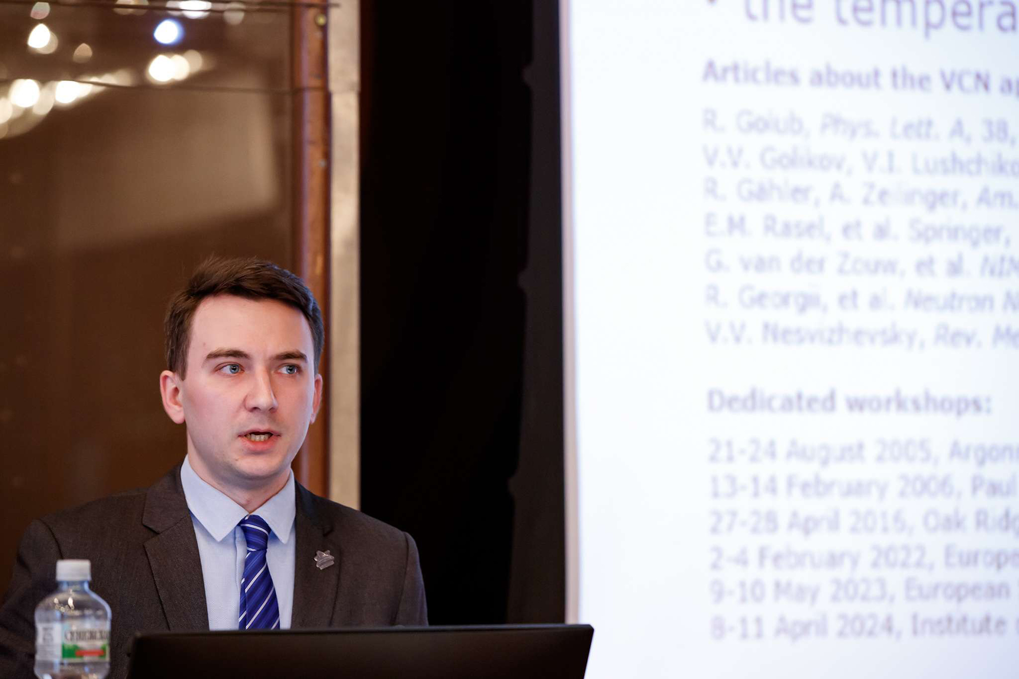 Директор Лаборатории нейтронной физики ОИЯИ Егор Лычагин представил доклад о плане работ по теме «Нейтронная ядерная физика» на 2024 год. Научная программа темы будет реализовываться в рамках трех проектов: двух научных («Исследование взаимодействия нейтронов с ядрами и свойств нейтрона» и «TANGRA») и одного научно-технического («Модернизация ускорителя ЭГ-5 и его экспериментальной инфраструктуры»). Ведутся работы по разработке концептуального проекта источника ультрахолодных нейтронов (УХН) на импульсном реакторе.