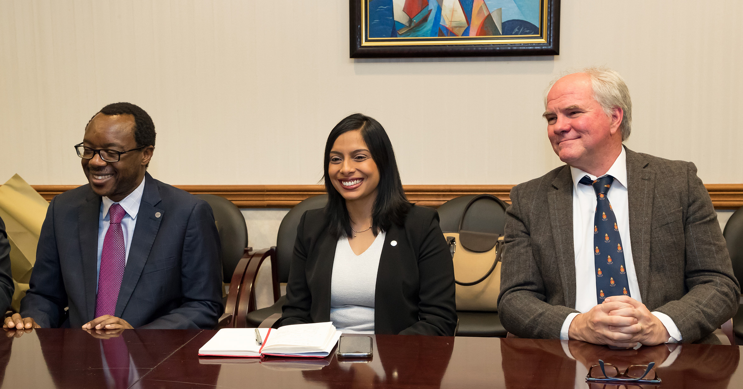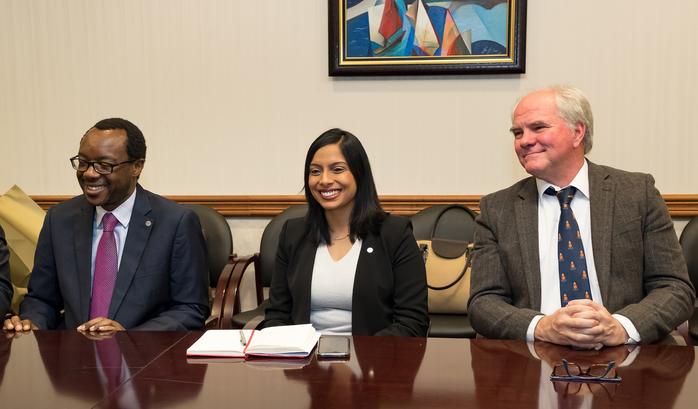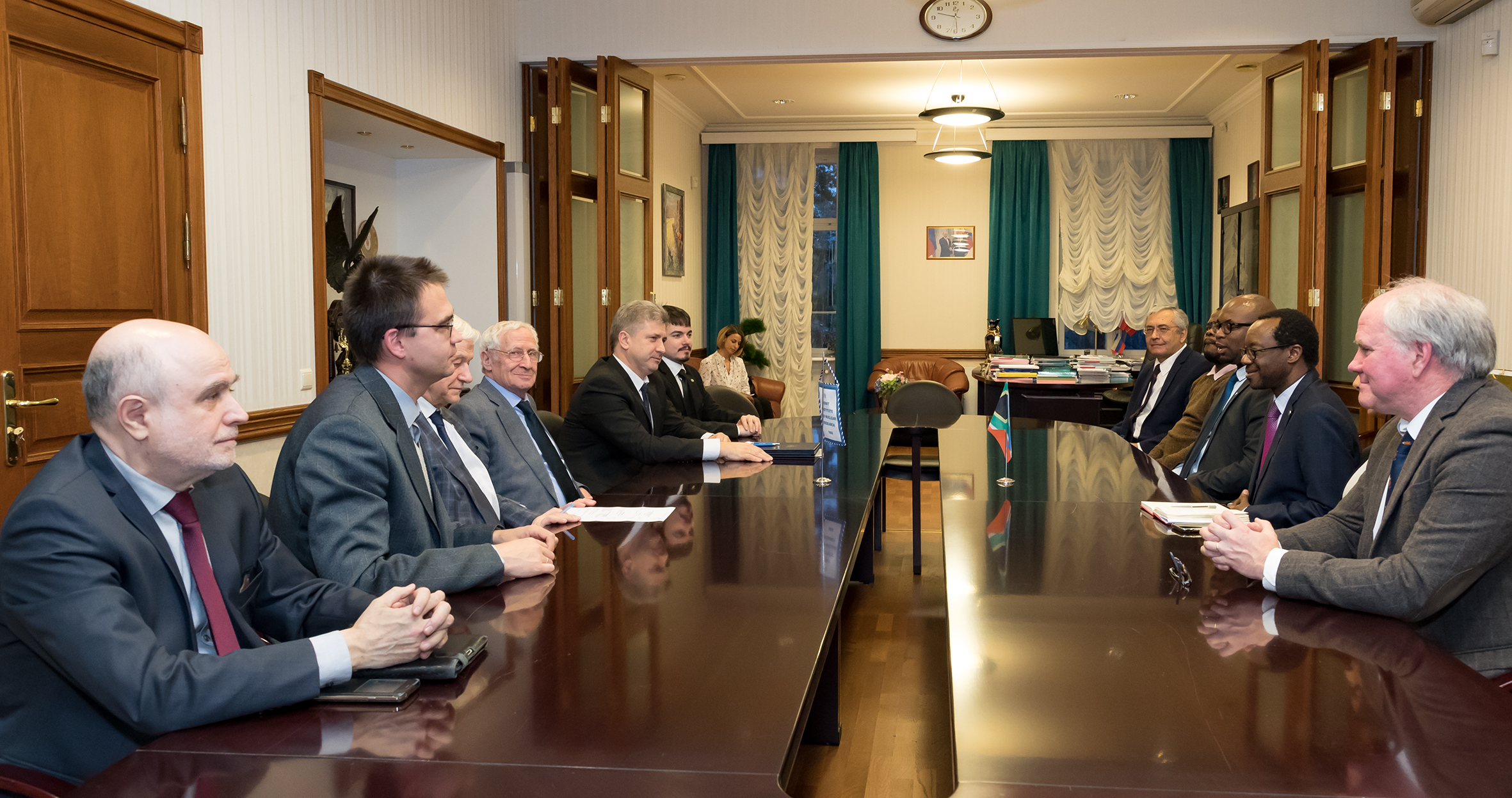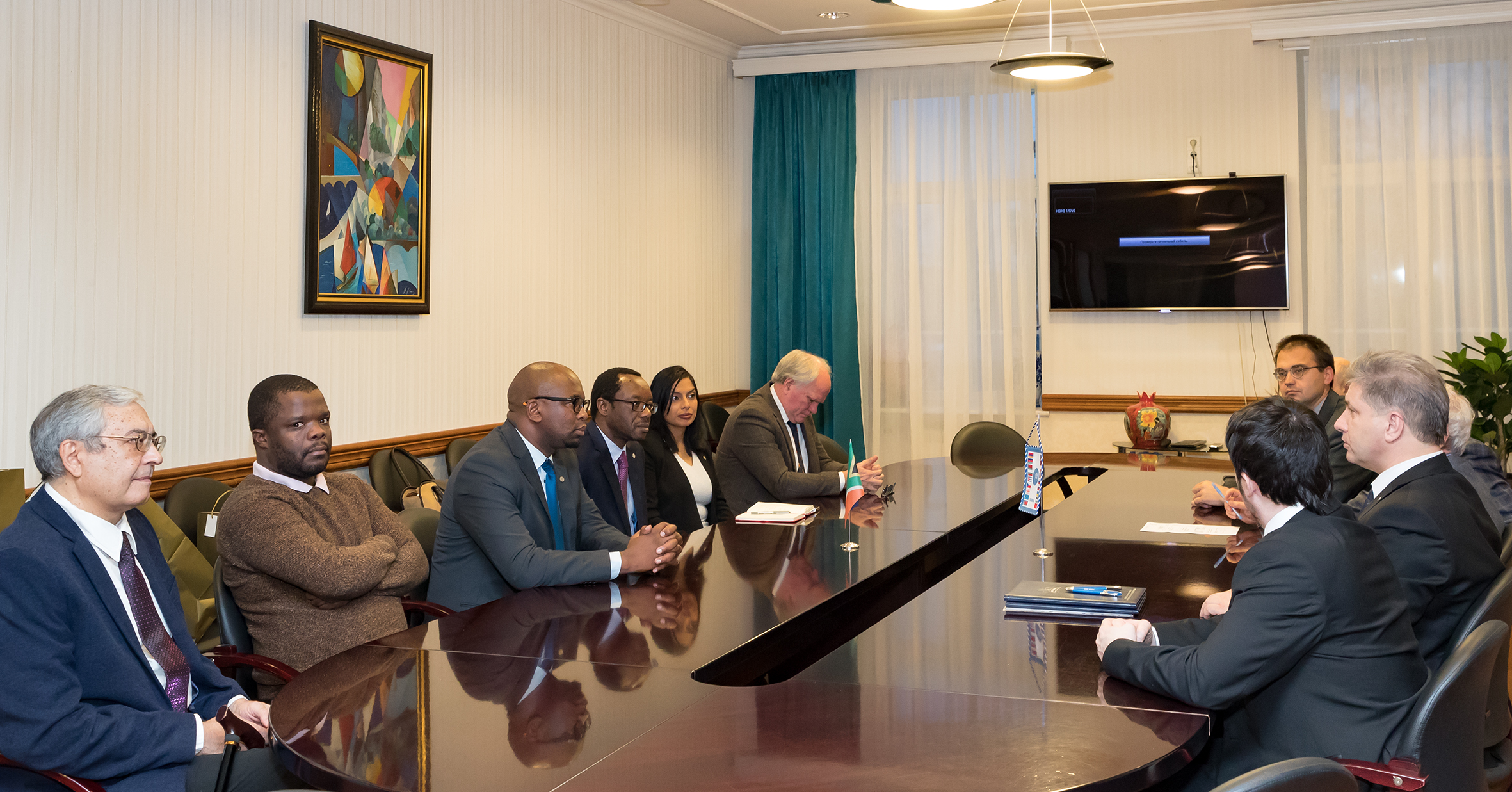 27 февраля состоялась встреча делегации с дирекцией ОИЯИ — вице-директорами М. Г. Иткисом, Р. Ледницки и главным ученым секретарем А. С. Сориным. Со стороны ОИЯИ во встрече приняли участие координатор по сотрудничеству с ЮАР, начальник Отдела международного сотрудничества Д. В. Каманин, заместитель директора Учено-научного центра А. С. Жемчугов и координатор группы ученых ЮАР в ОИЯИ Арно Россоу.