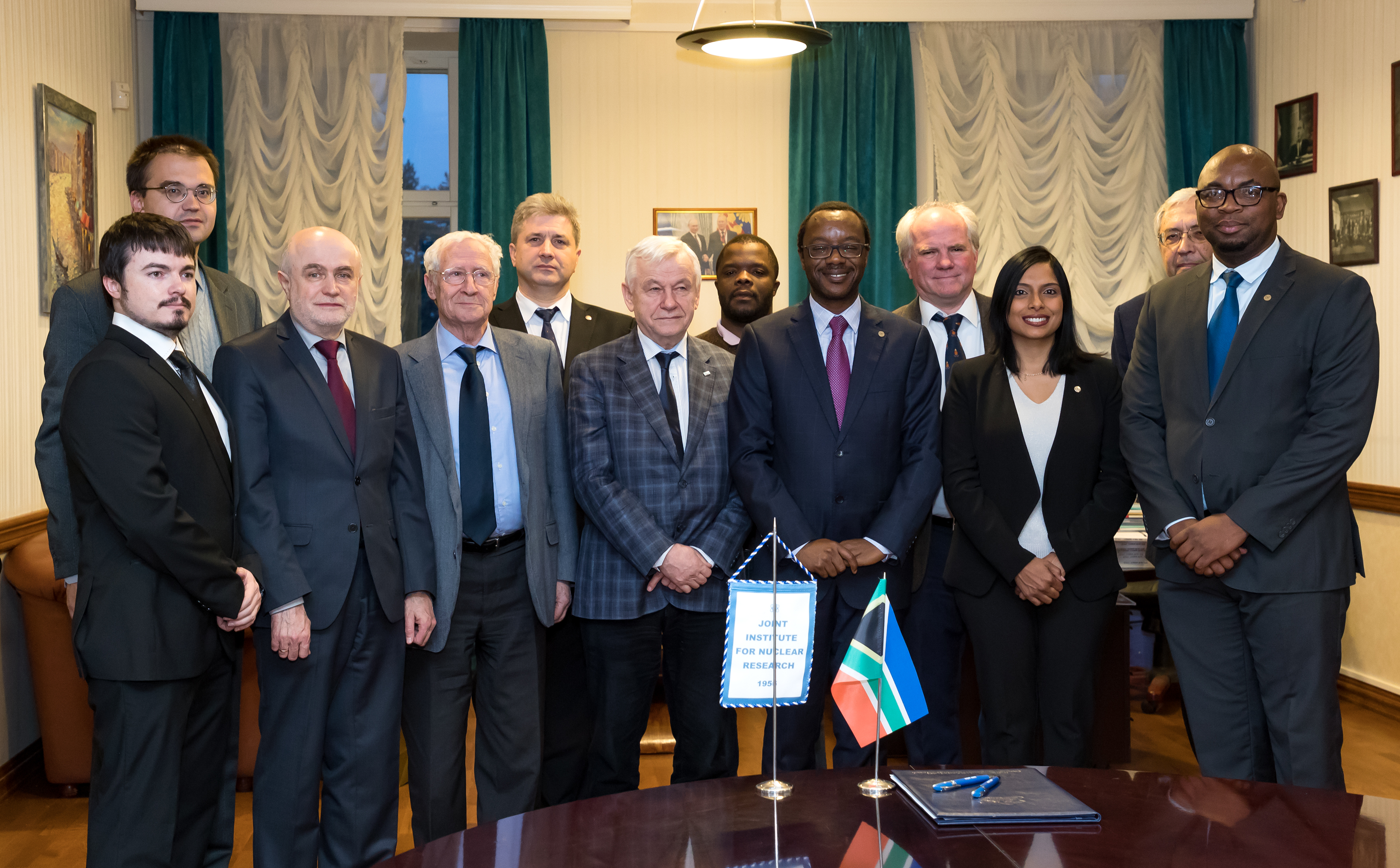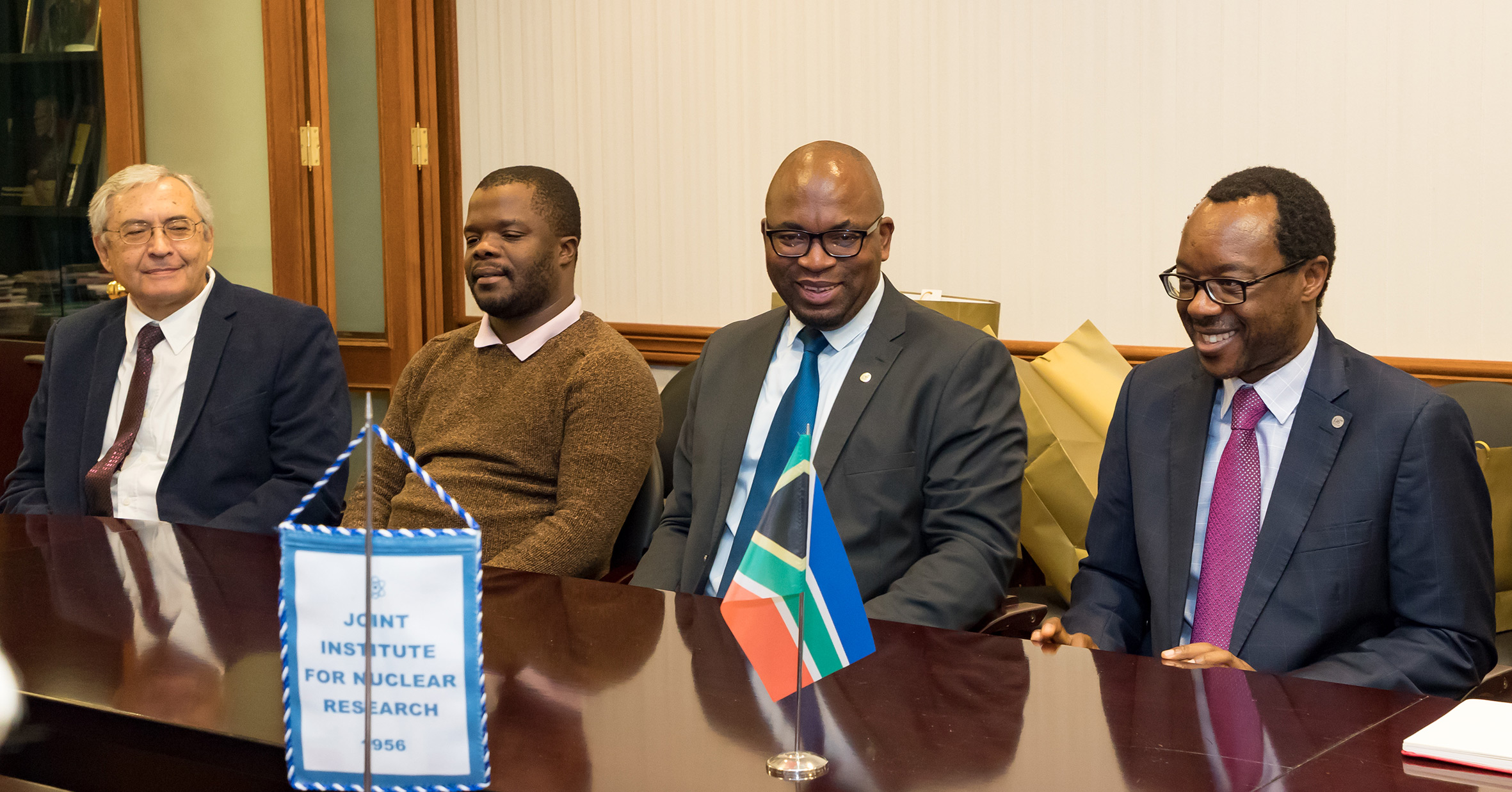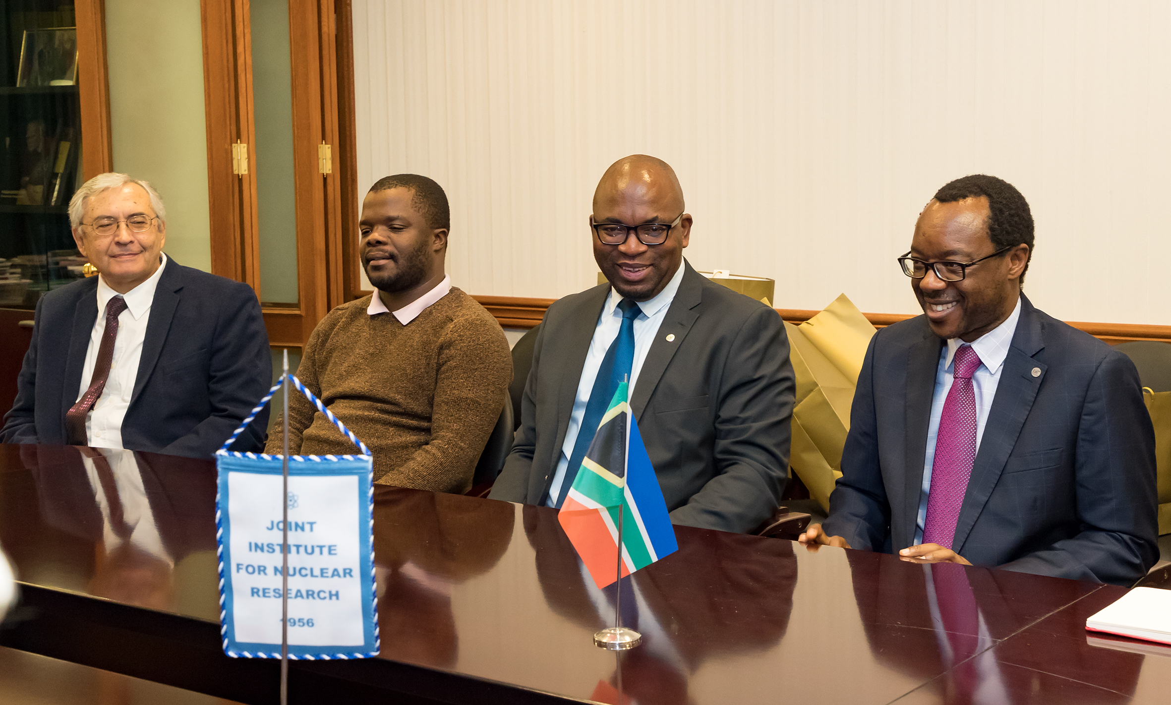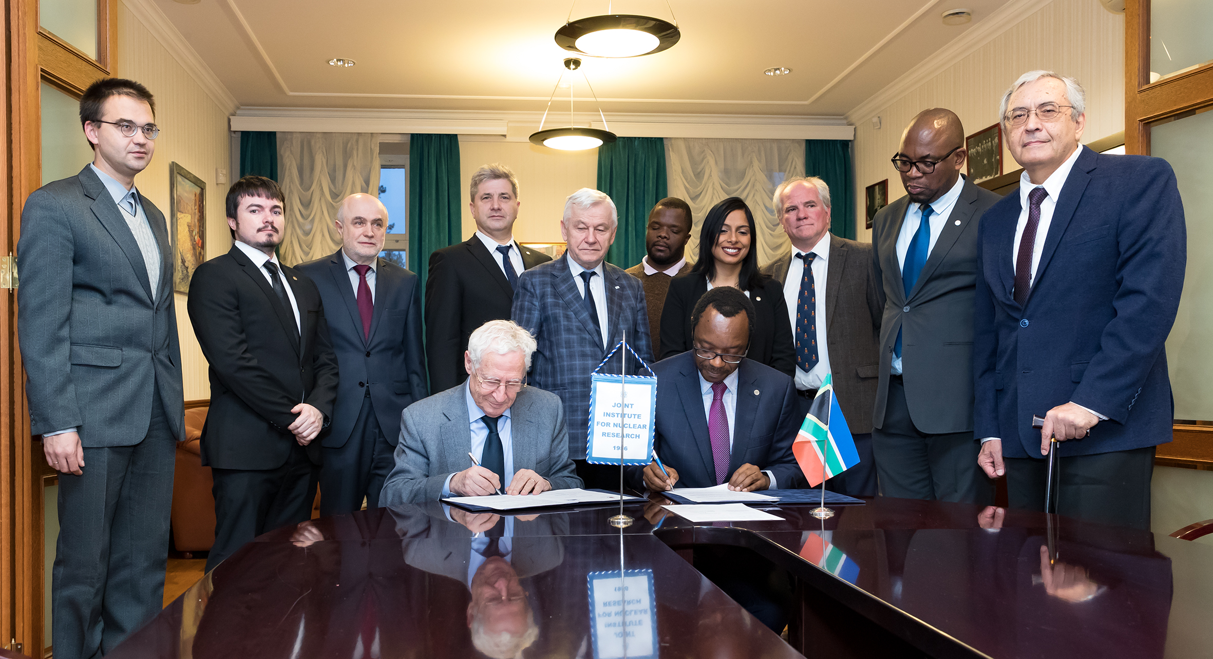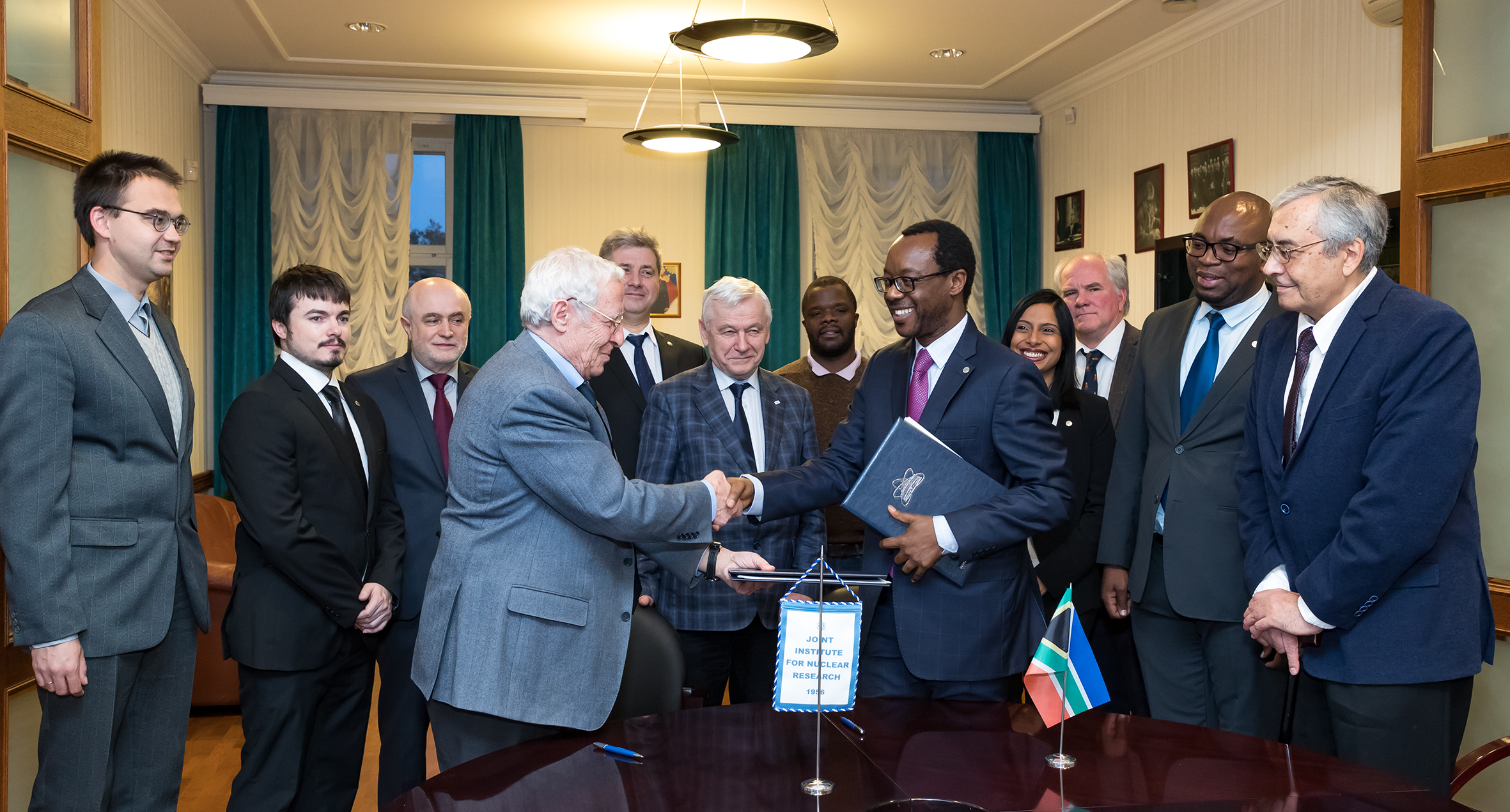 Встреча в дирекции ОИЯИ завершилась торжественным подписанием сторонами соглашения о сотрудничестве в области проведения научных исследований и подготовки научно-технических кадров. Члены южноафриканской делегации подчеркнули, что для Университета Претории это первое соглашение с большой зарубежной исследовательской инфраструктурой.