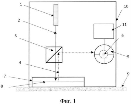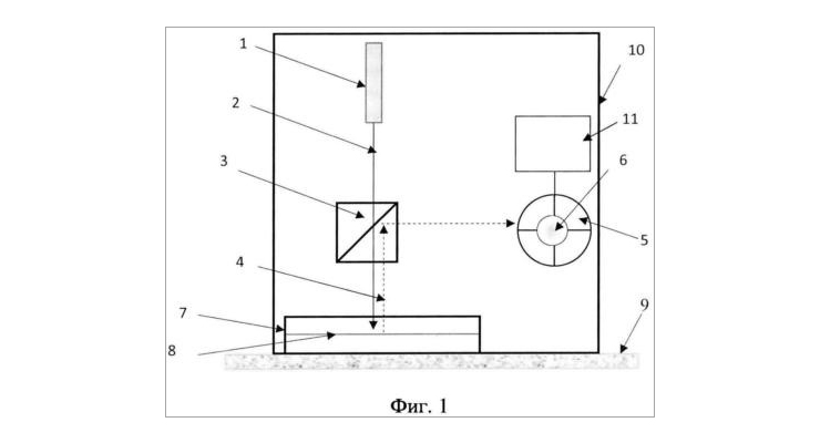 Изобретение относится к контрольно-измерительной технике и может быть использовано для прецизионного измерения угловых наклонов объектов на земной поверхности в малогабаритных условиях размещения устройства, в частности, для мониторинга углового положения крупномасштабных сооружений (высотные здания, мосты, путепроводы, тоннели и др.). Заявленное устройство состоит из платформы, на которой закреплены: одномодовый стабилизированный по мощности лазер, который расположен таким образом, что путь следования его луча перпендикулярен к поверхности жидкости в кювете, кювета с вязкой диэлектрической жидкостью, расположенная на пути следования луча от лазера. Между лазером и поверхностью жидкости расположен оптический элемент, отклоняющий лазерный луч, отраженный от поверхности жидкости, и позиционно-чувствительное фотоприемное устройство, которое выполнено на основе делительных пластинок, с блоком регистрации, измеряющим угол наклона платформы. Технический результат — уменьшение габарита лазерного инклинометра.