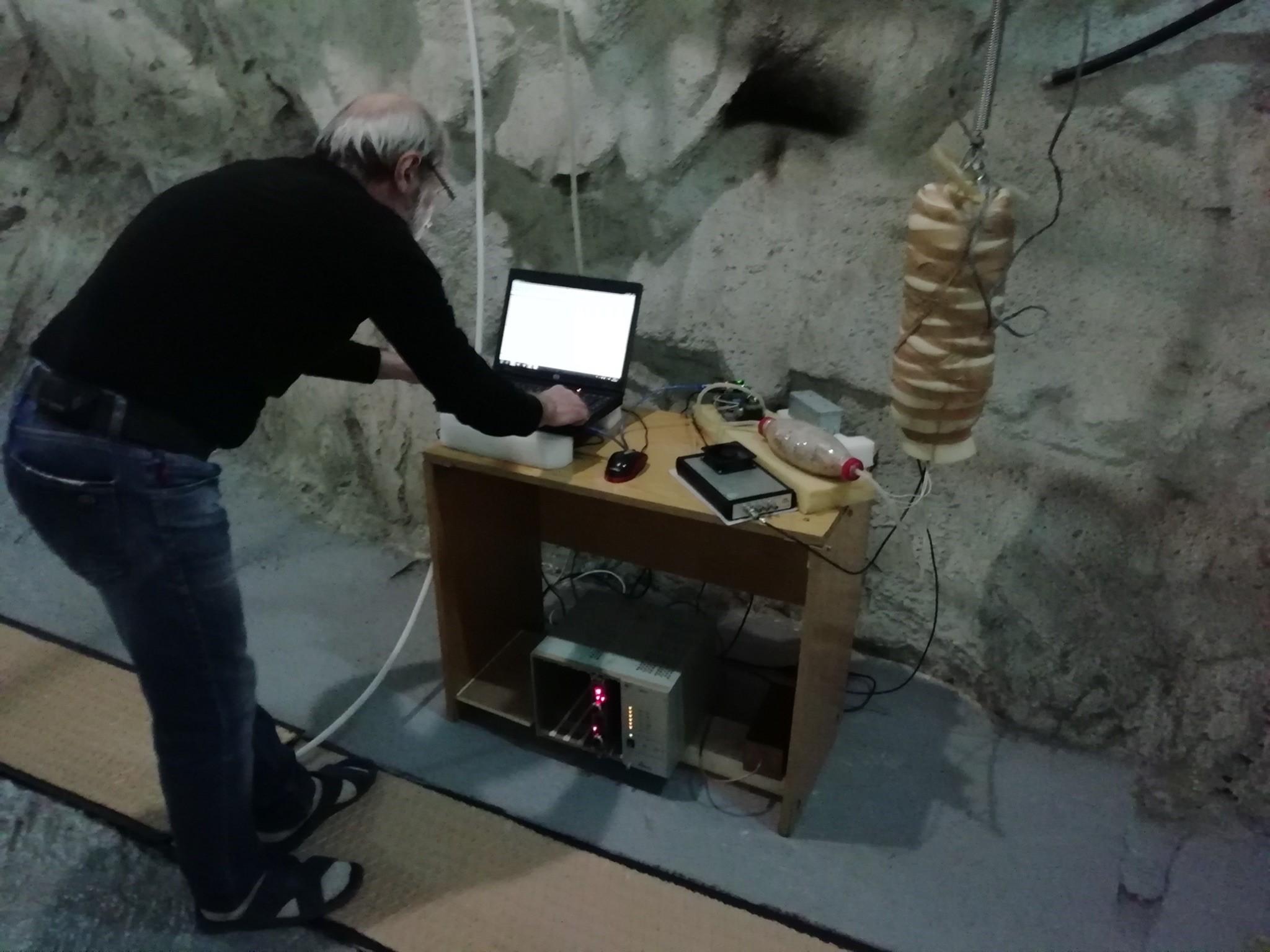 Сотрудник Баксанской нейтринной обсерватории ИЯИ РАН Юрий Михайлович Гаврилюк производит измерения радиационного фона в подземной низкофоновой лаборатории DULB-4900. Фото Михаила Зарубина