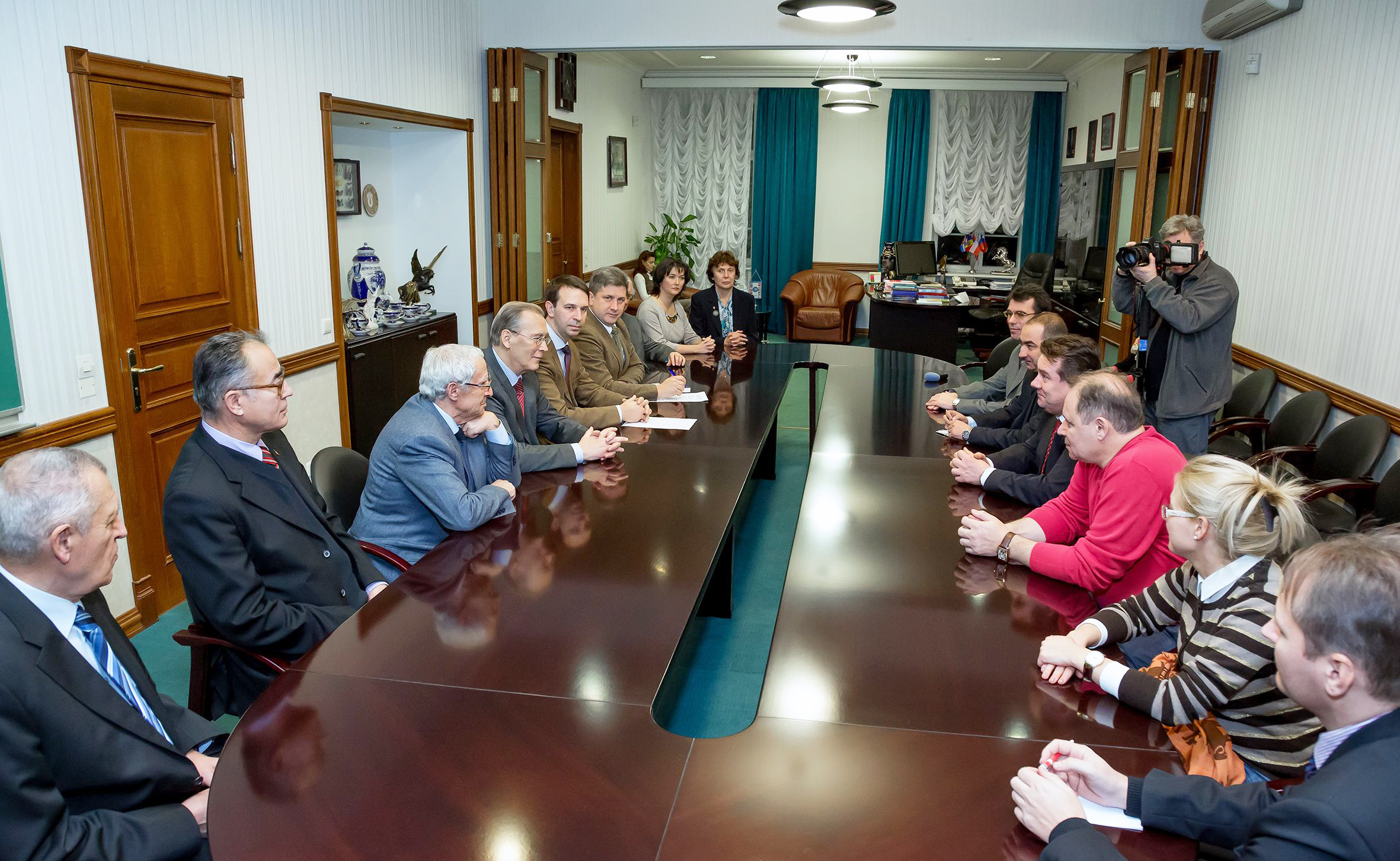 – Национальный праздник Румынии – наш общий праздник, — начал беседу директор ОИЯИ В. А. Матвеев. – Очень приятно, что участники только что прошедшей сессии Комитета полномочных представителей отметили, что дела в Институте идут в гору, в соответствии с Семилетним планом. Мы начали думать о следующей семилетке, чтобы без заминки перейти к ней, поэтому нам важно мнение стран-участниц – как они видят будущее Объединенного института. На сессии КПП с докладом о проекте Extreme Light Infrastructure – Nuclear Physics, современном проекте Евросоюза, реализуемом в том числе на территории Румынии, выступил академик АН Румынии Н. Замфир. Можно только порадоваться за наших румынских коллег, этот проект даст новый импульс нашим исследованиям. А чтобы реализовать в полном масштабе наш уникальный проект NICA, нужно думать и о привлечении физиков из стран, не входящих в ОИЯИ. Интерес к проекту уже проявляют Индия, Китай, страны Латинской Америки.
