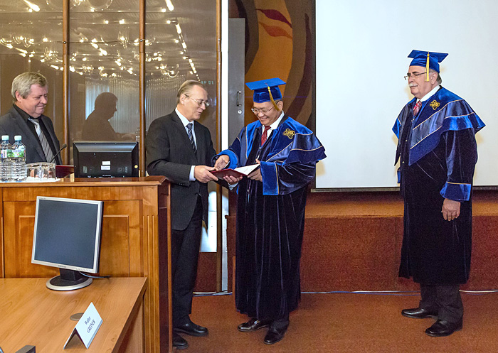 По традиции программа осенней сессии Ученого совета ОИЯИ включает в себя вручение дипломов лауреатам конкурса научных работ ОИЯИ и дипломов ученым, удостоенным звания "Почетный доктор ОИЯИ". На нынешней сессии вновь избранные почетные доктора, которыми стали С. Энхбат и Р. Майер, были впервые облачены в профессорские мантии. Профессор С. Энхбат сразу после этой церемонии ответил на вопросы нашего корреспондента.