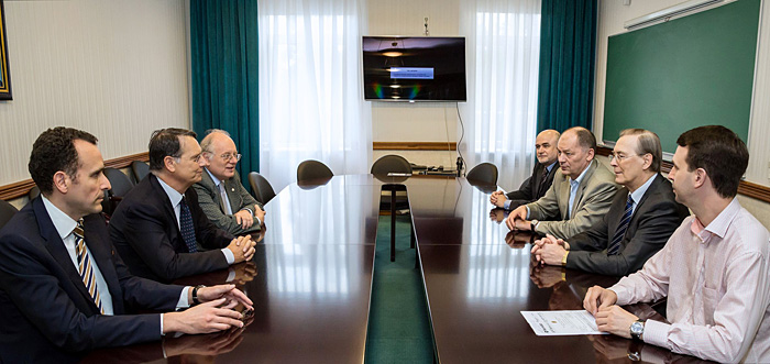 Representatives of the Italian company ASG Superconductors headed by Chief Executive Officer of this company Vincenzo Giori visited the Joint Institute for Nuclear Research. Science Attaché of the Italian Embassy in RF Professor Pietro Fré introduced the guests to JINR Director V.A. Matveev.