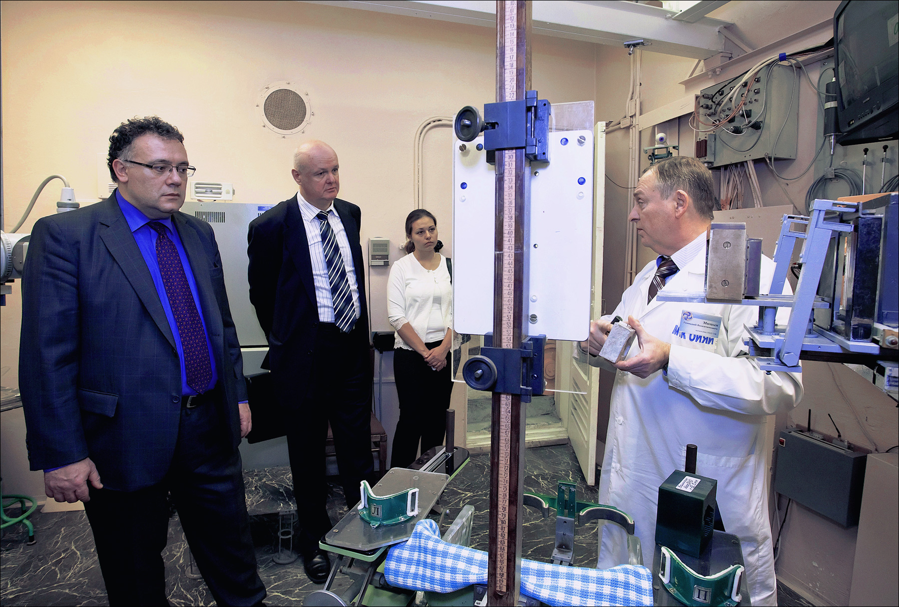 During the visit the delegation visited the Veksler and Baldin Laboratory of High Energy Physics, where the guests were acquainted with the Nuclotron facility and the future project NICA/MPD. The guests visited the Flerov Laboratory of Nuclear Reactions and got acquainted with experiments on synthesis and chemistry of super-heavy elements, and also the guests were shown the cyclotron complex IC-100 for production of track membranes. At the Dzhelepov Laboratory of Nuclear Problems the guests were acquainted with medical beam, innovative development in the areas of matrix detectors for computer and positional-emission tomographs of the next generation and with a joint project together with Belgian company IBA – the cyclotron for proton therapy С235-V3.