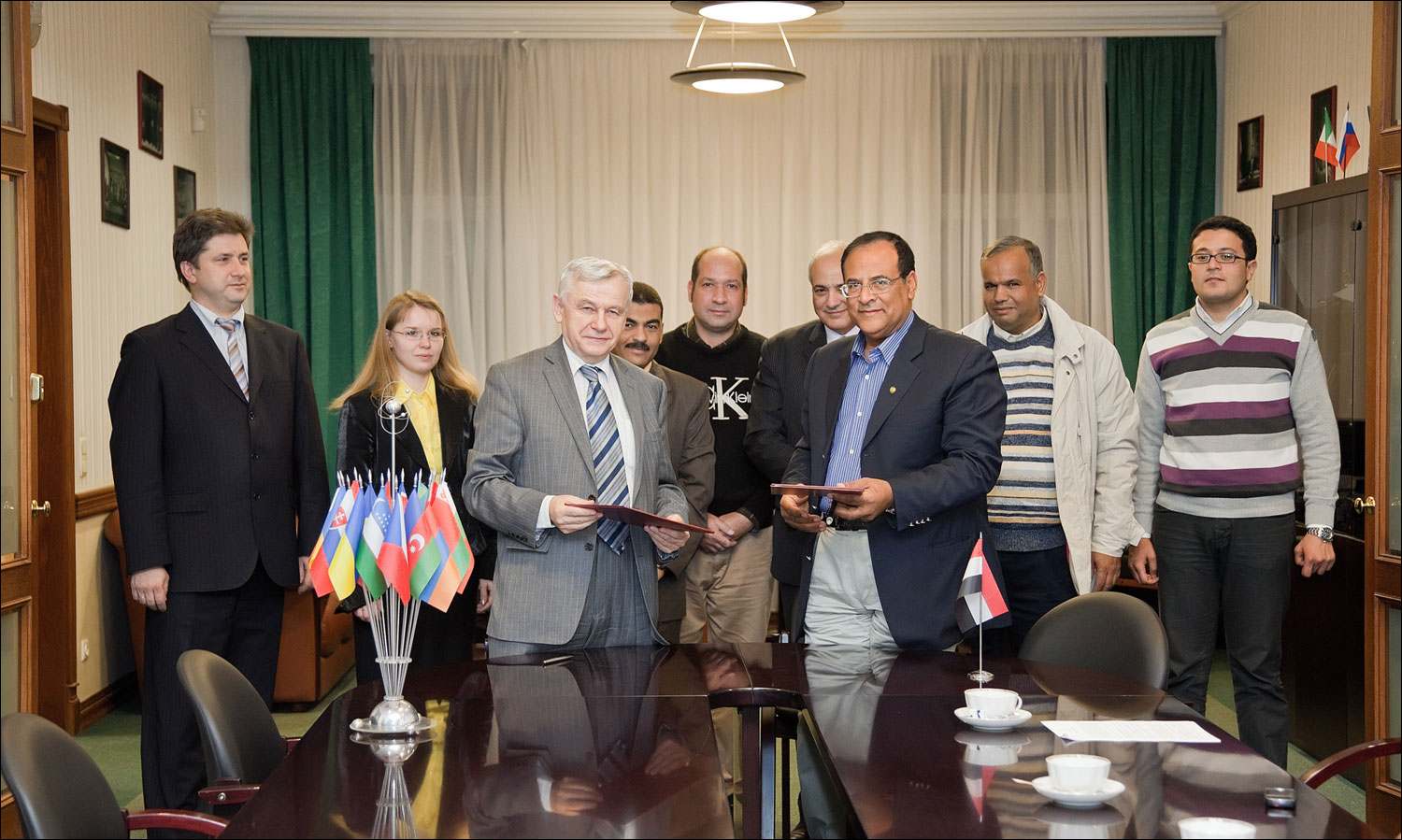 По результатам работы группы в лабораториях Института была подписана Памятная записка, в которой перечислены 18 предложений по совместным проектам АРЕ с Лабораторией ядерных реакций, Лабораторией информационных технологий, Лабораторией радиационной биологии и Лабораторией нейтронной физики, в том числе 1 совместный проект ЛЯР и ЛНФ. Также ожидается, что в течение недели будут сформулированы предложения по совместным проектам с Лабораторией физики высоких энергий, Лабораторией теоретической физики и Лабораторией ядерных проблем. Все проекты будут доработаны экспертами с обеих сторон и рассмотрены на 1-ом Совместном координационном комитете, который состоится в Египте 29-30 ноября. В итоговой встрече дирекции ОИЯИ с делегацией АРЕ приняли также участие Проф. Магди Э. Фарес С., Советник по вопросам культуры при Посольстве Египта в Москве, и Мохамед И. Эльсергани, Президент Землячества студентов из Египта в РФ.