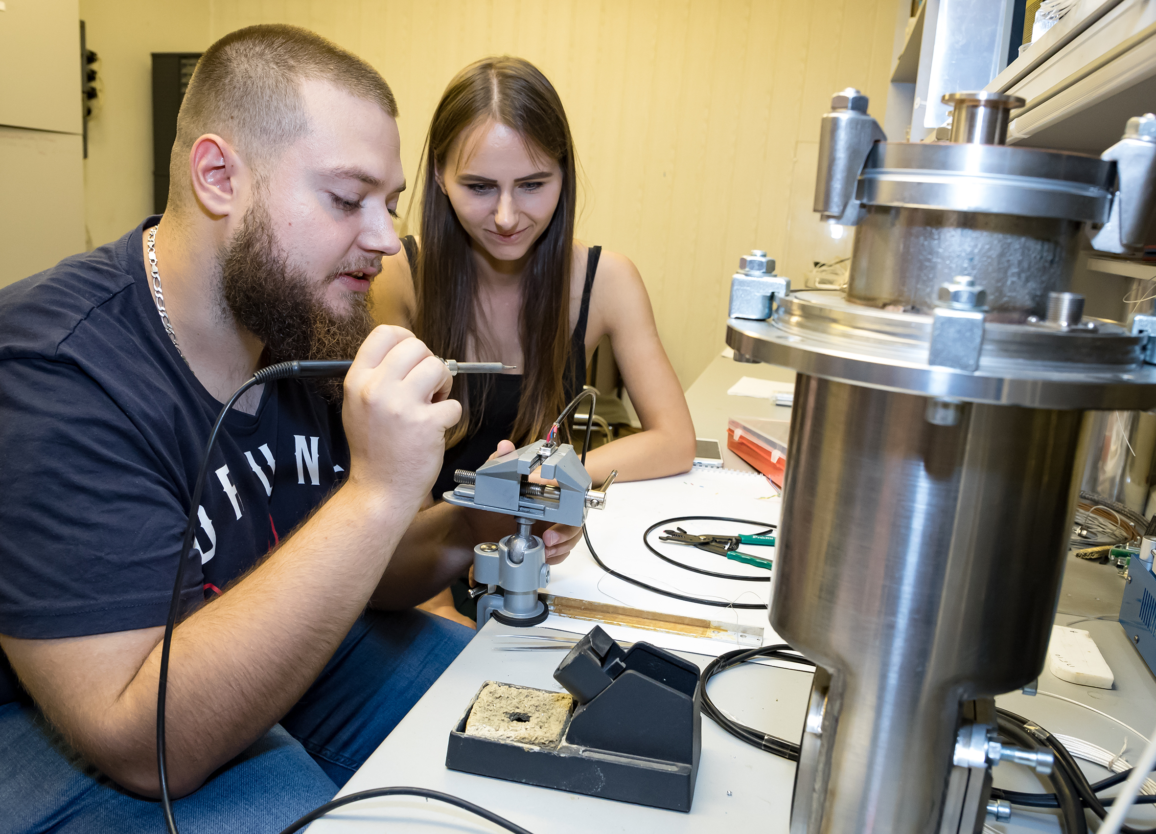 А еще я участвую в сотрудничестве с Варшавским университетом, где есть очень интересный детектор – оптическая время-проекционная камера. В эту камеру попадает радиоактивное ядро, которое в ней останавливается и распадается. Эти распады мы регистрируем с помощью очень чувствительных камер, просто делаем фотографии распадов. Это студентам тоже очень интересно, они изучают, как все работает, какие явления мы изучаем. Последние два-три года мы работаем на летних практиках с тестовыми камерами, поскольку эксперимент на самой камере бывает раз в год, оборудование перемещается из Варшавы в Дубну и обратно. А у меня есть тестовые стенды, на которых мы можем моделировать все, что происходит в камере: мы работаем с газовыми системами, анализируем состав. Вообще, у меня есть много хорошего оборудования, на котором студенты имеют возможность учиться работать, например, как собрать газовую систему, причем, они все делают своими руками, я только проверяю работу в конце. Бывают проблемы у девушек, у которых нет сил открыть туго закрытый газовый баллон или плотно его закрутить, перебирать оборудование, тестировать его и так далее. Но они сами должны почувствовать, чтобы все было сделано надежно, грамотно. Я хочу в конце практики выпустить пусть какого-то небольшого уровня, но экспертов.