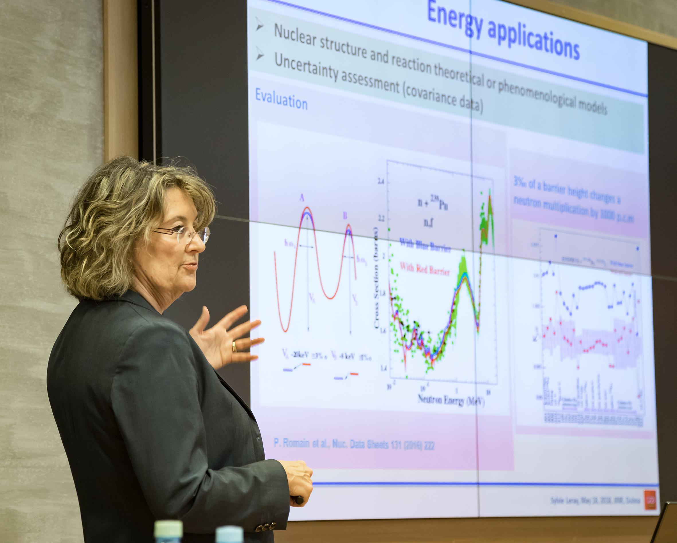 В ЛЯР состоялся общеинститутский семинар Сильвии Лёрэ на тему «Практическое применение и социальные выгоды ядерной физики». Как известно, Европейский Комитет по сотрудничеству в области ядерной физики (NuPECC) опубликовал в прошлом году свой Долгосрочный план 2017 (NuPECC Long Range Plan 2017), в котором был дан обзор различных областей применения и социальных выгод, которые предоставляют фундаментальные исследования в области ядерной физики в Европе. В своем докладе Сильвия Лёрэ представила области применения ядерной физики с акцентом на последние достижения, в частности, были охвачены такие сферы как ядерная энергетика, здравоохранение, безопасность, космос, окружающая среда и материаловедение. Семинар вызвал наибольший интерес у представителей ЛЯР, ЛНФ и ЛРБ, позволив сравнить уровень и задачи исследований, проводимые в ОИЯИ, с работами европейских коллег. В свою очередь, Сильвия Лёрэ, уже посещавшая ранее ОИЯИ в июне 2010 года, отметила значительный прогресс Института, как по уровню научных исследований и экспериментальных установок, так и по уровню инфраструктуры Объединенного института в целом.