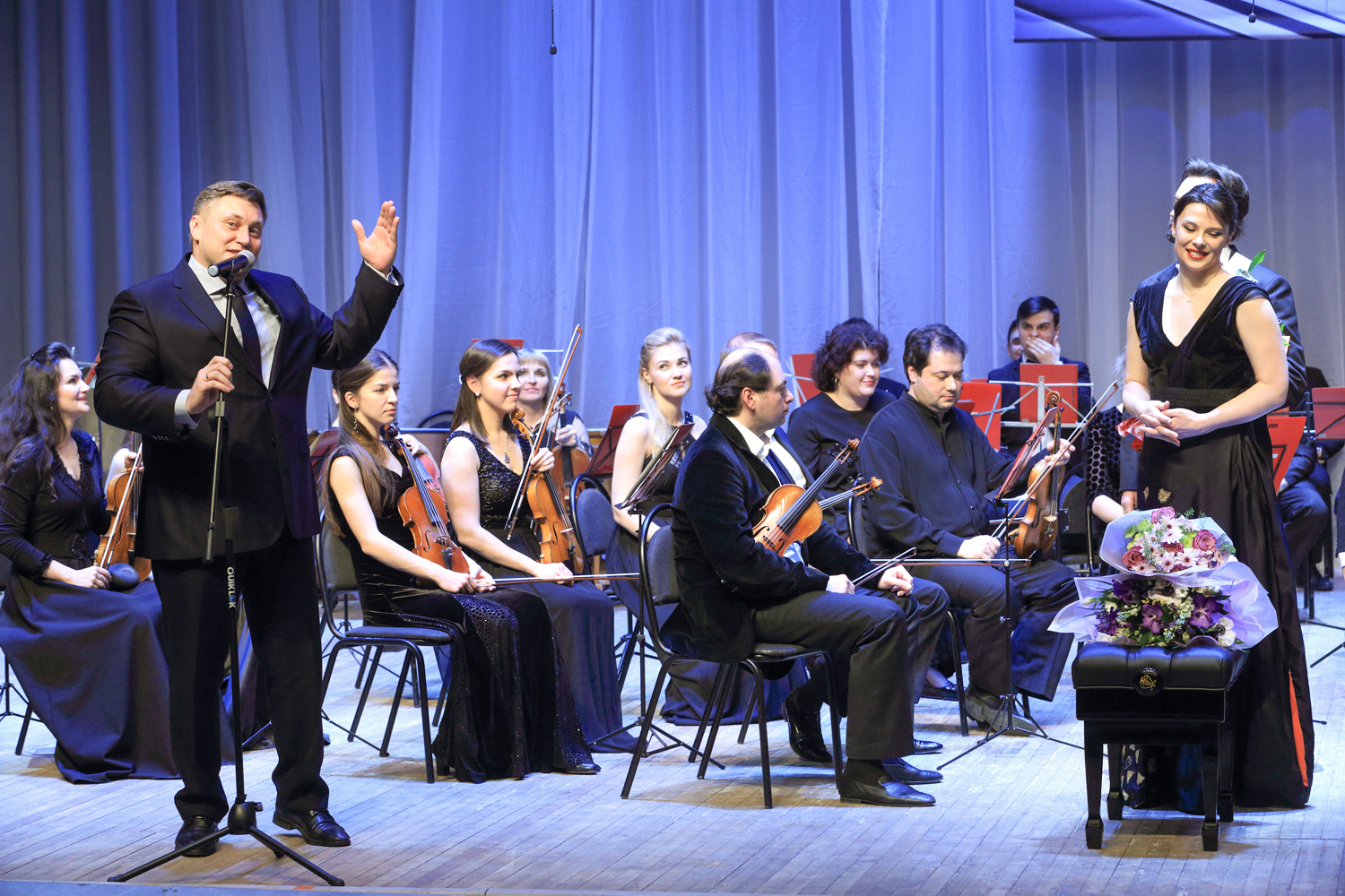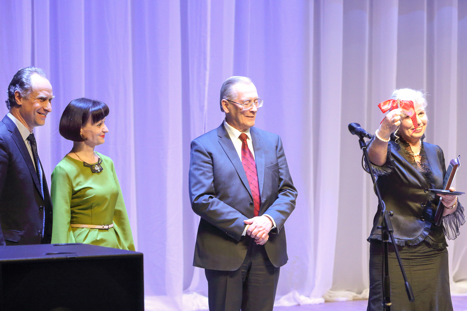 SIM Office Director Andrey Tamonov and Director of the Cultural Centre “Mir” Tatiana V. Romanenkova were invited to the stage for the festive ceremony of passing the key.