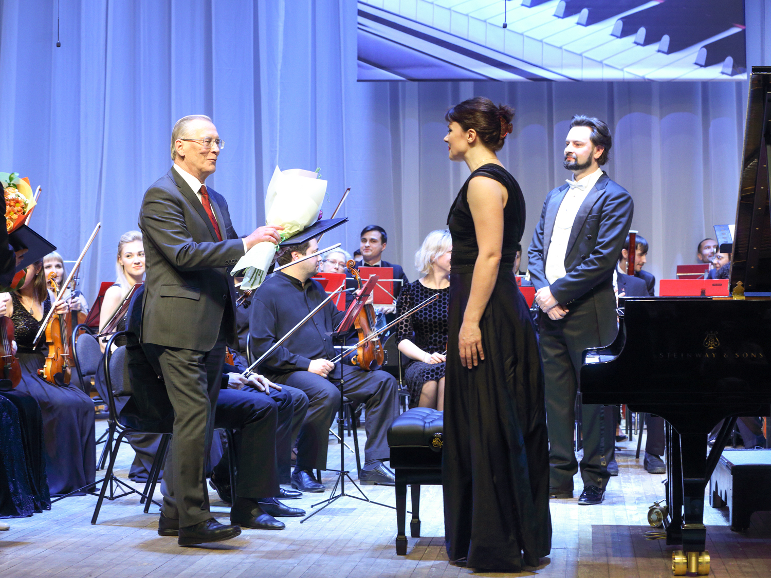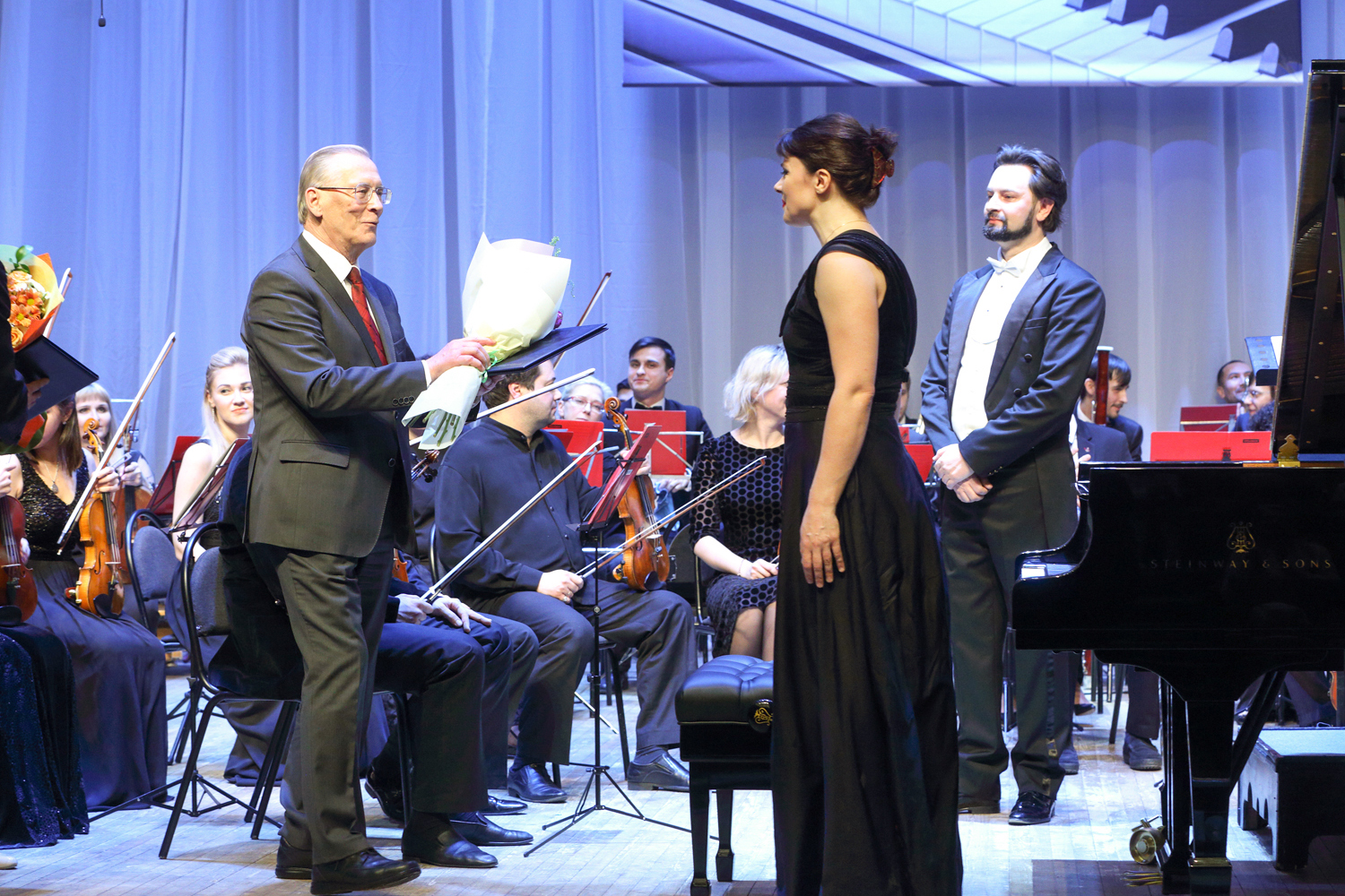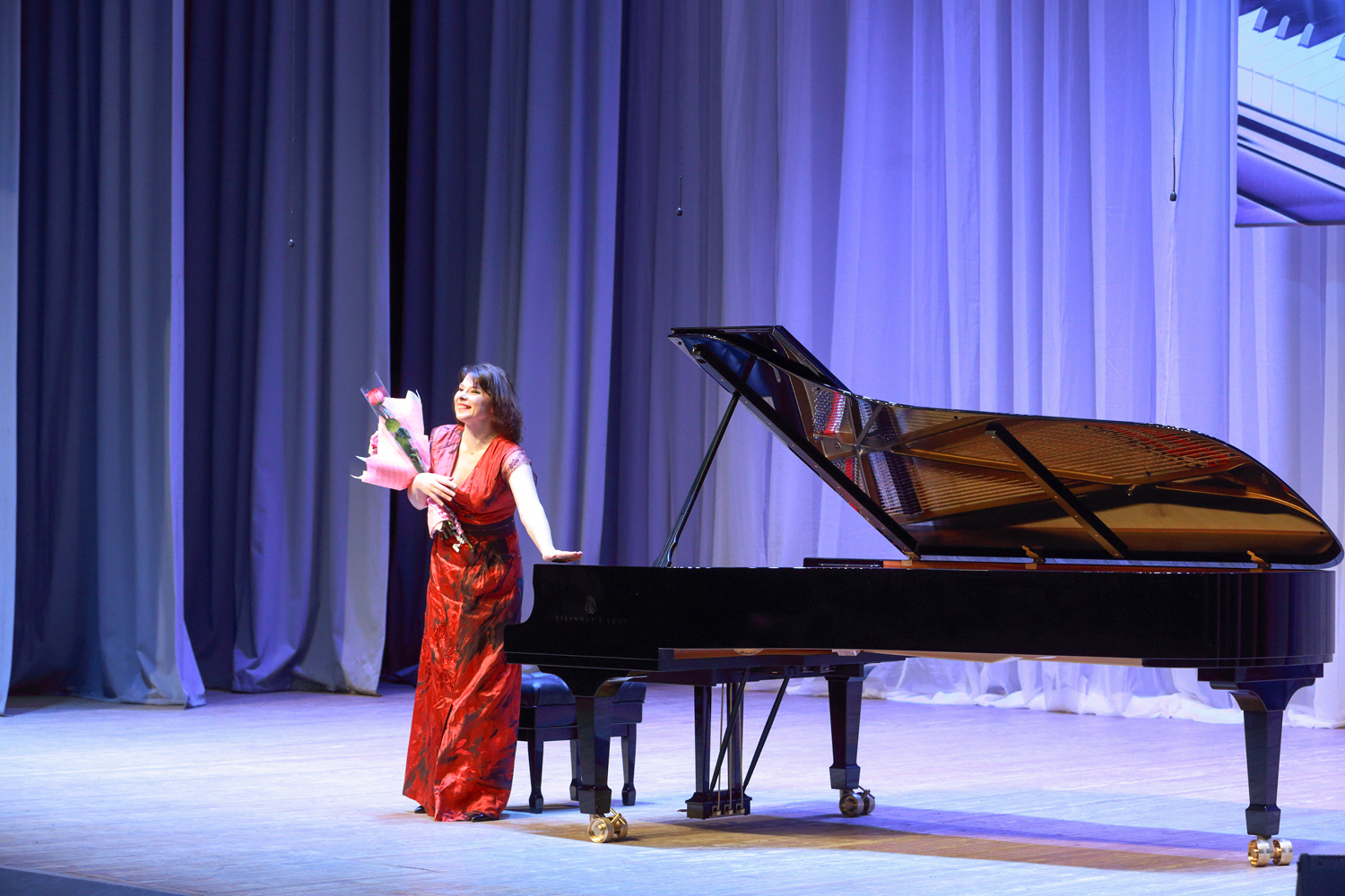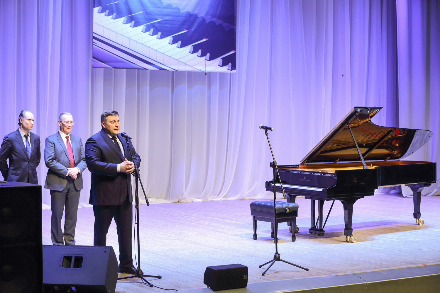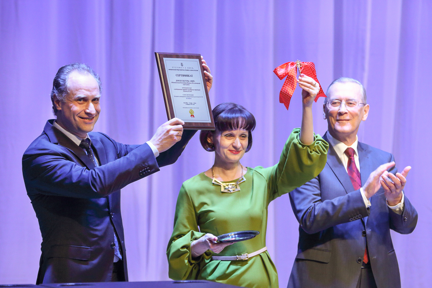 “Today, such notions as “Steinway”, “Faberge”, and “Stradivari” have become synonyms. There is a list of 100 timeless composers who created their musical works at the Steinway grand pianos, namely Wagner, Liszt, Rossini, Prokofiev, Rachmaninoff, Stravinsky… Your grand royal has been produced for more than three years: 200 masters assembled 12,000 pieces by hand, and now all many-year experience and traditions of the “Steinway and Sons” company awaited for the solemn moment of passing the key and the certificate of the producer,” I.A. Barinova concluded her speech.