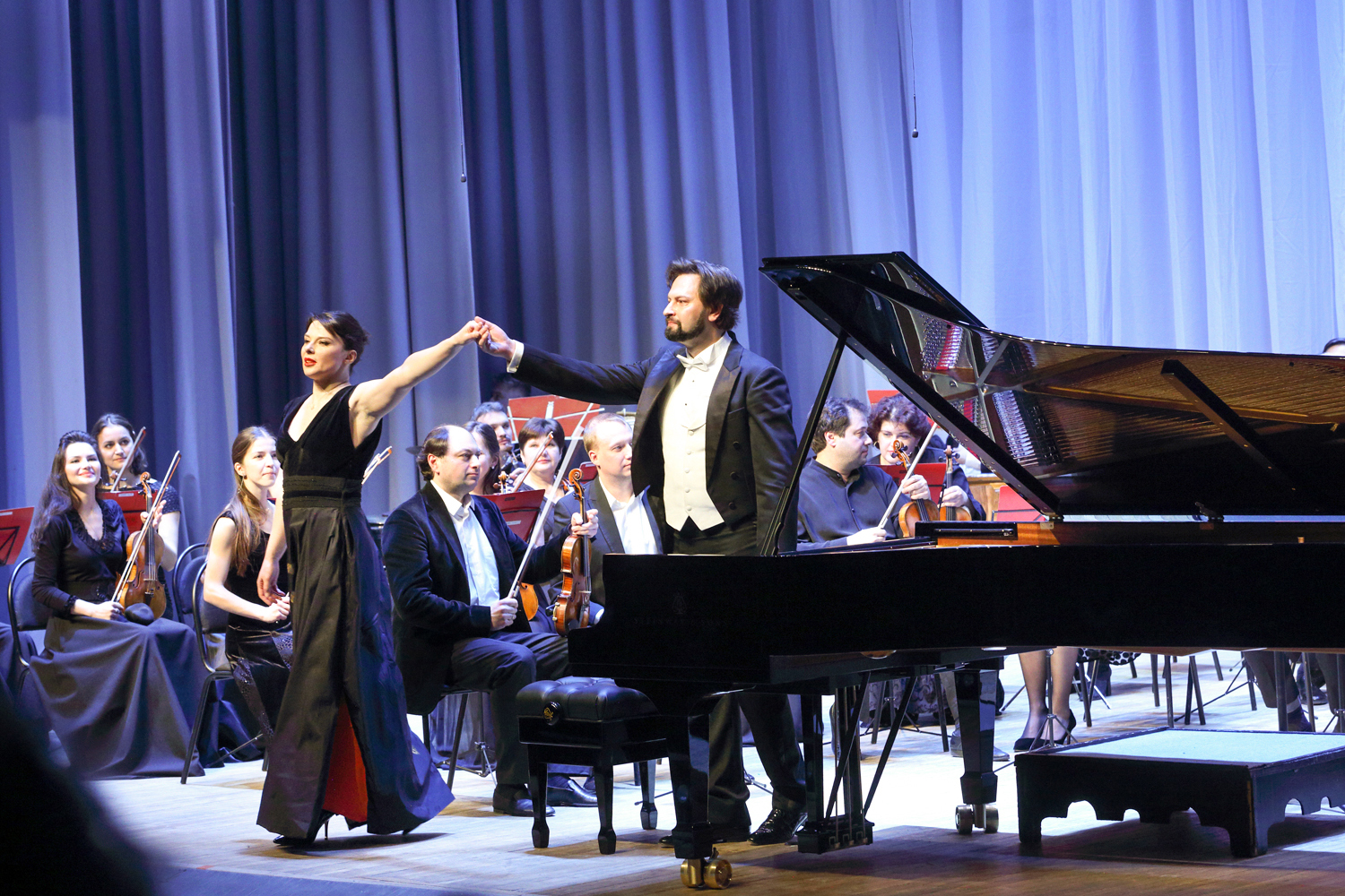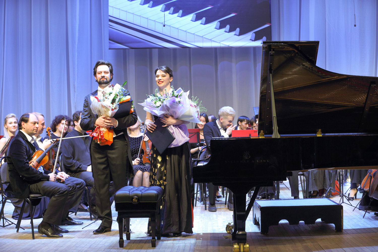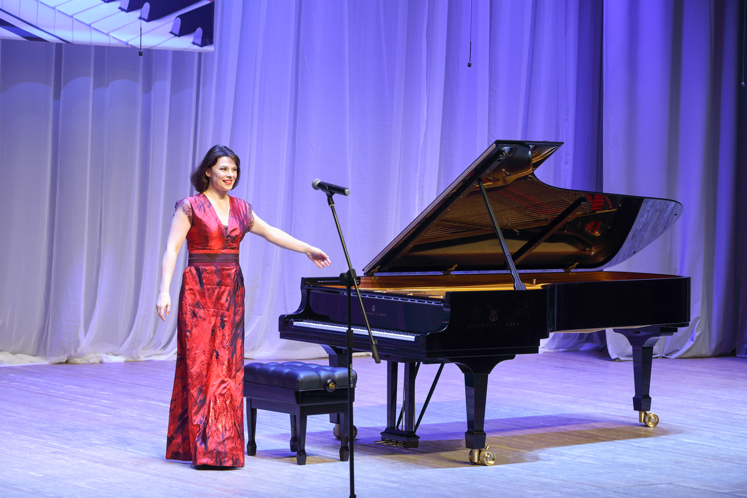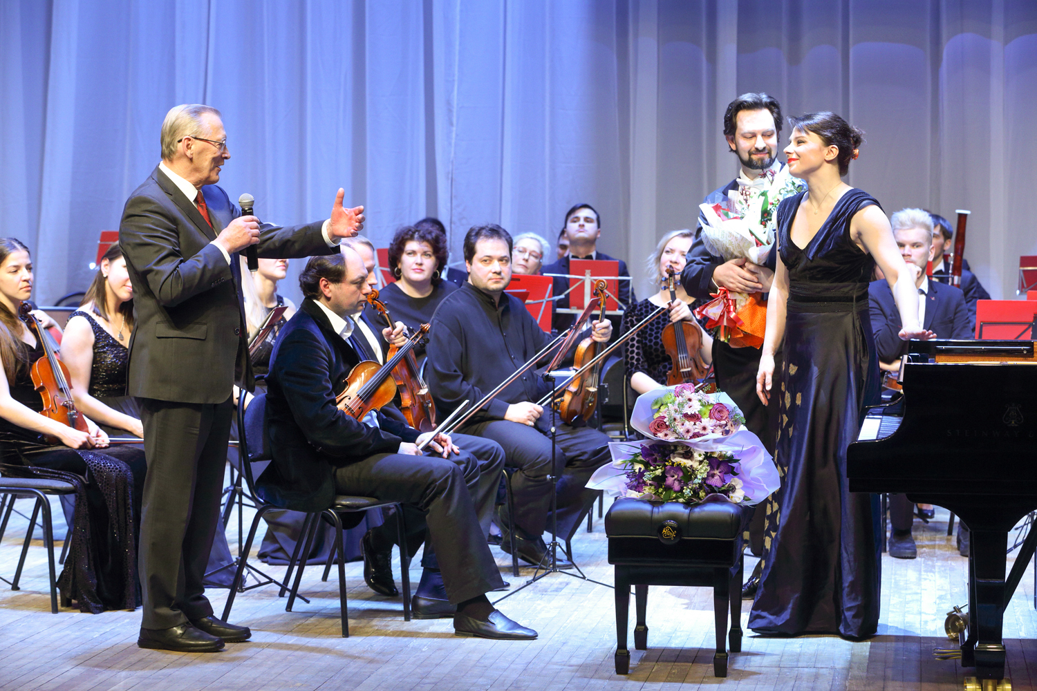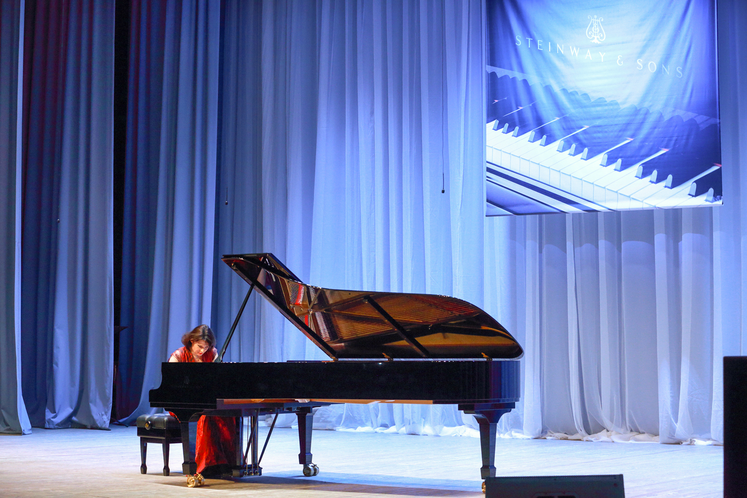 “Today, such notions as “Steinway”, “Faberge”, and “Stradivari” have become synonyms. There is a list of 100 timeless composers who created their musical works at the Steinway grand pianos, namely Wagner, Liszt, Rossini, Prokofiev, Rachmaninoff, Stravinsky… Your grand royal has been produced for more than three years: 200 masters assembled 12,000 pieces by hand, and now all many-year experience and traditions of the “Steinway and Sons” company awaited for the solemn moment of passing the key and the certificate of the producer,” I.A. Barinova concluded her speech.