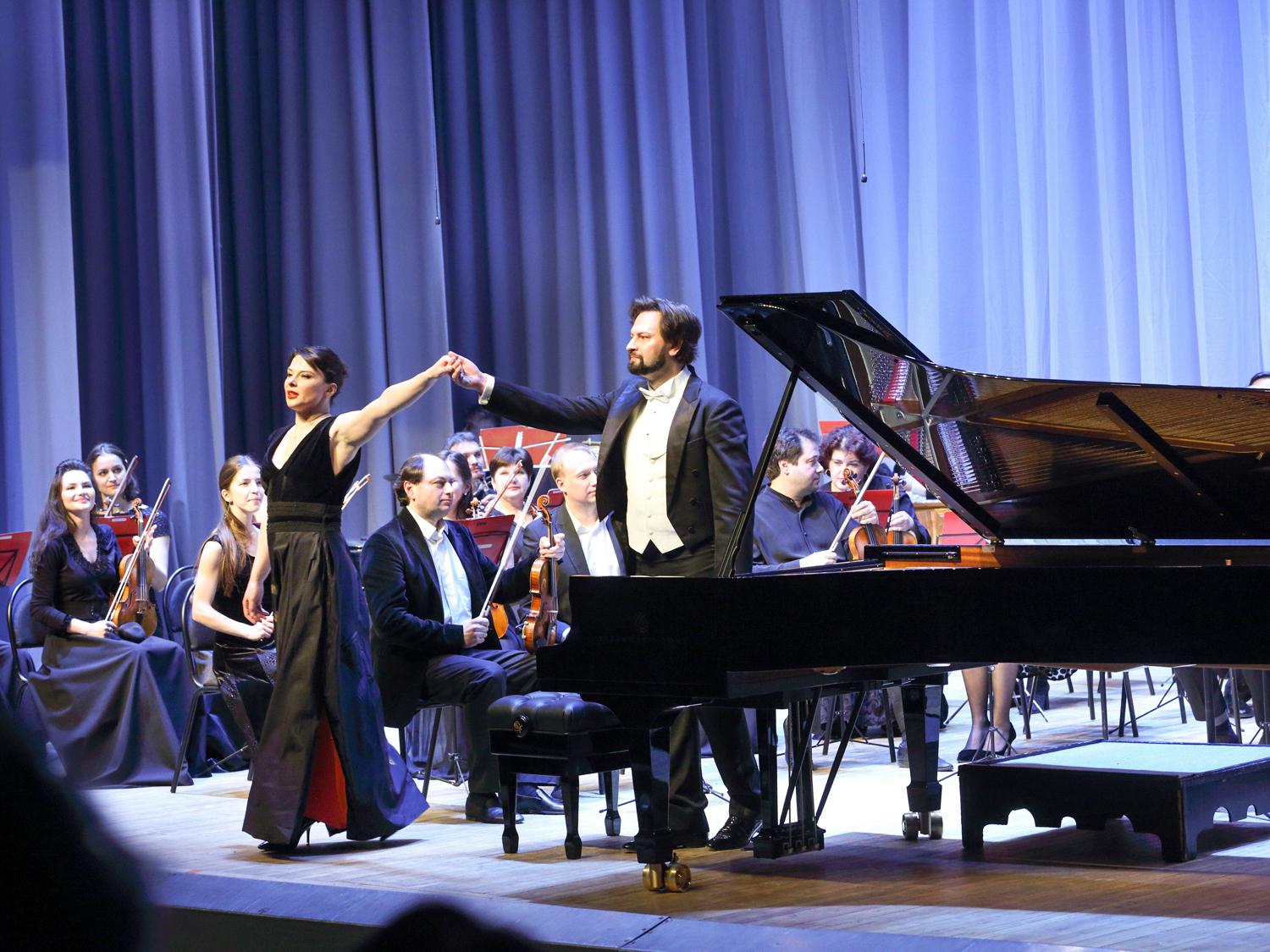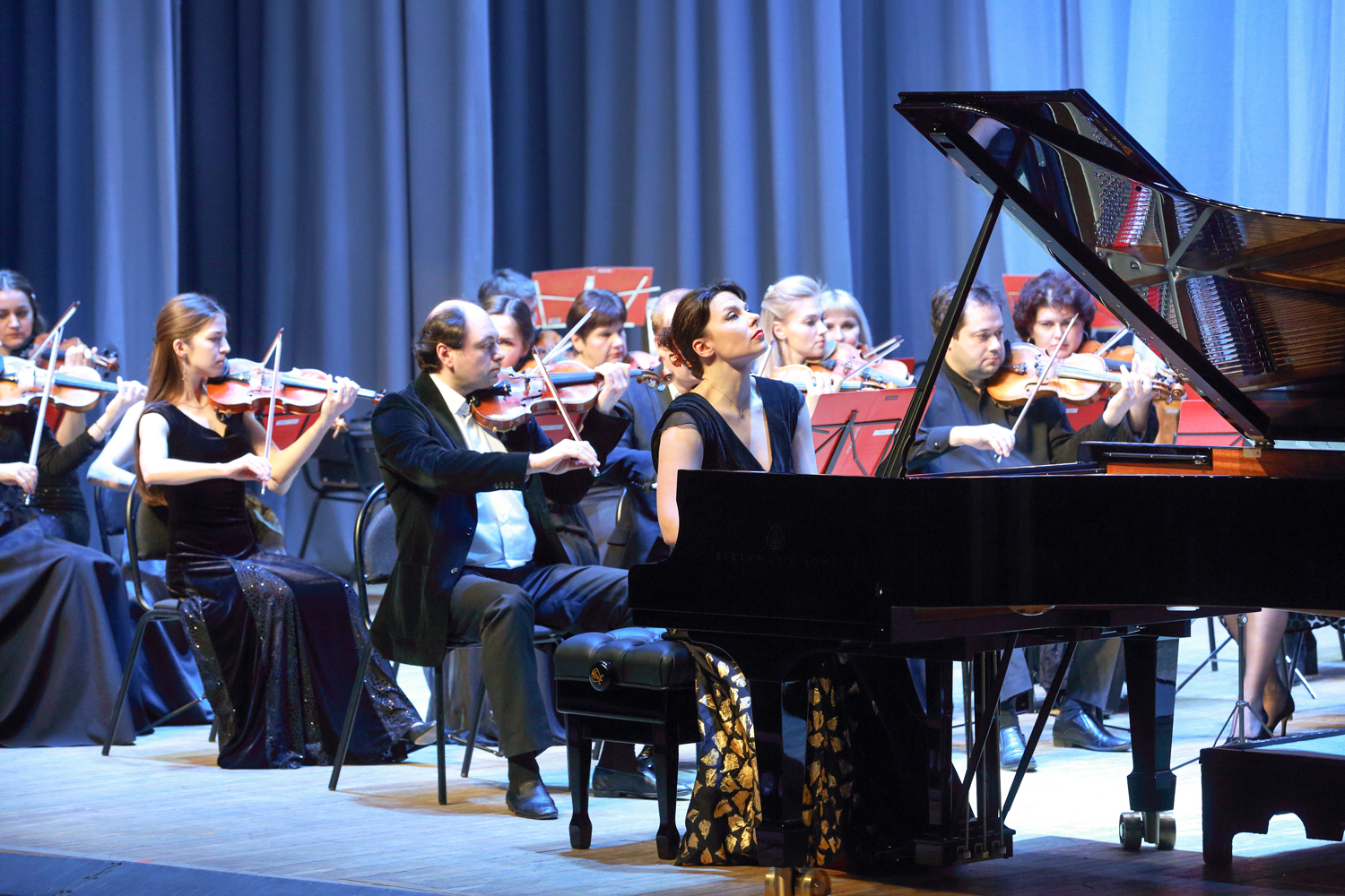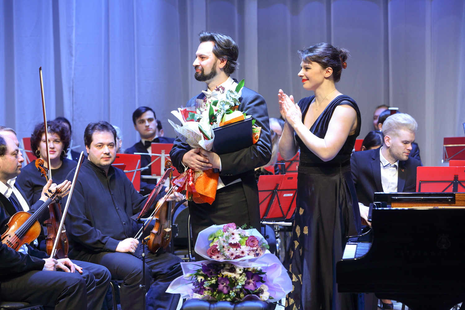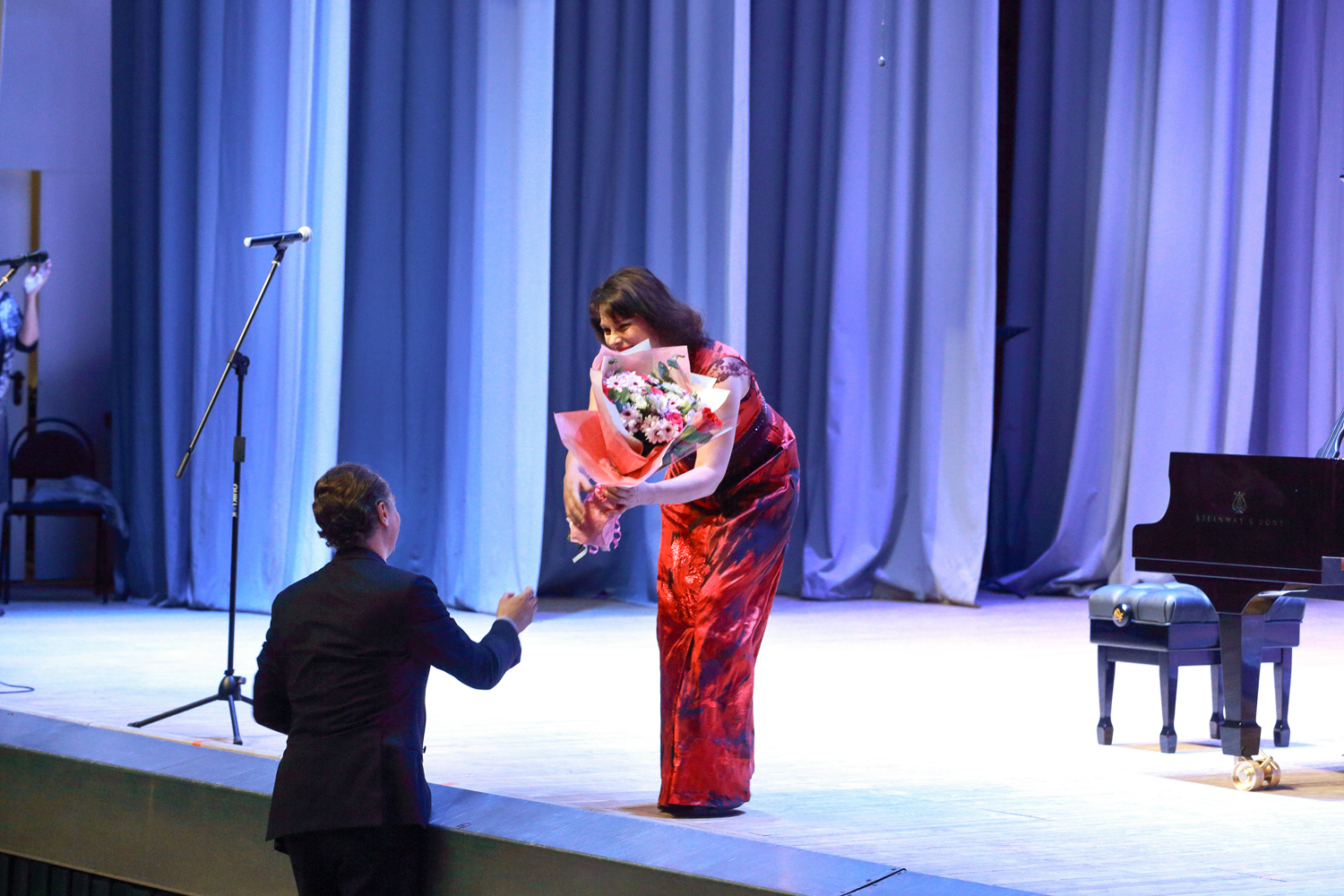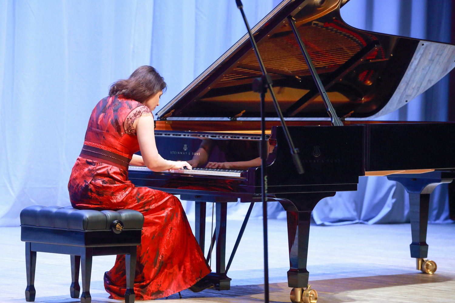 “Today, such notions as “Steinway”, “Faberge”, and “Stradivari” have become synonyms. There is a list of 100 timeless composers who created their musical works at the Steinway grand pianos, namely Wagner, Liszt, Rossini, Prokofiev, Rachmaninoff, Stravinsky… Your grand royal has been produced for more than three years: 200 masters assembled 12,000 pieces by hand, and now all many-year experience and traditions of the “Steinway and Sons” company awaited for the solemn moment of passing the key and the certificate of the producer,” I.A. Barinova concluded her speech.