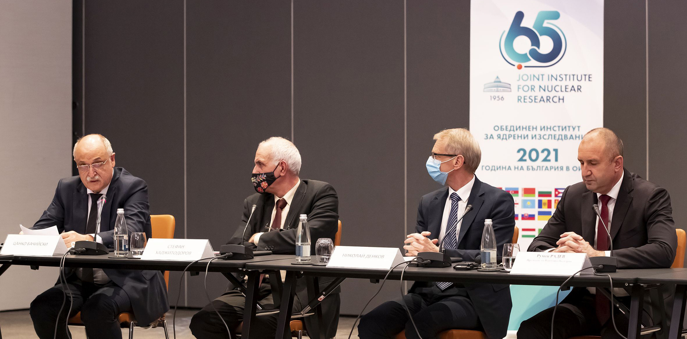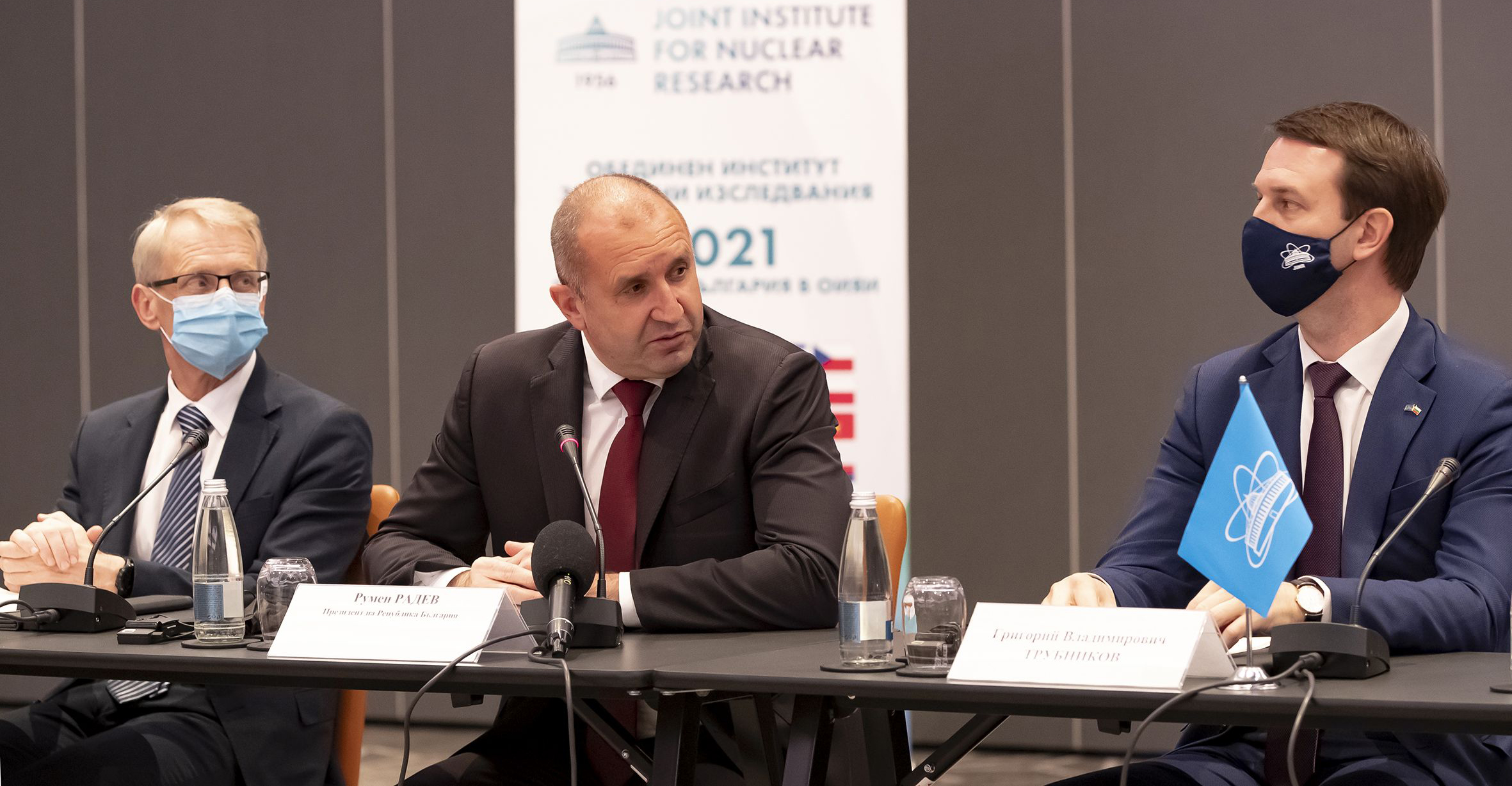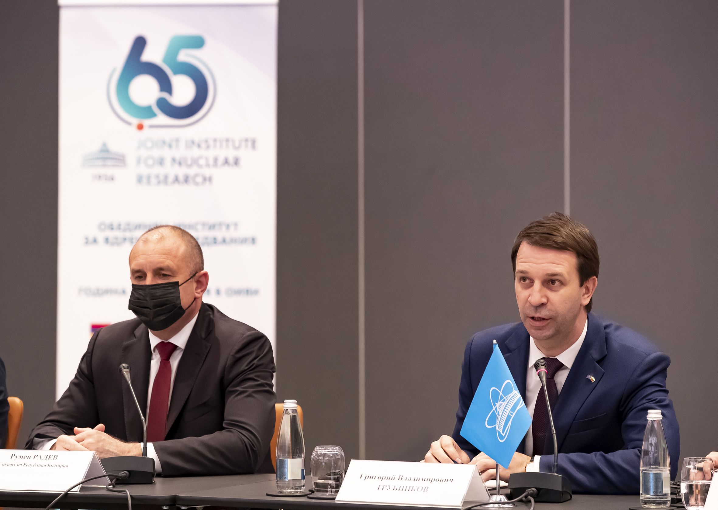 “The JINR-Bulgaria cooperation is based on rich traditions: at various times, outstanding Bulgarian scientists were heads of laboratories, large scientific groups in Dubna, and also organized science at the highest level in their countries. For 65 years of its work, the Institute has trained several thousands of highly qualified specialists for the Member States. Dozens of them have become heads of institutes in the Member States and large scientific groups, hundreds have headed scientific projects. Thousands of specialists have received high qualification during their work at the Joint Institute for Nuclear Research in Dubna and now, returning home they are developing scientific areas at the highest level in the Member States. JINR continues traditions and still focuses on extending innovation research and new scientific fields,” Academician Trubnikov highlighted closing his speech with an invitation to President of Bulgaria Rumen Radev to visit Dubna in the future.
