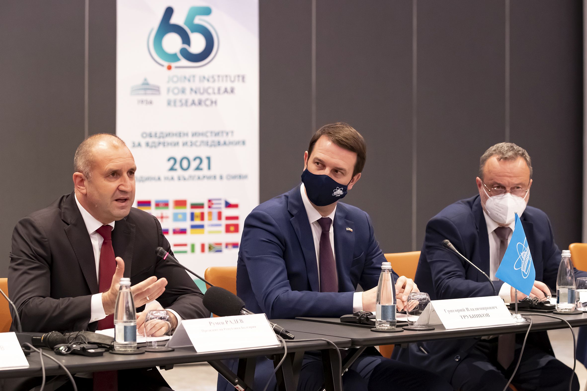 Many young scientists from not only Europe choose JINR to start their careers because of the significant scientific infrastructure, promising scientific programme, and deep contacts with leading scientific groups all over the world, including CERN. JINR provides an opportunity to expand their huge potential, bring results to the leading programmes worldwide. Bulgaria is grateful to JINR specialists for the efforts they make to show young people the way to science and preserve the scientific potential of our country,” Rumen Radev said.
