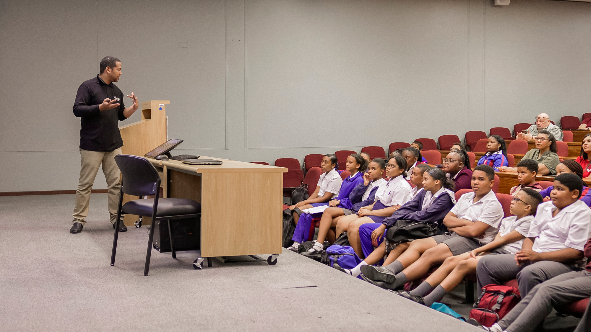 The day commenced with an interactive presentation by Caren Rossouw about Russian history, culture, religion, language features, and the multinational character of the Russian Federation, setting the stage for a multicultural learning experience. Following this cultural immersion, the students explored different scientific topics via a series of lectures: “History of the Universe”, “Colliders of the 21st Century”, “Atoms, Nuclei and Isotopes”.