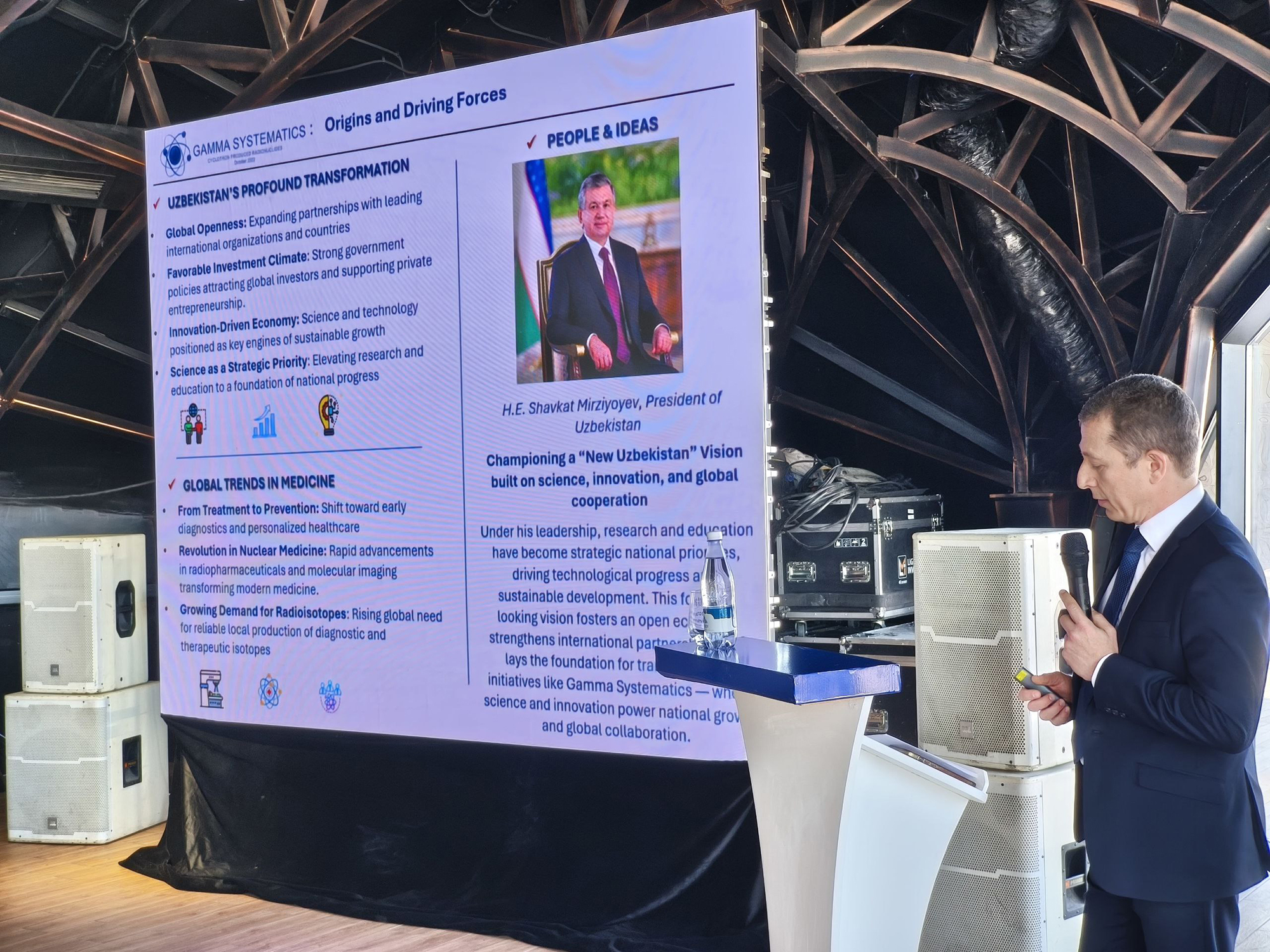 В рамках 11-й Международной конференции по ядерной энергетике и технологиям в горном курорте Амирсай Ташкентской области прошла презентация проекта по созданию в Узбекистане производства медицинских радиоизотопов – как для внутреннего пользования страны, так и для экспорта во многие страны мира. Реализовать это производство в Республике планируется к 2027 году. Михаил Иткис назвал производство изотопов для радиофармакологии одним из важнейших направлений прикладной ядерной физики. «Это направление развивается в течение многих лет, и очень важно, что в наших ядерных центрах: в Узбекистане, России, Казахстане – этому придается большое значение. Сегодня мы слушали доклад о том, что в ИЯФ АН РУз будет создан новый ускоритель для этих целей», — сказал Михаил Иткис.