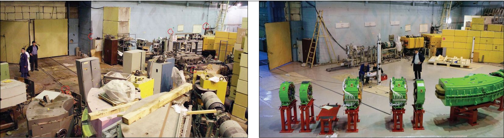Фото 1. Размещение оборудования в зале У-400М в 2010-м (слева) и в 2014-м (справа) годах