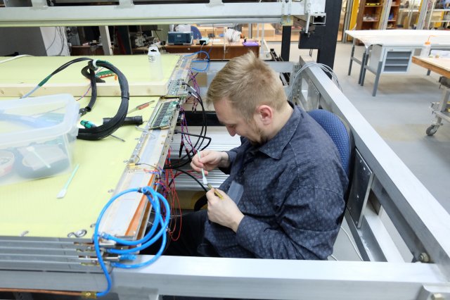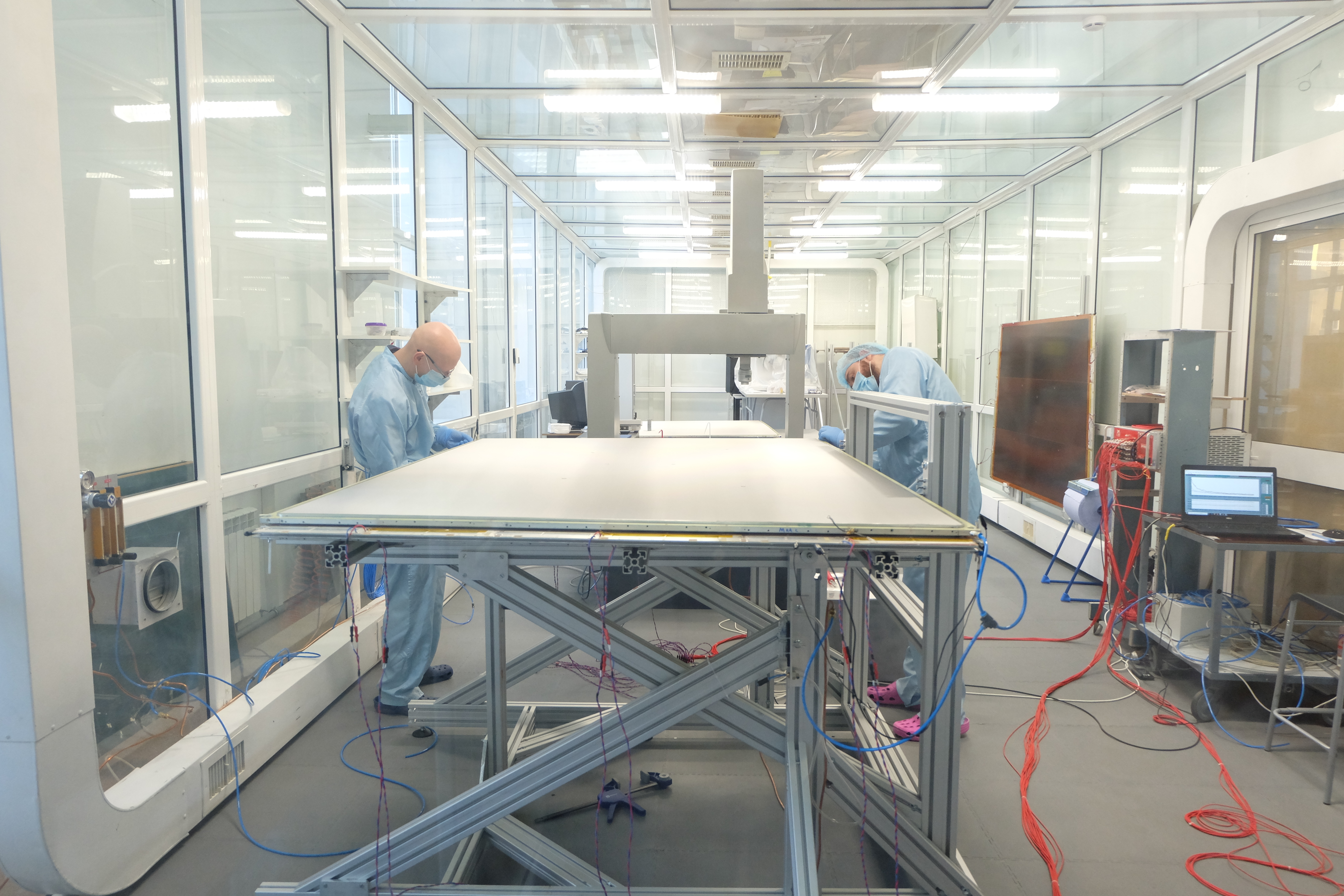 Первая панель камеры Micromegas была успешно собрана для модернизации мюонного спектрометра установки ATLAS еще в мае 2017 г. Тогда для выполнения такого рода работ в ЛЯП был создан участок, состоящий из двух чистых производственных помещений, комнаты газового теста и тестовых стендов. Было смонтировано и откалибровано производственное оборудование. С тех пор ОИЯИ участвует в серийном производстве камер Micromegas для создания Новых Малых Колес (НМК) мюонной системы детектора ATLAS в рамках подготовки к работе БАК на высокой светимости.