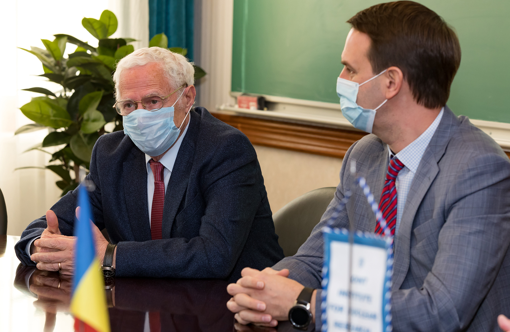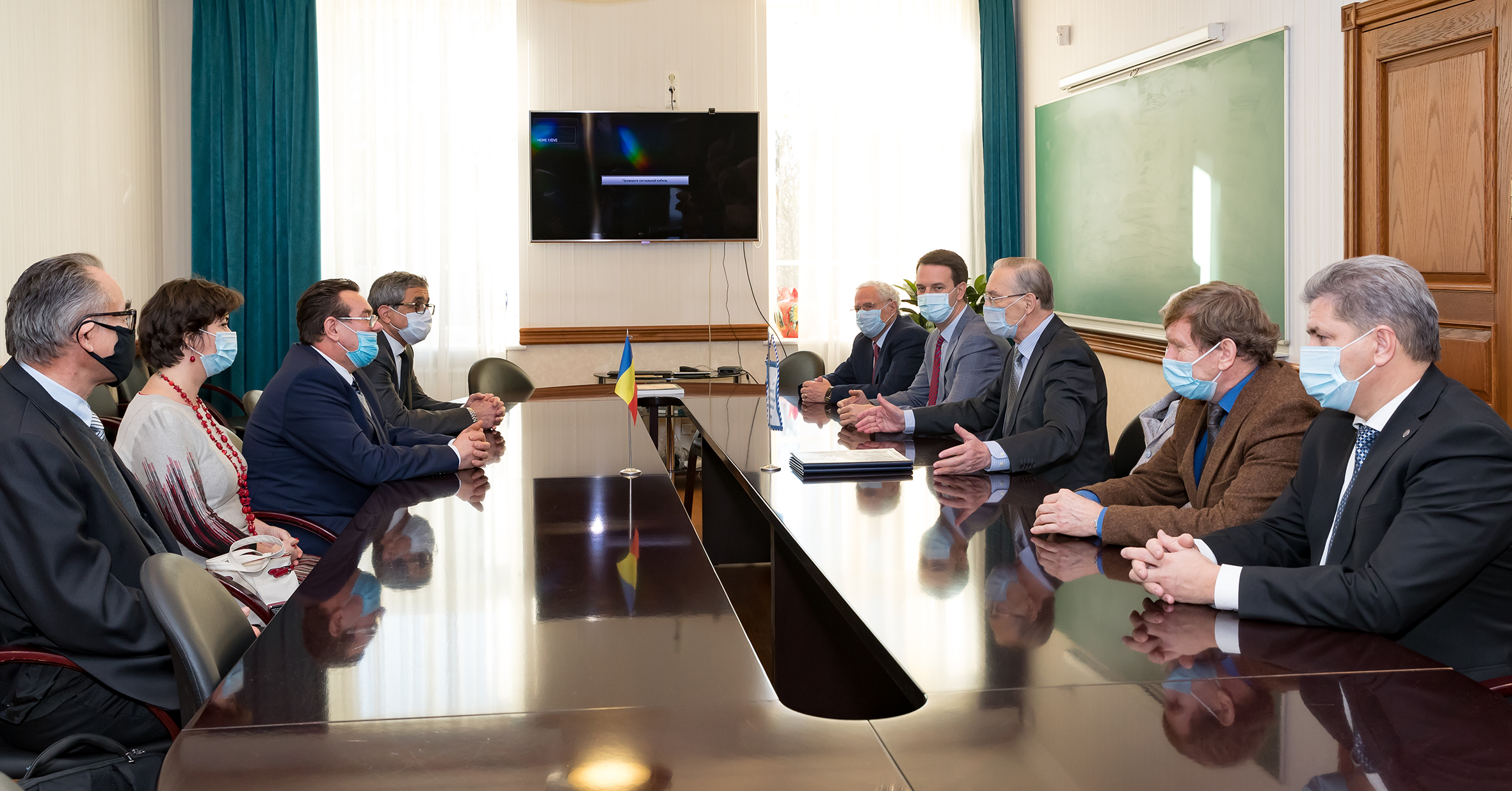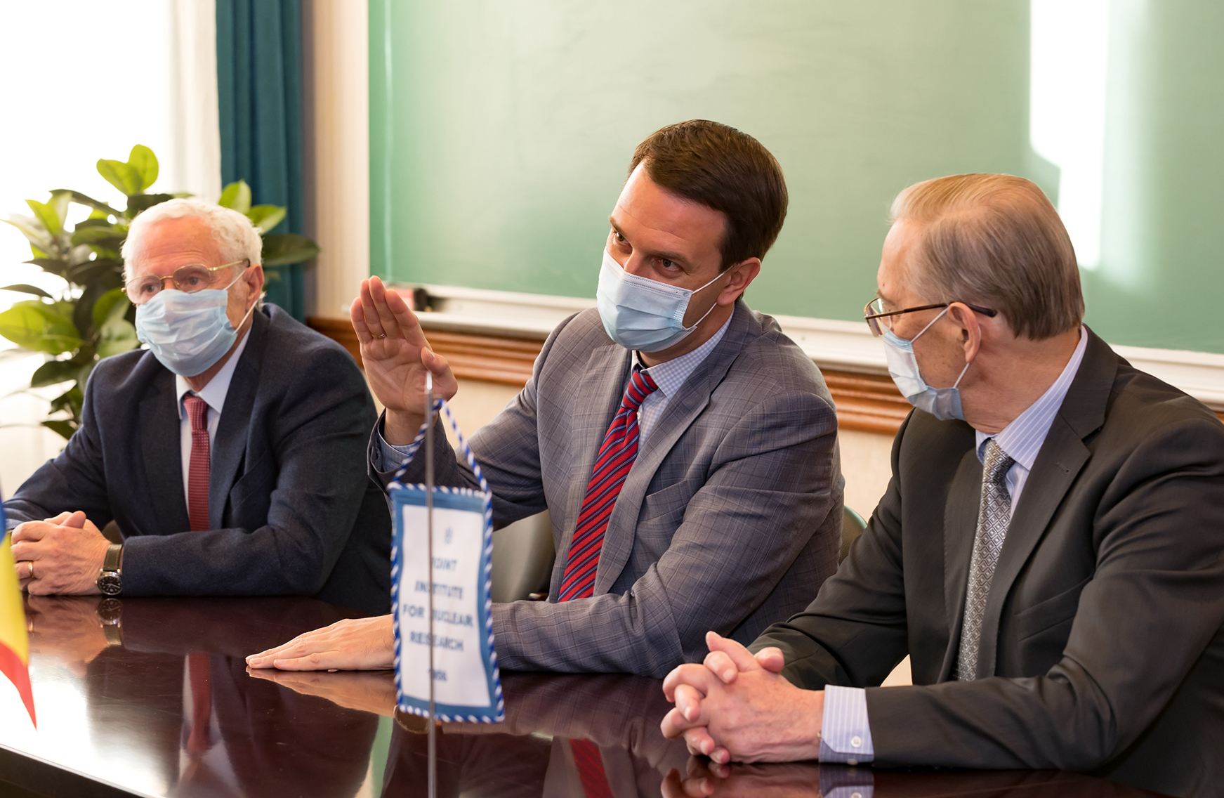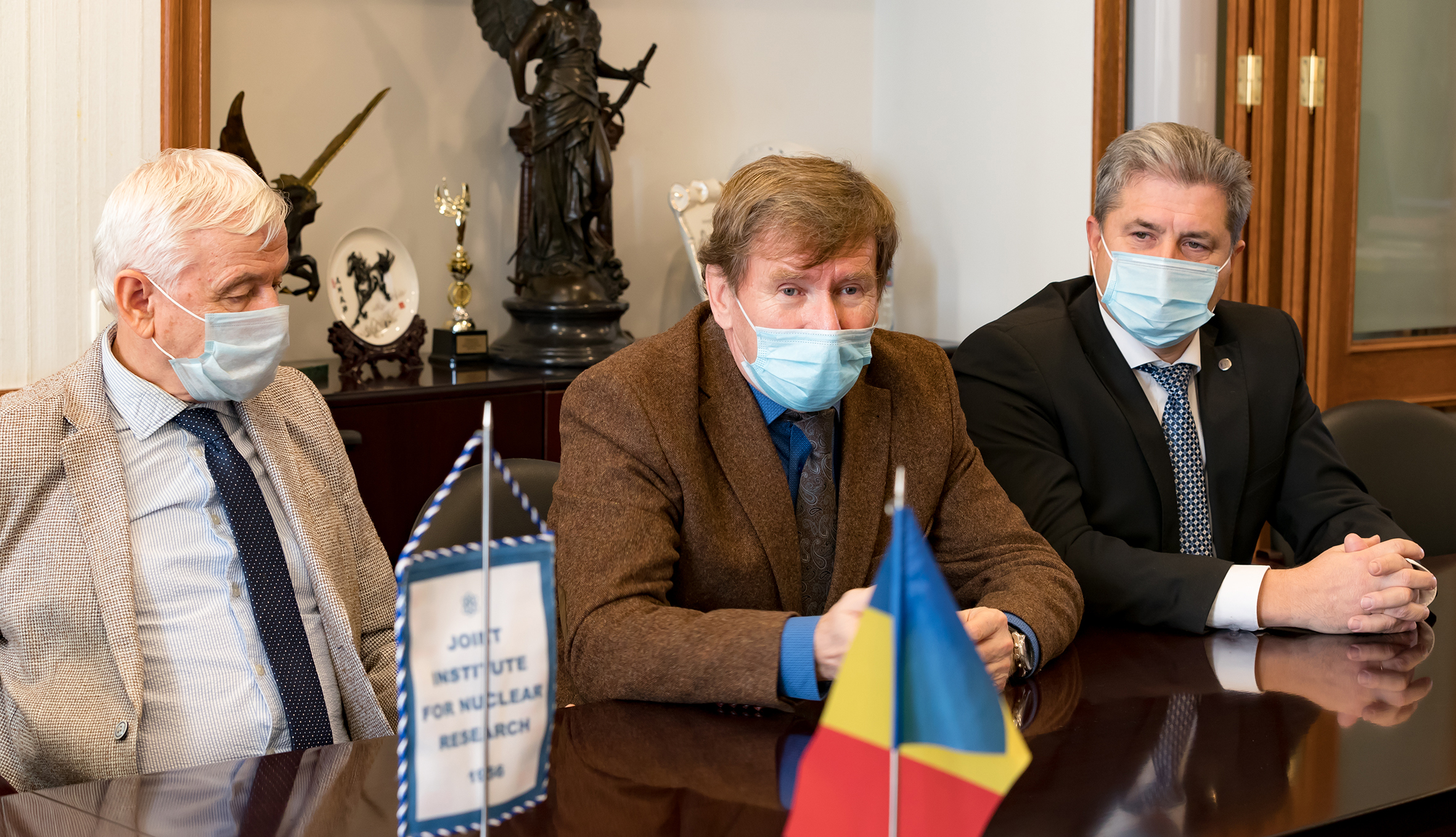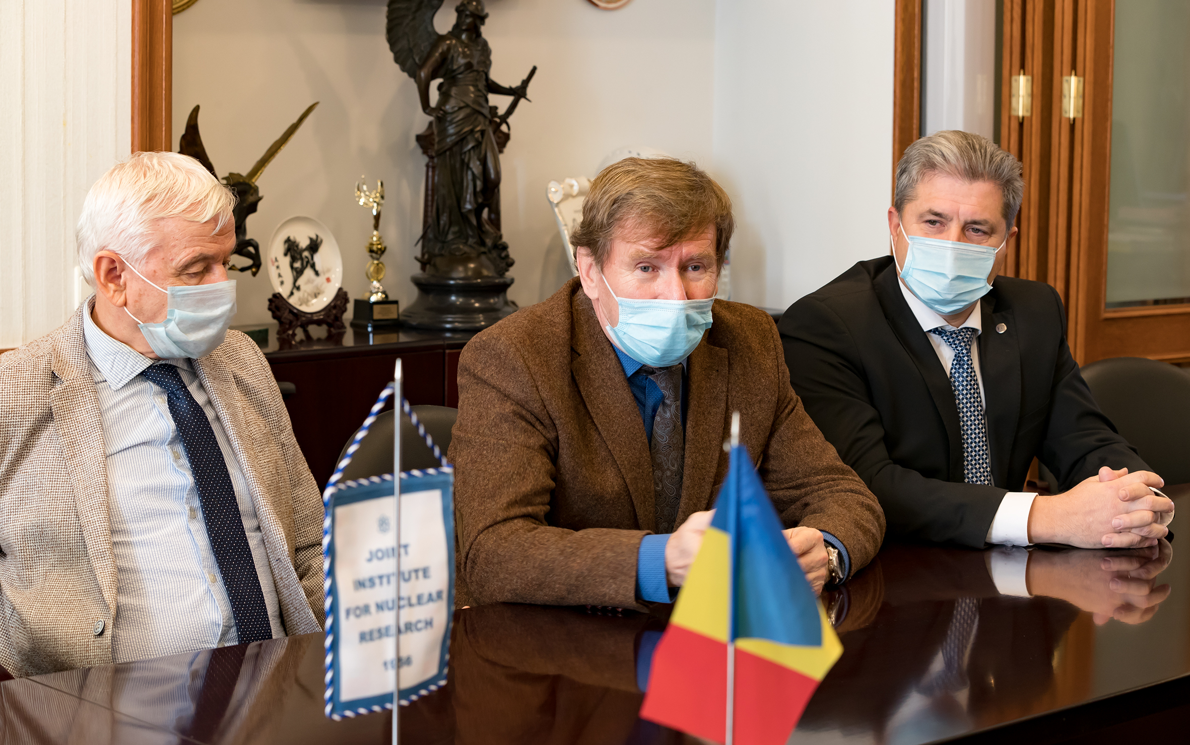 17 ноября 2020 года Чрезвычайный и полномочный Посол Румынии в Российской Федерации г-н Василе Соаре посетил Объединенный институт ядерных исследований по случаю завершения своей дипломатической миссии. В Дубну г-н Посол прибыл в сопровождении Советника по образованию и науке г-на Лауренциу Константиниу. В Объединенном институте в ходе визита высокую делегацию сопровождал профессор Георге Адам, в недавнем прошлом руководитель национальной группы Румынии в ОИЯИ.