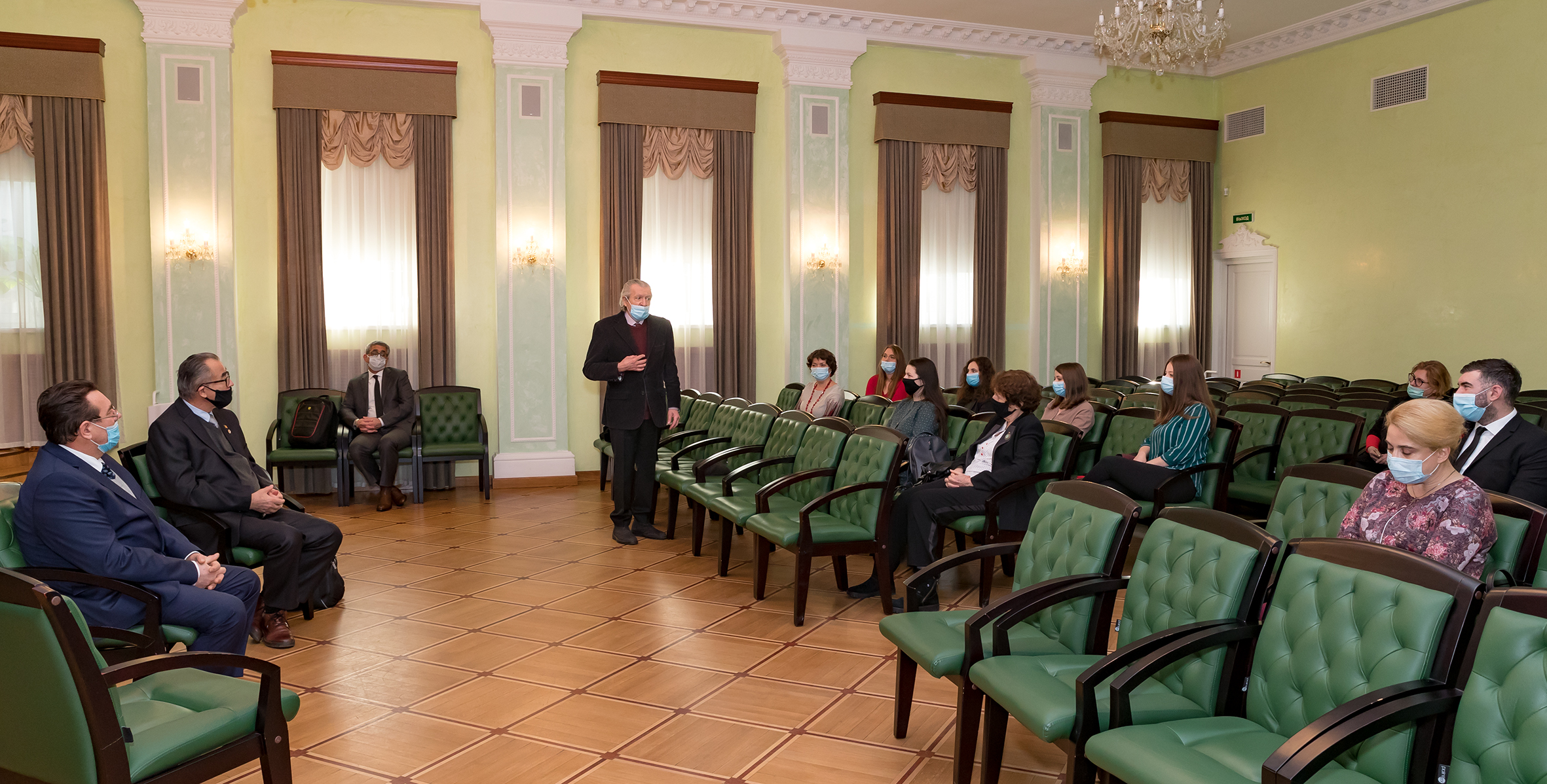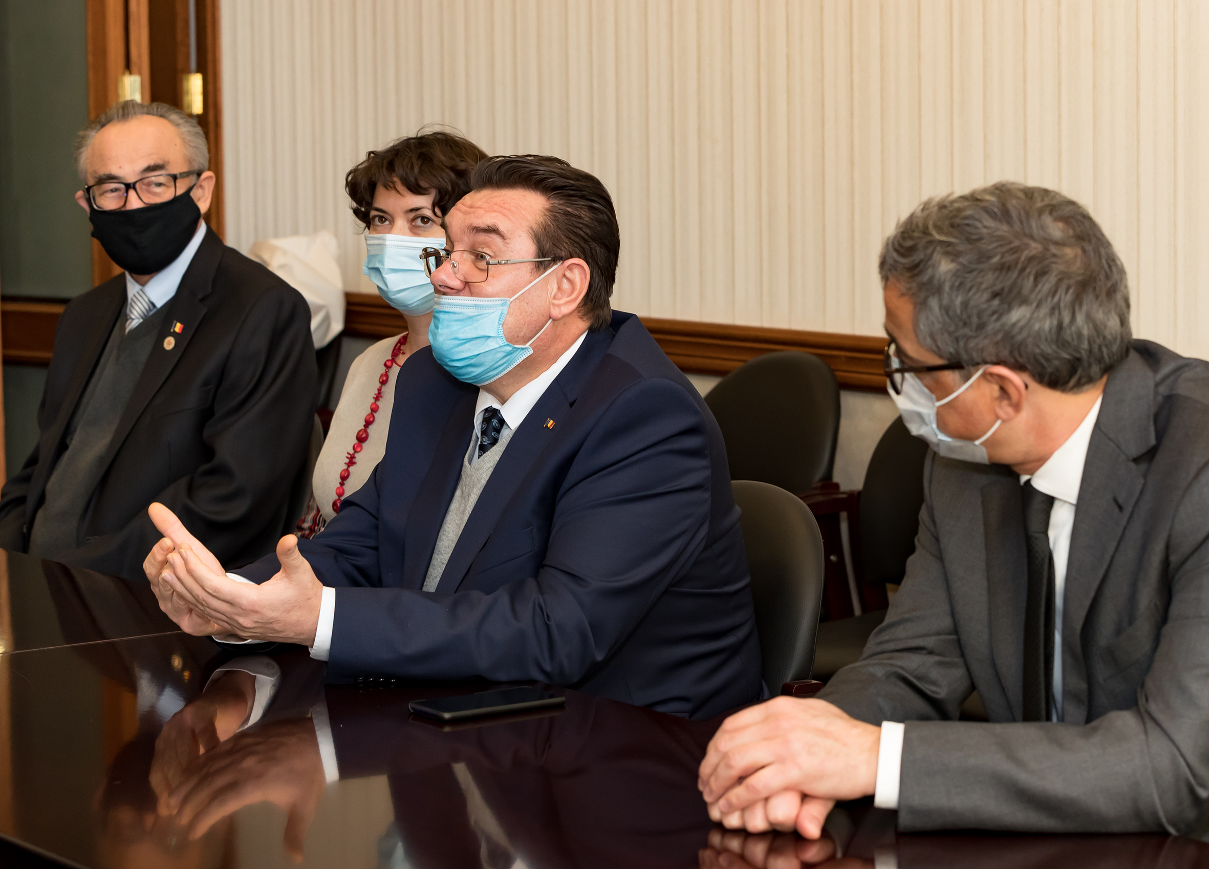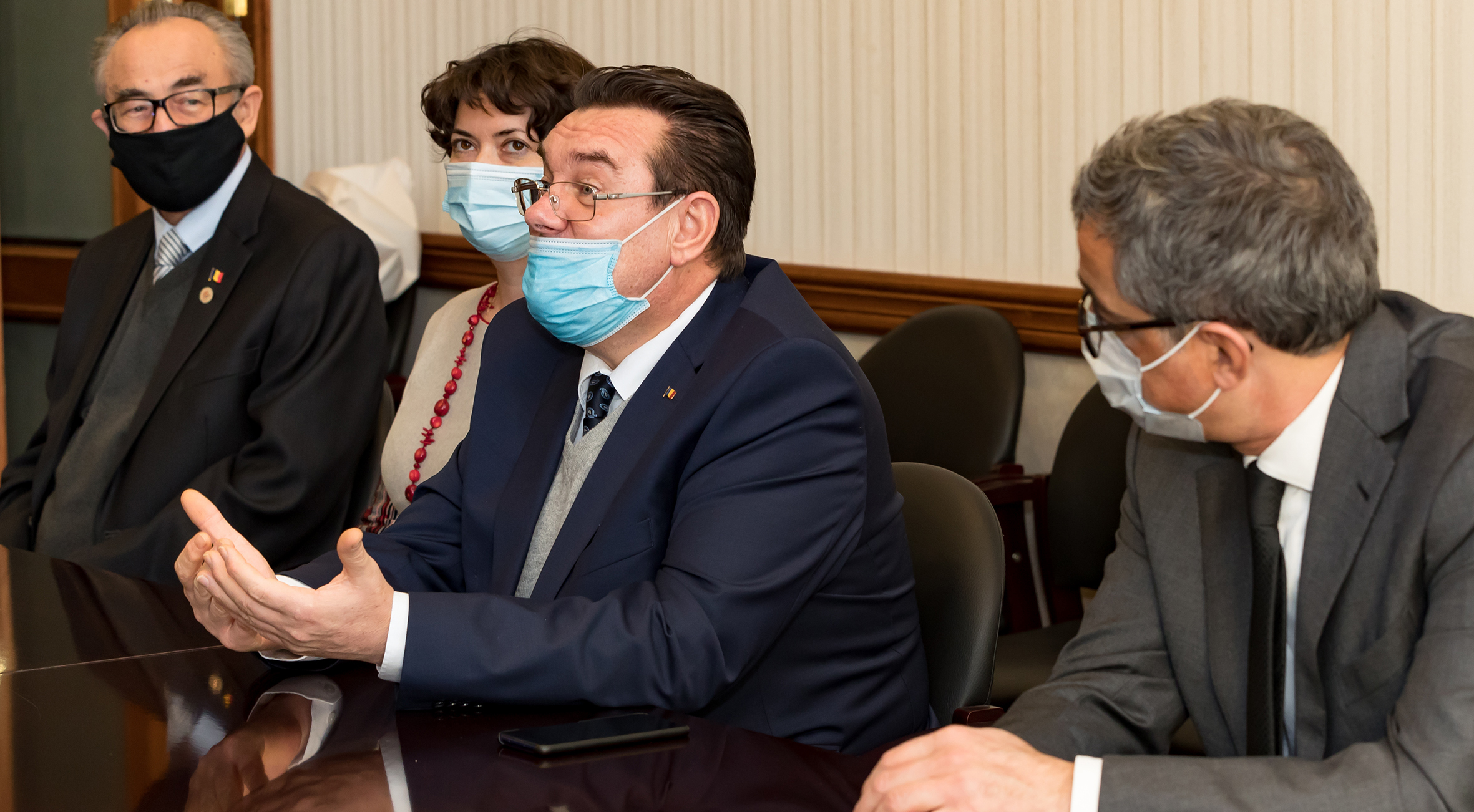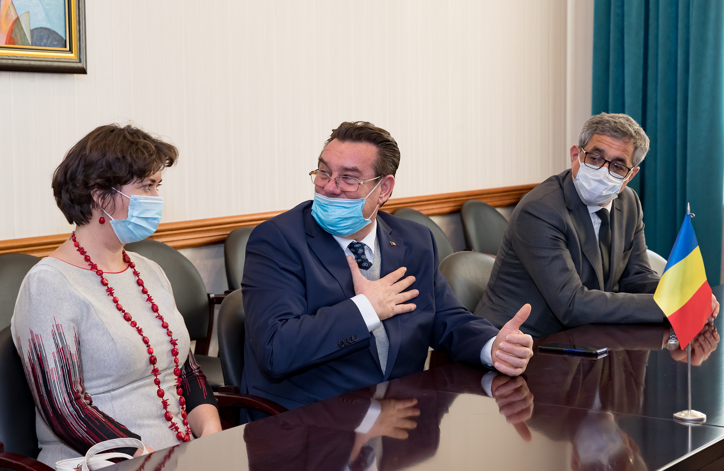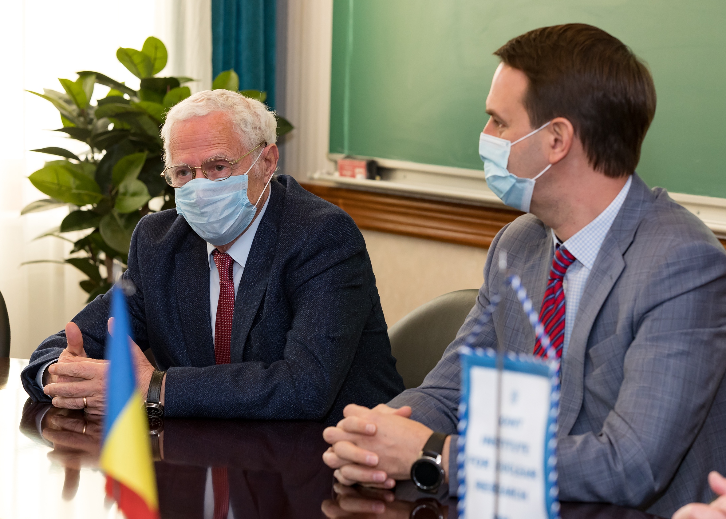 17 ноября 2020 года Чрезвычайный и полномочный Посол Румынии в Российской Федерации г-н Василе Соаре посетил Объединенный институт ядерных исследований по случаю завершения своей дипломатической миссии. В Дубну г-н Посол прибыл в сопровождении Советника по образованию и науке г-на Лауренциу Константиниу. В Объединенном институте в ходе визита высокую делегацию сопровождал профессор Георге Адам, в недавнем прошлом руководитель национальной группы Румынии в ОИЯИ.