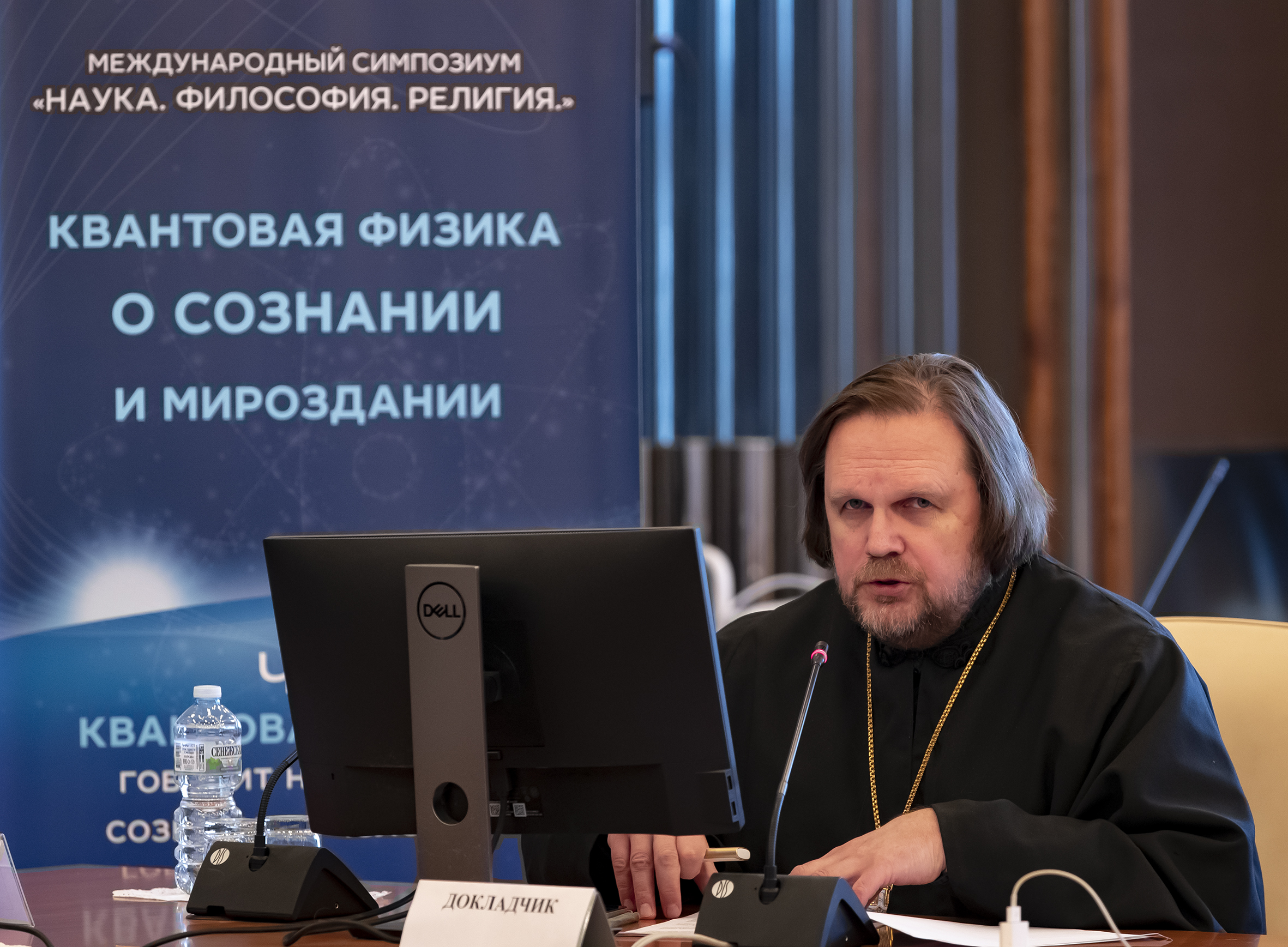 The speakers of the current symposium were a researcher of the Moscow Centre for Consciousness Studies, Candidate of Philosophical Sciences Anton Kuznetsov; Honorary Member of the Turing Centre at ETH Zurich, PhD in Physics Harald Atmanspacher; Candidate of Physics and Mathematics, Candidate of Theology, Archpriest Kyrill Kopeikin; Director of the International Centre for Mathematical Modeling in Physics and Cognitive Sciences, Linnaeus University (Växjö, Sweden), Professor Andrey Khrennikov; a member of the Science and Philosophy Initiative research group (UK) William J. M. Fleming; associate collaborator of the RAS Institute of Philosophy, Candidate of Philosophical Sciences, Candidate of Physics and Mathematics Vitaly Pronskikh; a leading researcher of BLTP JINR, Candidate of Physics and Mathematics Evgeny Soloviev; PhD in Physics, Bhaktivedanta Institute for Higher Studies (USA), Mauricio Garrido.